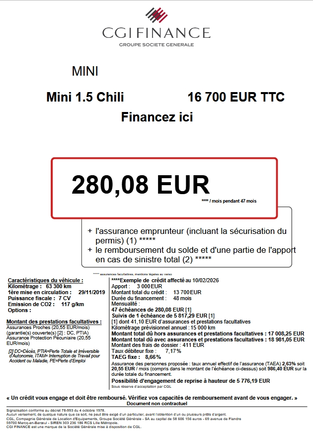 Informations clés : voiture MINI Berline