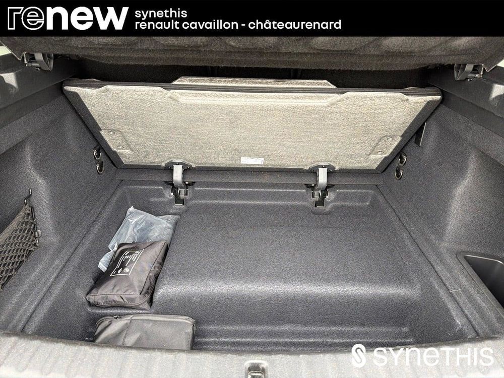 - Compartiment à bagages : 2 crochets de sac, filet sur panneau garuche, prise 12V rangement additionel (volume spécifique au modèle) sous plancher amovible