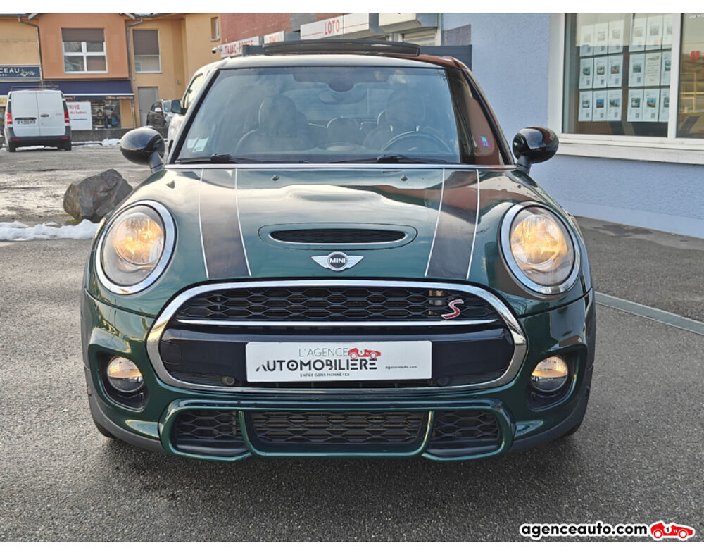 Equipements : ABS,Accoudoir,Affichage tête haute,Aide au démarrage en côte,Airbag(s),Alerte collision,Allumage automatique des feux,Anti-brouillards,Banquette rabattable 1/3-2/3,Bluetooth,Boite à gants réfrigérée,Châssis sport,Climatisation automatique bi-zone,Commande vocale,Démarrage sans clé,Détecteur de pluie,Détecteur de somnolence,Détecteur pression des pneus,Direction assistée,Ecrous Antivol,ESP,Fermeture centralisée à distance,Feux de jour,Fixation Isofix,Freinage actif d'urgence,GPS,HiFi,Intérieur alcantara,Intérieur cuir,Jantes aluminium,Lecteur multimédia,Limiteur de vitesse,Ordinateur de bord,Palettes au volant,Park Assist,Peinture métallisée,Phares Full LED,Prise auxiliaire JACK,Prise USB,Radar de stationnement avant et arrière,Réglage lombaires électriques,Régulateur de vitesse,Rétroviseur intérieur jour nuit,Rétroviseurs dégivrants,Rétroviseurs rabattables électriquement,Sièges chauffants,Sièges sport,Stop and start,Téléphone,Toit ouvrant électrique,Vitres électriques avant et arrière,Vitres surteintées,Volant cuir,Volant multifonctions,Volant sport,Autoradio Mini Visual Boost,Bandes décoratives de capot noires,British Racing Green métallisé,Climatisation automatique 3 zones,Pack City Zen,Pack Connected,Pack John Cooper Works II,Rétroviseurs noirs,Toit noir,Listing d'options sous réserve d'erreurs