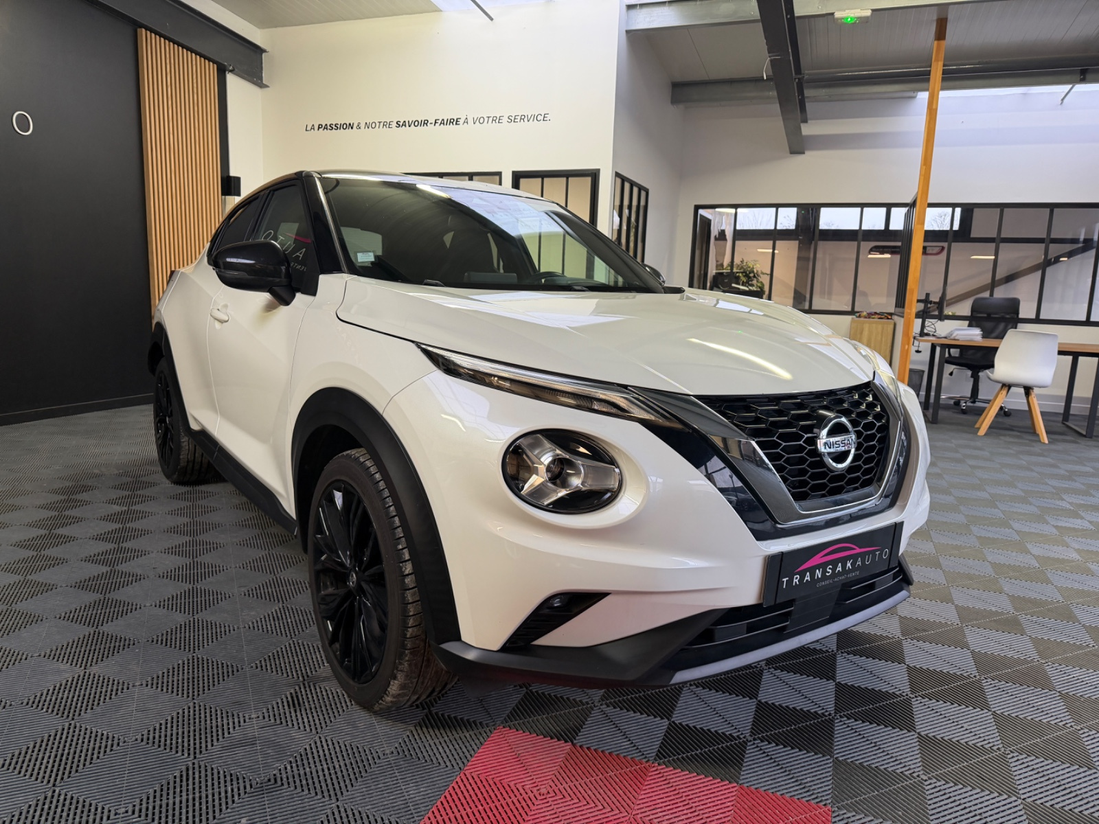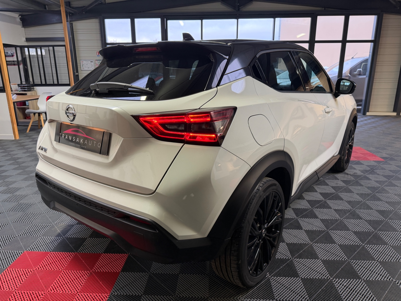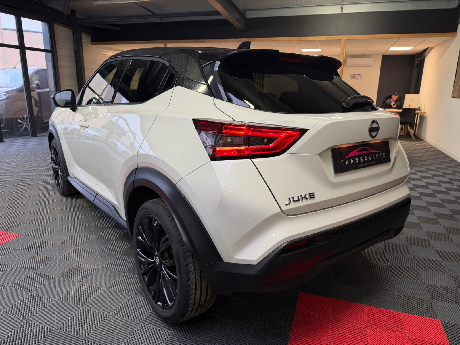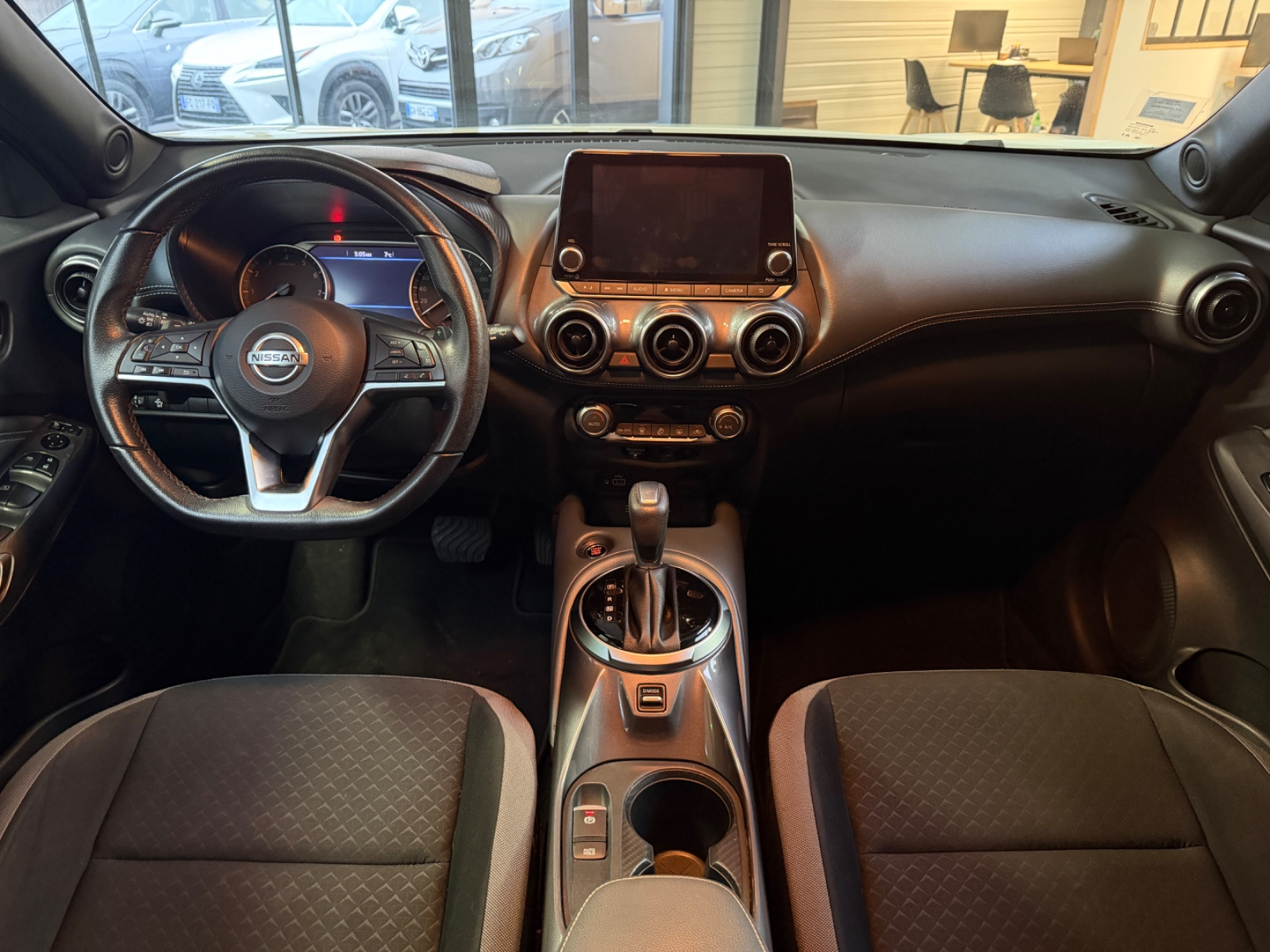 NISSAN JUKE 2021 DIG-T 114 DCT7 Enigma// Accoudoir avant Accès Internet Airbag conducteur Airbag latéral conducteur et passager Airbag passager Alerte de franchissement involontaire de lignes Allumage automatique des phares Android Auto Antenne automatique/antenne dans les vitres Apple CarPlay Appuie-tête arrière Assistance au freinage d'urgence Banquette arrière partagée et rabattable Caméra de recul Climatisation automatique Commande vocale pour téléphone Détecteur pluie ESP (programme de stabilité électronique) Feux adaptatifs Feux avant LED Feux de jour Fixation pour siège enfant Installation d'alarme Interface Bluetooth Jantes/roues en alliage léger 19 Kit de réparation pneus (Mobile Tyre) Levier de vitesses en cuir Lève-vitres arrière électriques Lève-vitres avant électriques Ordinateur de bord Peinture métallisée Phares antibrouillard Phares ellipsoïdaux Radar de stationnement arrière Reconnaissance des panneaux de signalisation Répartiteur électronique de freinage Rétroviseurs extérieurs dégivrants Rétroviseurs extérieurs électriques Siège conducteur à dossier réglable Siège conducteur à réglage lombaire Siège passager à dossier réglable Système Start/Stop Système anti bloquage (ABS) Système de contrôle et d'indication Système de navigation USB jack Vitres teintées Volant avec commande radio Volant avec palettes de changement de vitesses Volant en cuir Volant réglable manuellement