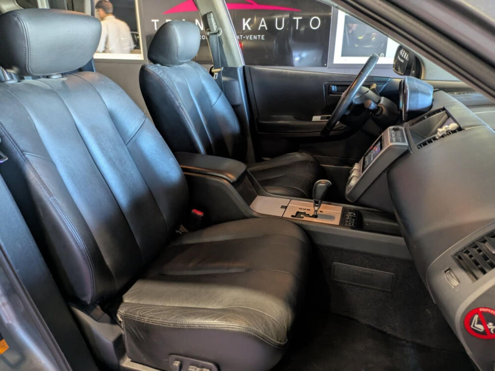 NISSAN MURANO 3 5 V6 All-Mode 4x4 CVT// Accoudoir arrière Accoudoir avant Airbag conducteur Airbag latéral conducteur et passager Airbag passager Airbags rideaux arrière Airbags rideaux avant Antidémarrage Appuie-tête arrière Banquette/sièges arrière rabattable Becquet de toit Boîte automatique en général Cache bagages Caméra de recul Ceintures avant avec prétensionneurs Changeur CD Climatisation automatique ESP (programme de stabilité électronique) Essuie glace arrière Fixation pour siège enfant Indicateur de température extérieur Jantes/roues en alliage léger 18 Lecteur DVD Levier de vitesses en cuir Lève-vitres arrière électriques Lève-vitres avant électriques Ordinateur de bord Phares antibrouillard Radar de stationnement arrière Radar de stationnement avant Rampes/barres de toit Régulateur de distance Répartiteur électronique de freinage Rétroviseur intérieur électrochrome Rétroviseurs extérieurs dégivrants Rétroviseurs extérieurs rabattable électriquement Rétroviseurs extérieurs électriques Siège conducteur réglable en hauteur Siège conducteur à dossier réglable Siège passager à dossier réglable Sièges avant chauffants Sièges en cuir Système anti bloquage (ABS) Système audio BOSE Système audio à commande vocale Système de navigation Toit ouvrant électrique : autres Toit vitré fixe Traction tout terrain permanente Vitres teintées Volant réglable manuellement