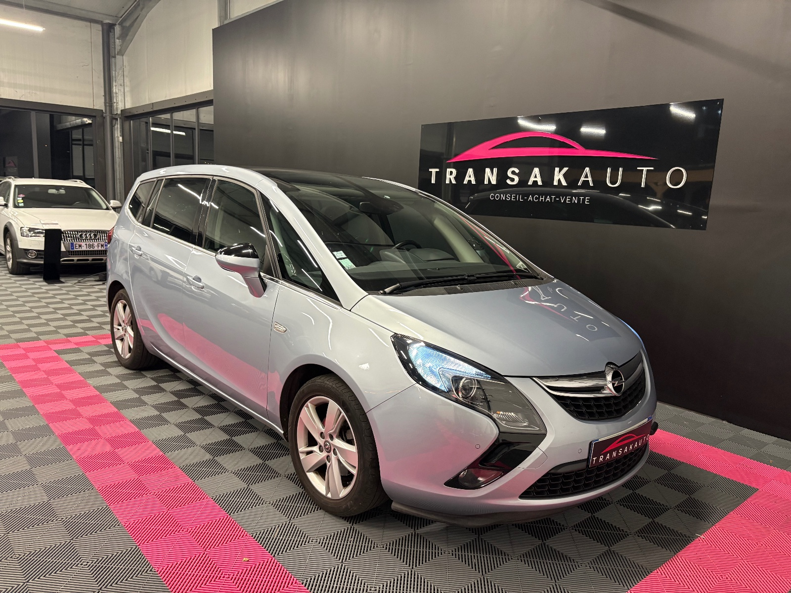 OPEL ZAFIRA TOURER 1 6 CDTI 136 ch Start/Stop EcoFlex Cosmo Pack// 2 sièges additionnels 3 sièges individuels arrière 4 vitres electriques Accoudoir arrière Accoudoir avant Aide au démarrage en pente Airbag conducteur Airbag latéral conducteur et passager Airbag passager Airbags rideaux avant Appuie-tête arrière Assistance au freinage d'urgence Assistance de freinage Banquette/sièges arrière rabattable Boîte manuelle 6 vitesses Cache bagages Caméra de recul Ceintures avant avec prétensionneurs Climatisation automatique Climatisation automatique bizone Climatisation automatique multi zones Commande vocale pour téléphone Configuration 7PL Contrôle de traction Contrôle pression pneus (RDC) ESP (programme de stabilité électronique) Ecrous de roue antivol Essuie glace arrière Essuie-glaces automatiques Feux arrière LED Feux avant LED Feux indicateurs de changement de direction Filtre d'habitacle Fixation pour siège enfant Fixations ISOFIX GPS Installation téléphone mains libres Jantes/roues en alliage léger 17 Kit de réparation pneus (Mobile Tyre) Kit téléphone main libre bluetooth Lecteur MP3 Levier de vitesses en cuir Limiteur de vitesse Lève-vitres arrière électriques Lève-vitres avant électriques Ordinateur de bord Phares antibrouillard Phares av de jour à LED Prise audio USB Pré-équipement téléphone Radar de stationnement arrière Radar de stationnement avant Recyclage de l'air automatique Rideau pare-soleil arrière manuel Roue de secours Réglage automatique des phares Régulateur de vitesse Rétroviseurs dégivrants Rétroviseurs extérieurs dégivrants Rétroviseurs extérieurs électriques Rétroviseurs rabattables électriquement Siège conducteur confort Siège conducteur réglable en hauteur Siège passager confort Siège passager réglable en hauteur Sièges en cuir Sièges en similicuir Système Start/Stop Système anti bloquage (ABS) Système de navigation à commande vocale Toit panoramique Toit vitré fixe USB jack Verrouillage centralisé télécommandé Vitre arrière chauffante Vitres teintées Volant avec commande radio Volant multifonctions Volant réglable manuellement