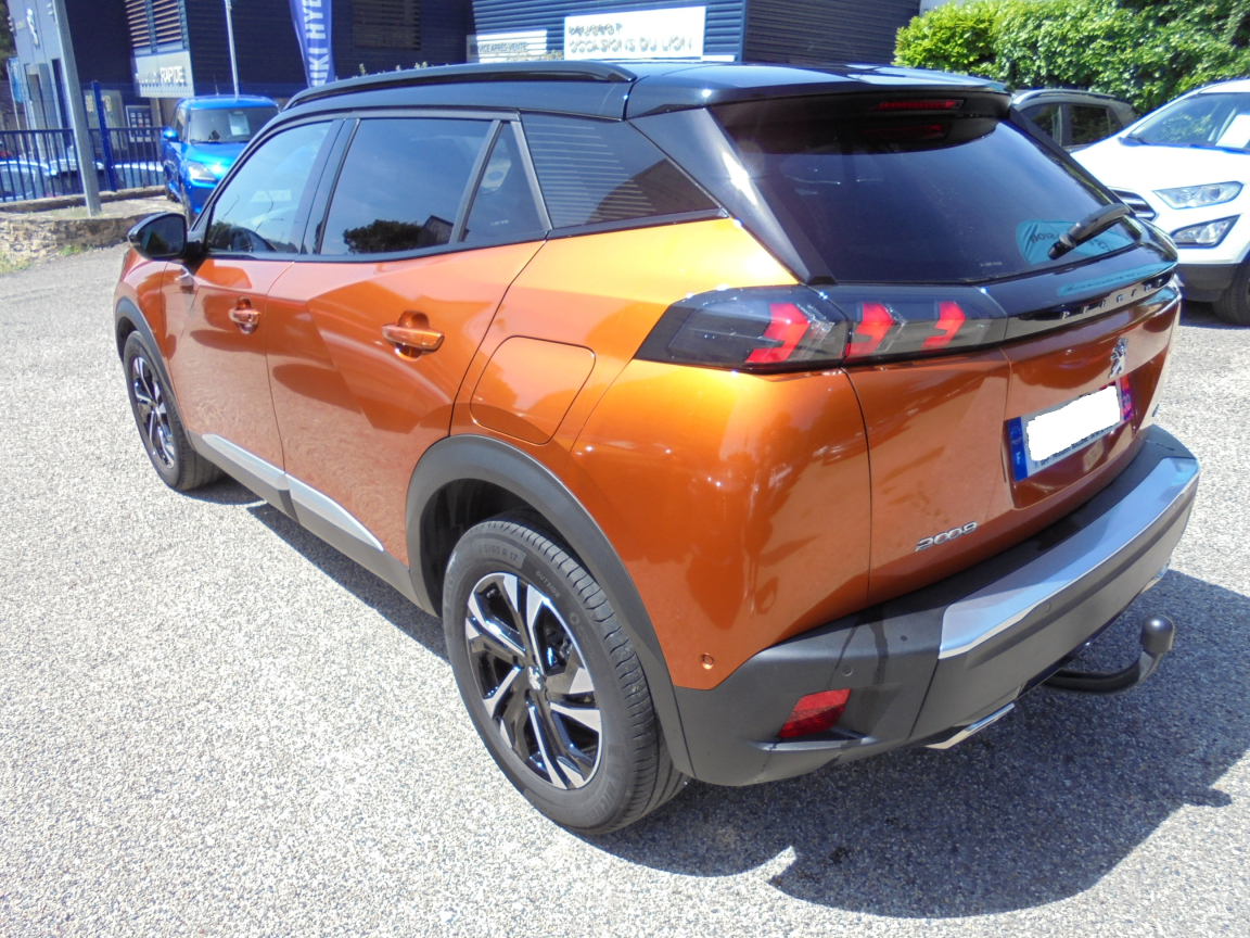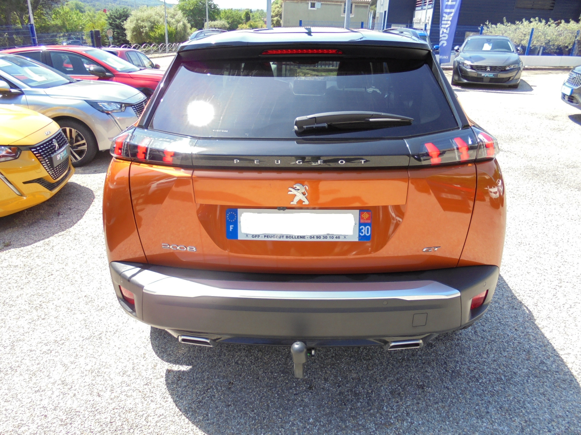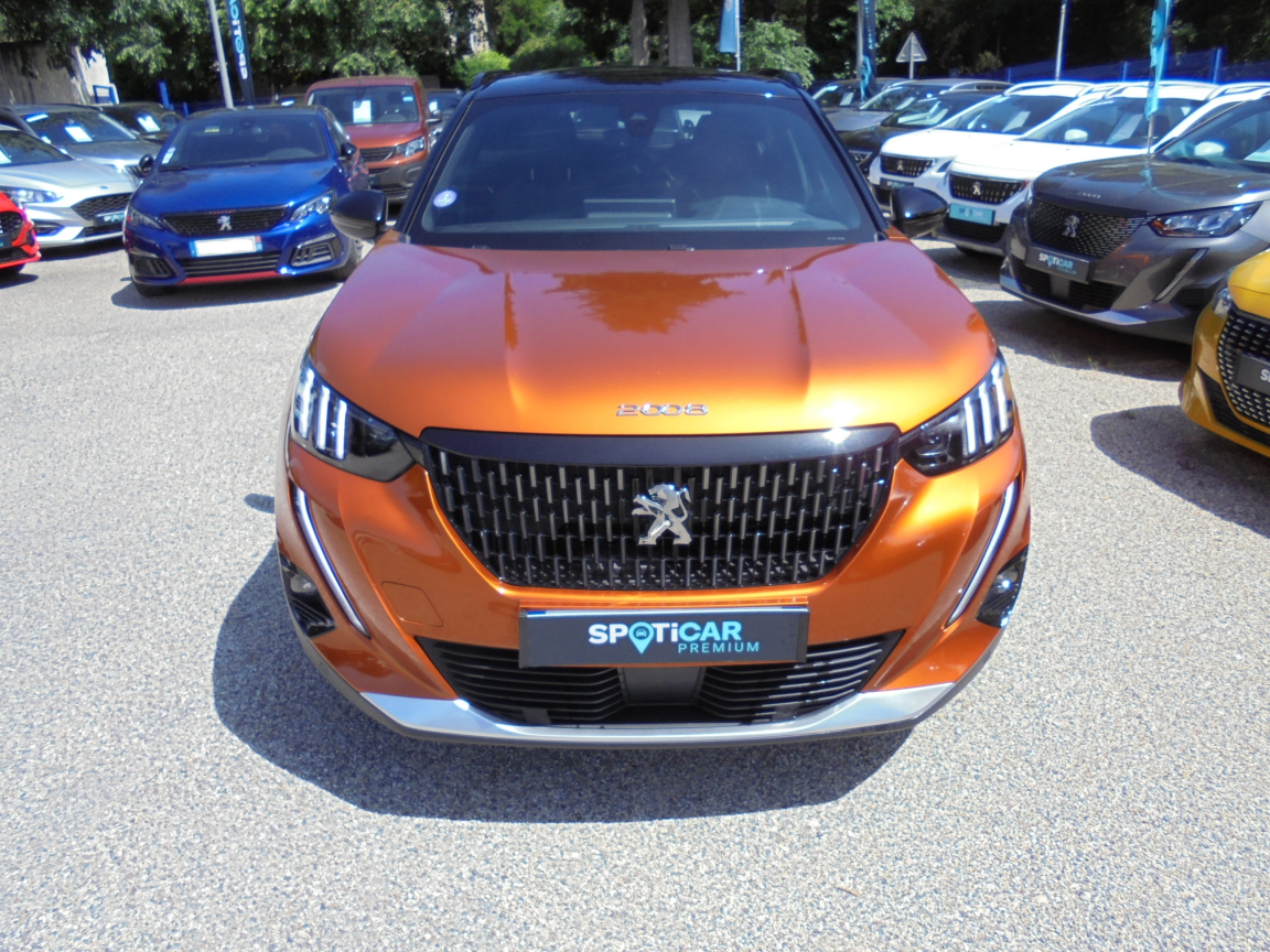 PEUGEOT 2008 (130 S et S EAT8 GT) ORANGE.Attelage RDSO,Proximity,2 prises USB (Recharge type A) sur console haute pour passagers AR,Aide au démarrage en pente,Aide graphique et sonore au stationnement AR,Aide graphique et sonore au stationnement AV,Air conditionné automatique monozone,Airbags- frontaux auto-adaptatifs,Allumage automatique des feux de croisement,Banquette rabattable 1/3 - 2/3,Commutation automatique des feux de route / feux de croisement,Démarrage mains libres avec 2 télécommandes 3 boutons mains libres,Détection de sous-gonflage indirecte,Eclairage polyambient 8 couleurs,Essuie-vitre AV à déclenchement automatique,Fixations suivant norme ISOFIX et Top Tether avec étiquette de localisation sur siège passager AV,Fixations suivant norme ISOFIX et Top Tether avec étiquettes de localisation aux places latérales AR,Fonction Bluetooth et Mirror Screen (Apple CarPlay / Android Auto / MirrorLink),Fonction DAB (Radio Numérique Terrestre),Frein de stationnement électrique avec aide au démarrage en pente et serrage automatique,Kit de dépannage de pneumatique compresseur 12 V avec cartouche de produit de colmatage,Lève-vitres AV et AR électriques séquentiels avec antipincement,PEUGEOT Connect SOS & Assistance et Telemaintenance,Peugeot i-Cockpit 3D avec combiné tête haute numérique 3D,Plancher de coffre modulable 2 positions,Projecteurs Peugeot Full LED Technology avec signature 3 griffes, indicateurs de direction à LED,Reconnaissance étendue des panneaux de signalisation et préconisation de vitesse,Régulateur / Limiteur de vitesse,Rétroviseurs extérieurs dégivrants avec réglage et rabattement électriques,Sélecteur mode de conduite,Siège passager AV à réglage manuel en hauteur et lombaire pneumatique,Surtapis AV et AR noirs avec surpiqûres Vert Adamite,Système de surveillance d'angle mort,Teinte métallisées Orange Fusion,Toit Black Diamond,Verrouillage automatique de tous les ouvrants en roulant,Visio Park 1: Caméra de recul avec restitution sur l'écran tactile d'une vue AR et d'une vue de dessus de l'environnement AR du véhicule + Aide graphique et sonore au stationnement AR,Vitres latérales AR et lunette AR chauffante temporisée surteintées,Volant compact multi-fonctions,Volant réglable en hauteur et en profondeur, 8 vitesses, 5 places, puissance fiscal : 7, puissance din : 130, émission de CO2 : 0 g/km.
