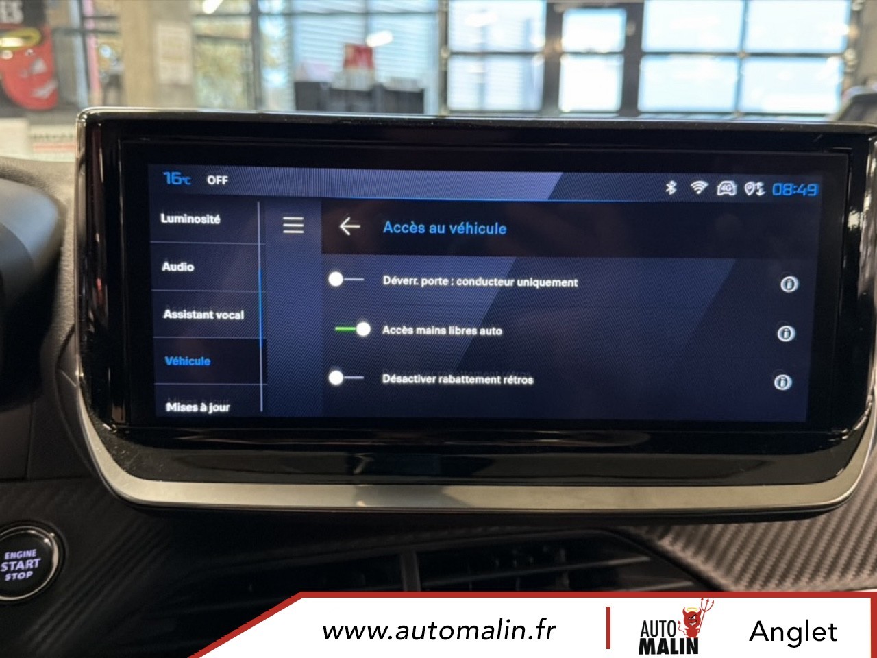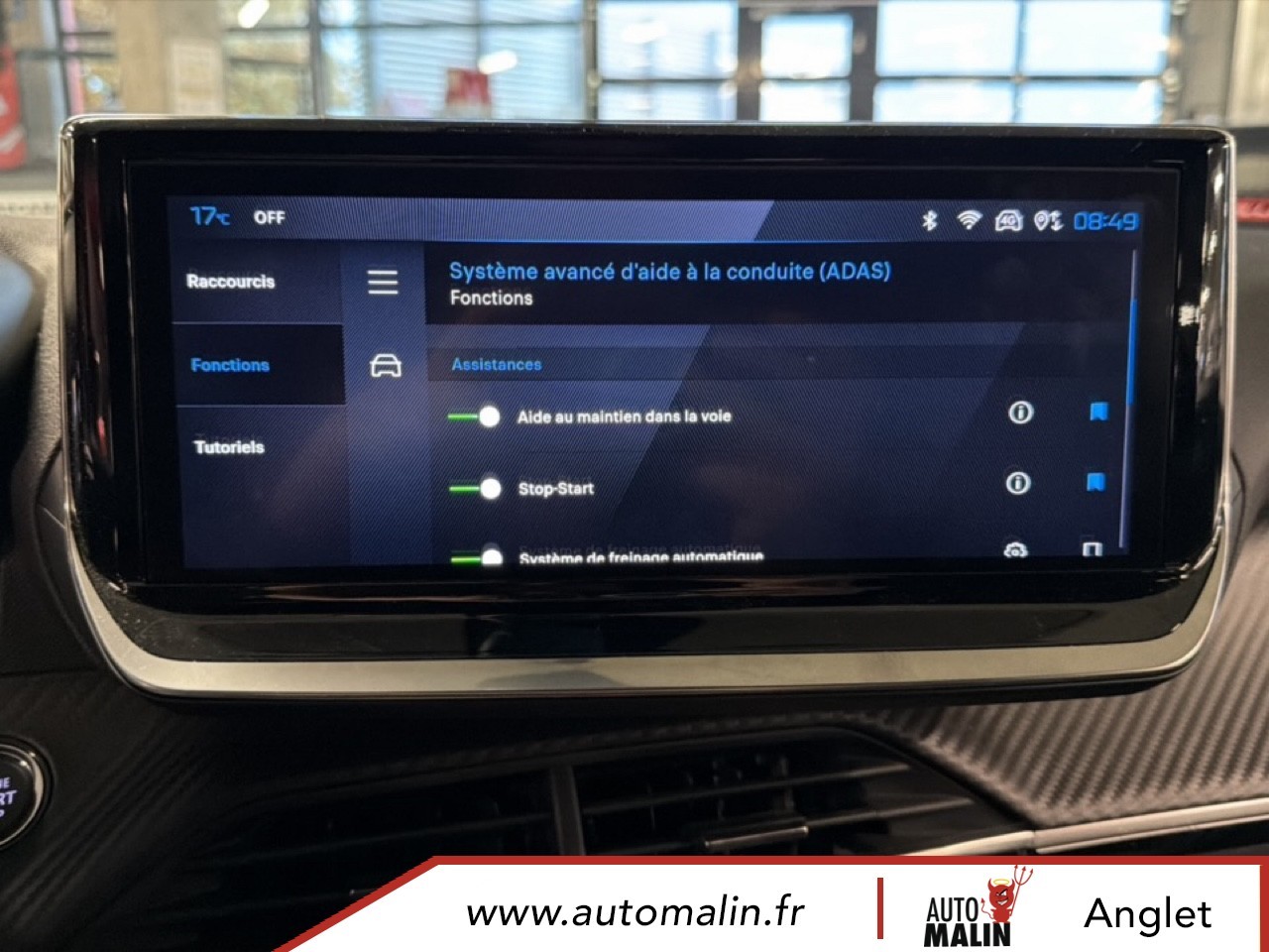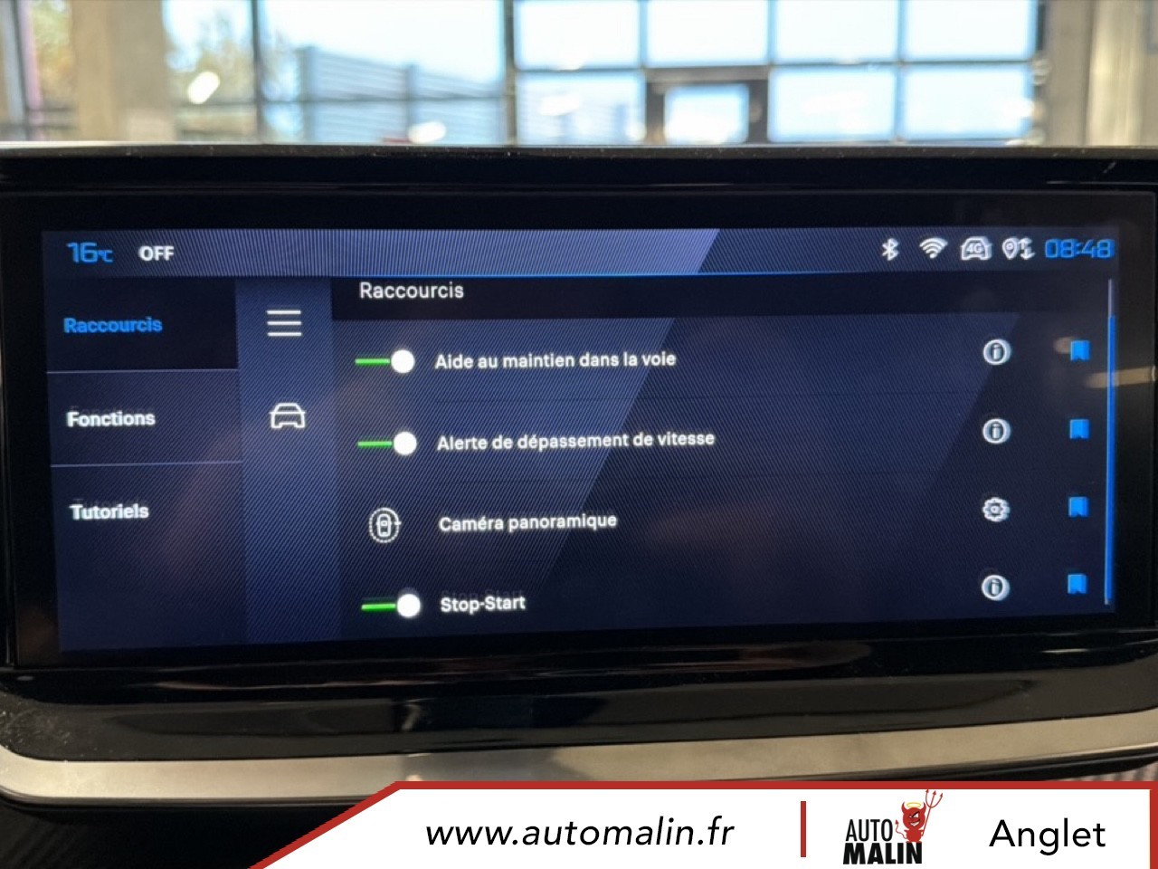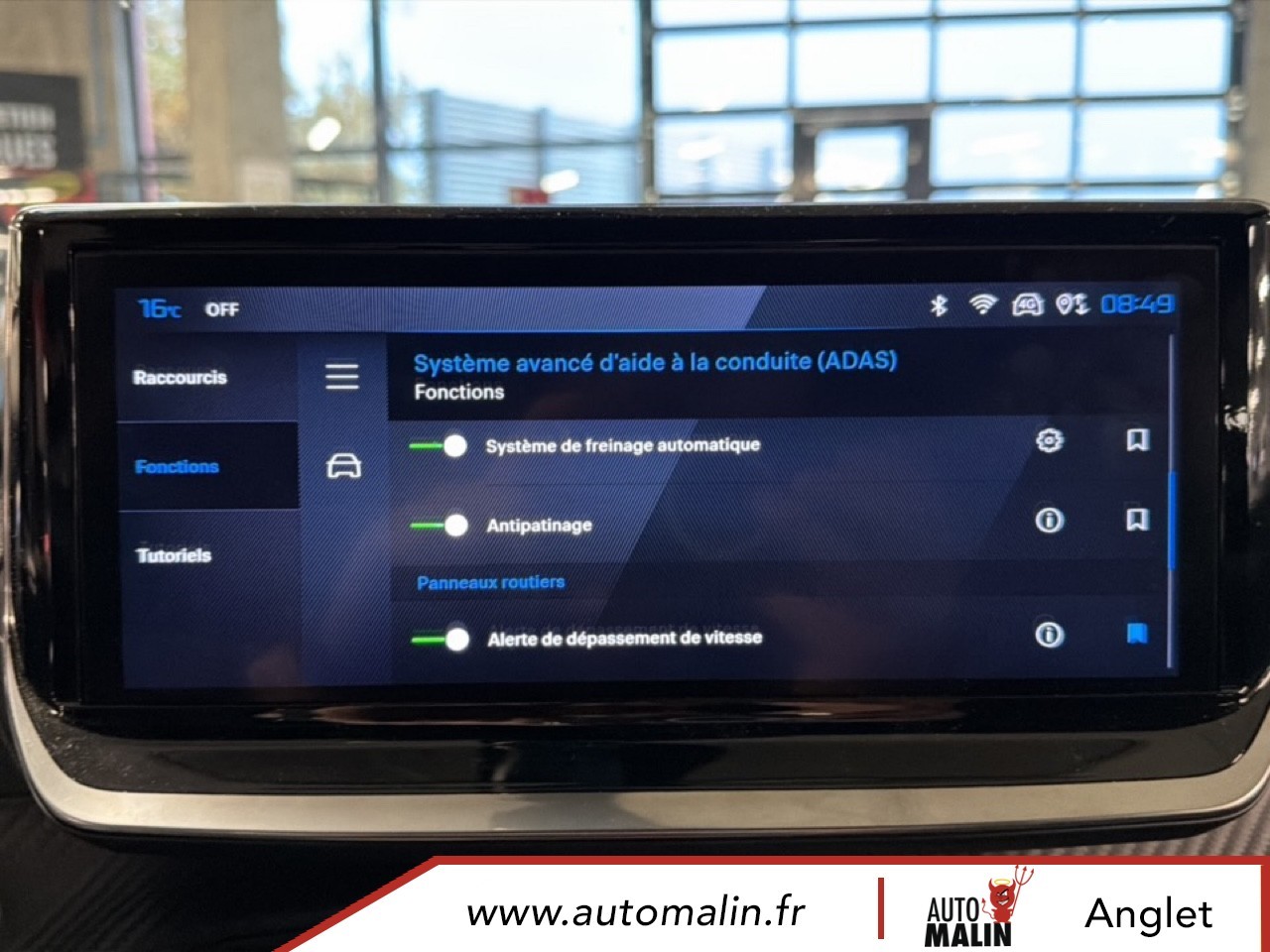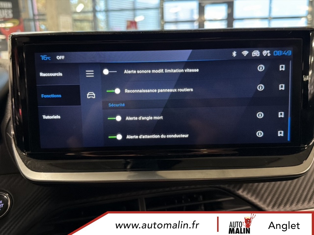 Equipements supplémentaires : 4 poignees de maintien retractables (2 a l'AV et 2 a l'AR), 6 Airbags (Frontaux auto-adaptatifs, lateraux AV et rideaux AV/AR), 6 HPs (2 tweeters et 2 woofers a l'AV et 2 HPs a l'AR), ABS, Aide au stationnement AV/AR, graphique et sonore, Air conditionne automatique monozone, Appuis-tete reglables en hauteur AV (x2) et AR (x3), Banquette rabattable 1/3 - 2/3, Barres de toit longitudinales Noir Brillant, Boite de vitesse automatique, sequentielle (6 rapports), Canule d'echappement double chromee, Controle de traction, Direction assistee, Eclairage interieur: Plafonnier AV A-DOME 3 LEDs (1 lampe, 2 liseuses), 2 liseuses AR LED i-DOME, Elements de style exterieur: Calandre haut de gamme Noir avec marquage vertical couleur caisse,, Elements de style interieur: Panneaux de portes AV avec decor Carbone et baguette Noir brillant, ESP Deconnectable avec aide au demarrage en pente et detection de sous gonflage indirecte, Feux AR 3 griffes a LED, Fixations ISOFIX et Top Tether aux places laterales AR, Habitacle et ciel de pavillon Noir, Leve-vitres AV/AR electriques et sequentiels avec antipincement, Pack Safety Plus, Pack Visibilite, Pare-brise teinte acoustique, Plancher de coffre standard, Projecteurs Peugeot LED Technology avec feux diurnes a LED 3 griffes, Retroviseur interieur electrochrome, Retroviseurs exterieurs degivrants avec reglage et rabattement electriques, Sellerie tissu CASUAL LOMSA embosse, accompagnement TEP Isabella, trimatiere LOMSA et surpiqures, Siege conducteur avec reglage manuel en hauteur, Siege passager AV avec reglage manuel en hauteur, Telecommande 3 boutons + cle standard, Verrouillage centralise, Vitres laterales AR et lunette AR chauffante temporisee surteintees, Volant compact en croute de cuir avec commandes multimedia integrees, Kit de depannage de pneumatique: compresseur 12V avec cartouche de produit de colmatage.