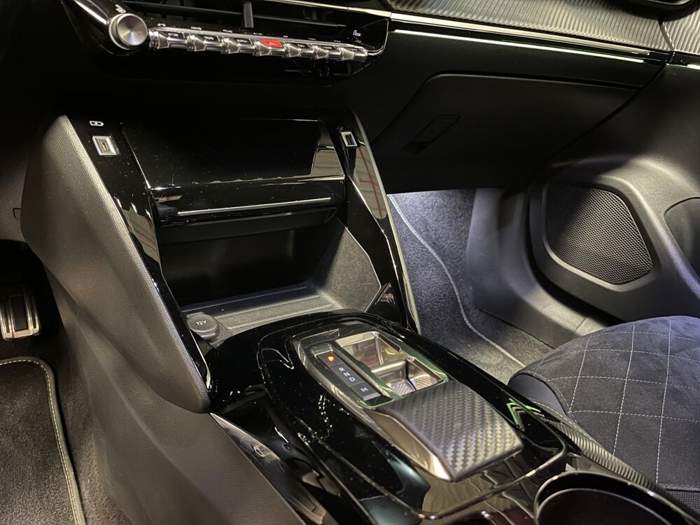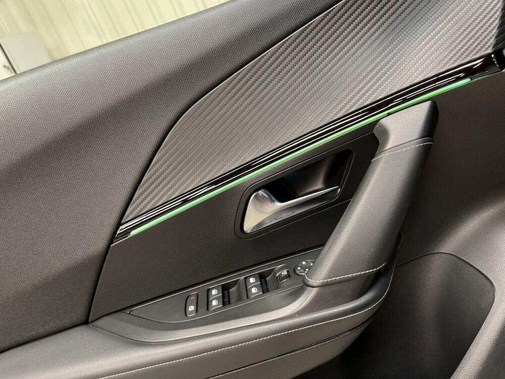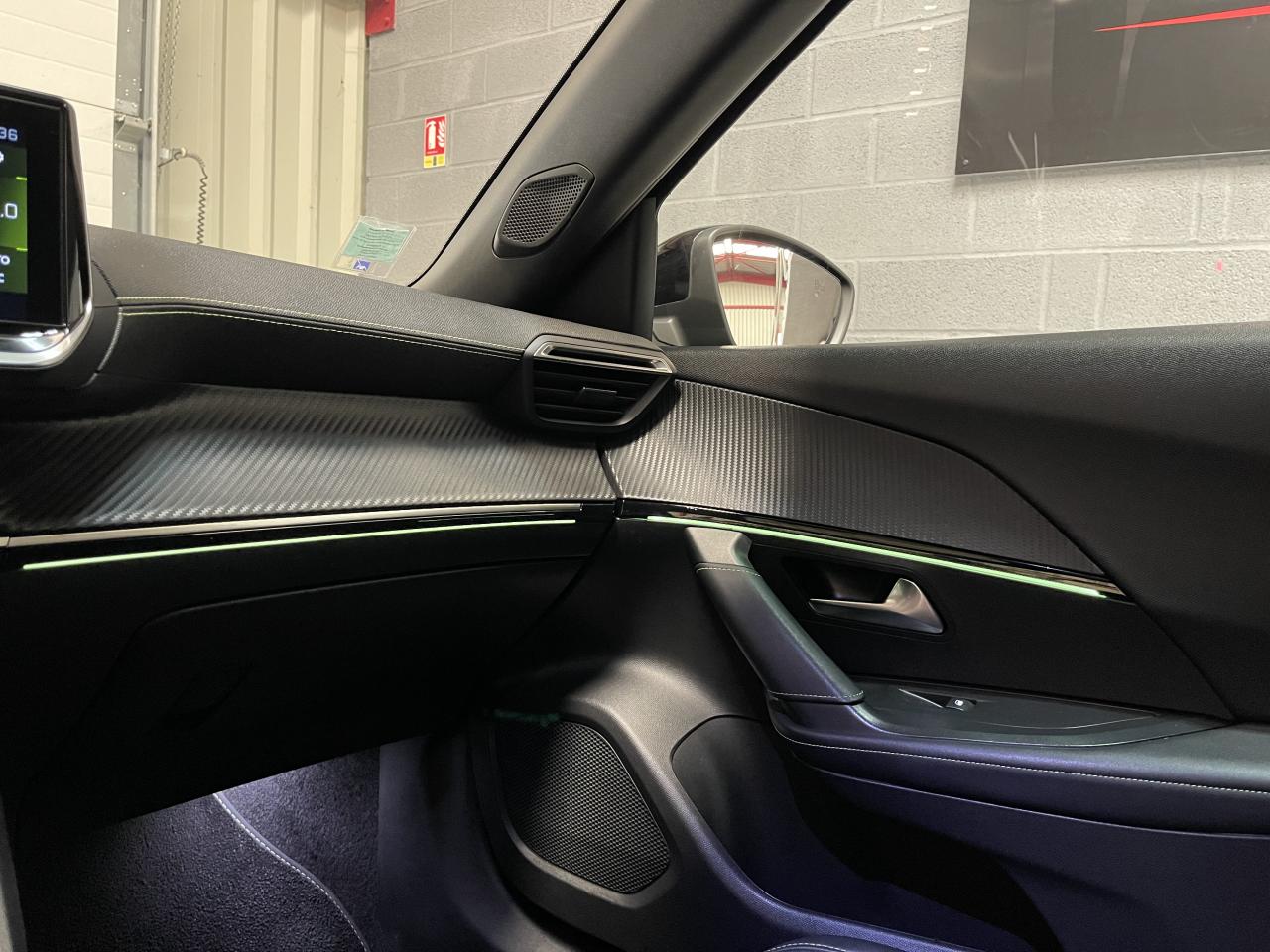 Planche de bord slush surpiquée et panneaux de portes avant avec décors aspect carbone et éclairage polyambiant 8 couleurs