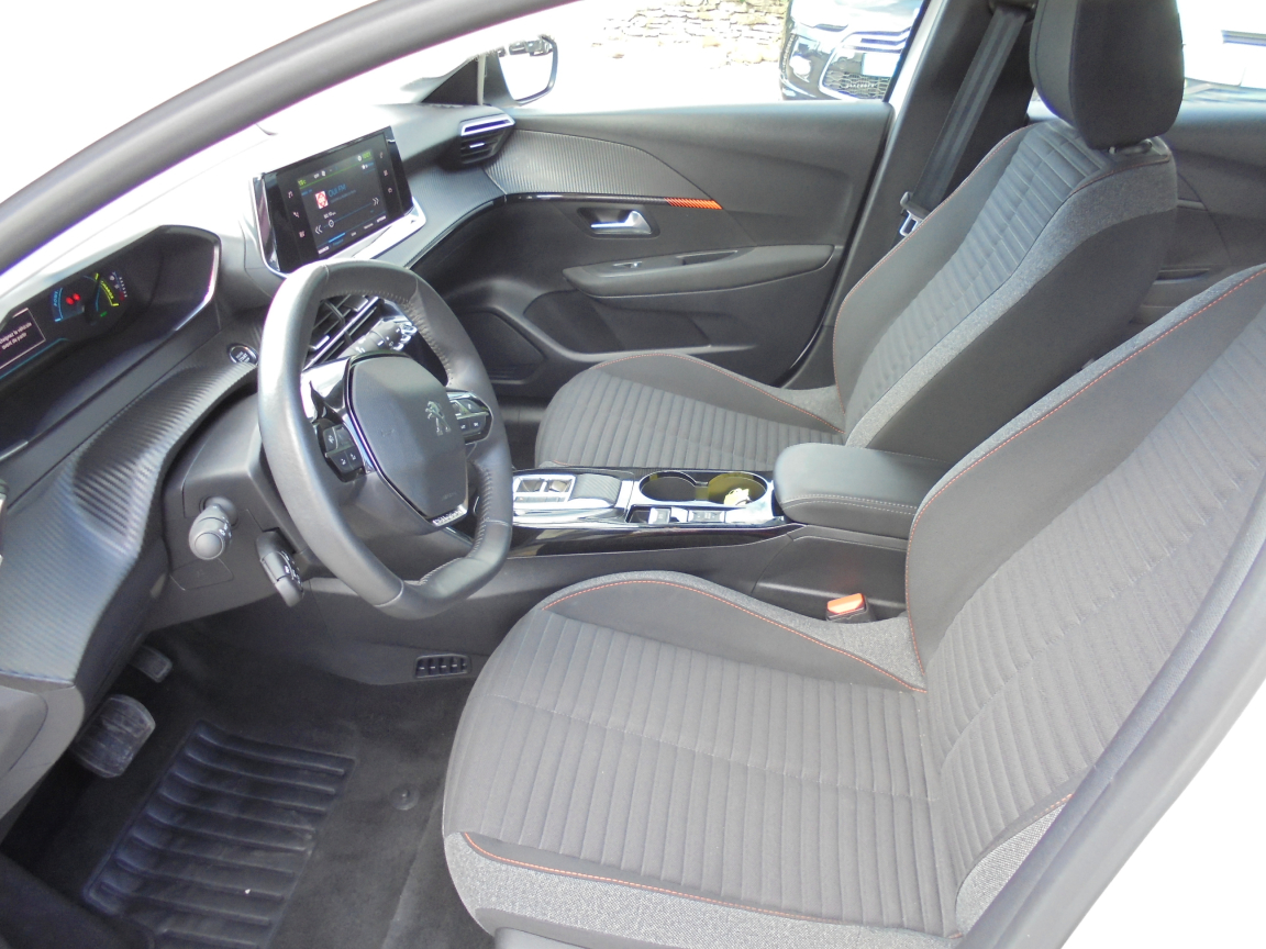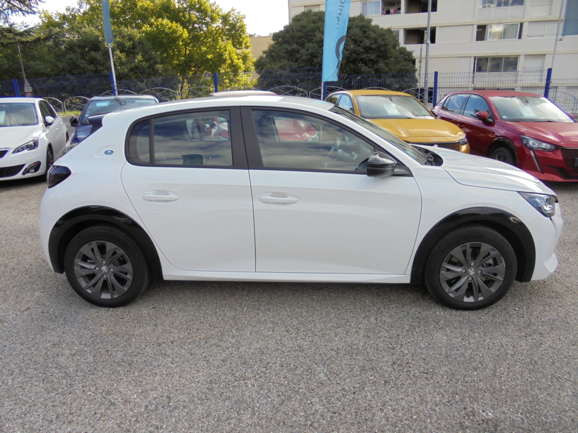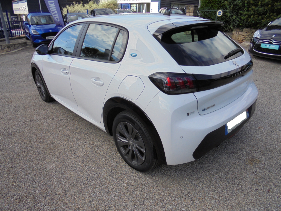 2 prises USB (Recharge type A) sur console basse pour passagers AR,6 HP (2 tweeters et 2 woofers à l'AV et 2 larges bandes à l'AR),Aide graphique et sonore au stationnement AR,Air conditionné automatique mono-zone,Allumage automatique des feux de croisement,Banquette AR rabattable 1/3-2/3,Câble électrique mode 2, prises de charge T2/EF type Green'up,Chargeur embarqué 7,4 kW monophasé,Démarrage mains libres avec 2 télécommandes 3 boutons,Détection de sous-gonflage indirecte,Fixations suivant norme ISOFIX aux places latérales AR avec étiquettes de localisation,Fonction Bluetooth,Fonction DAB (Radio Numérique Terrestre),Fonction Mirror Screen,Frein de stationnement électrique avec aide au démarrage en pente et serrage automatique,Jantes alliage 16,Kit de dépannage de pneumatique,Lève-vitres AR électriques et séquentiels avec antipincement,Lève-vitres AV électriques et séquentiels avec antipincement,Pare-brise teinté acoustique,Passages de roue Noir brillant,PEUGEOT Connect SOS & Assistance et Telemaintenance,Reconnaissance des panneaux de vitesse et préconisation de vitesse,Régulateur / Limiteur de vitesse,Rétroviseurs extérieurs dégivrants avec réglage et rabattement électriques,Sélecteur mode de conduite,Siège conducteur avec réglage manuel en hauteur,Verrouillage automatique de tous les ouvrants en roulant,Vitres latérales AR et lunette AR teintées,Volant compact croute de cuir,Volant réglable en hauteur et en profondeur, 1 vitesses, 5 places, puissance fiscal : 4, puissance din : 136, émission de CO2 : 0 g/km.