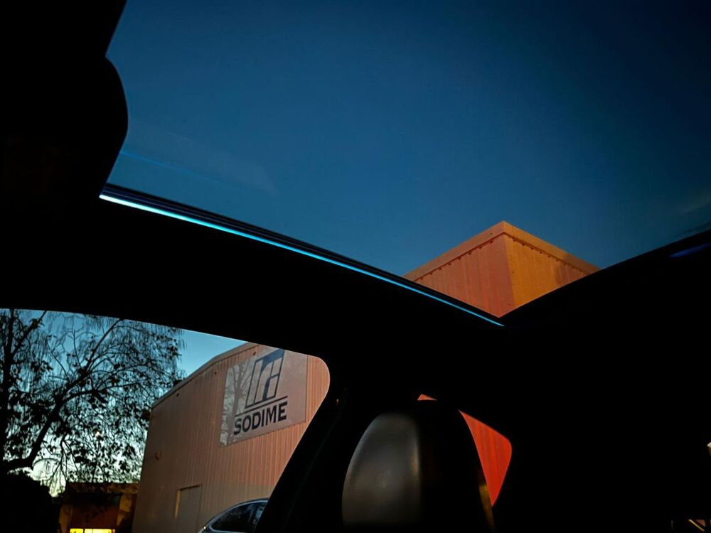 Toit panoramique en verre avec vélum d'occultation et éclairage d'ambiance