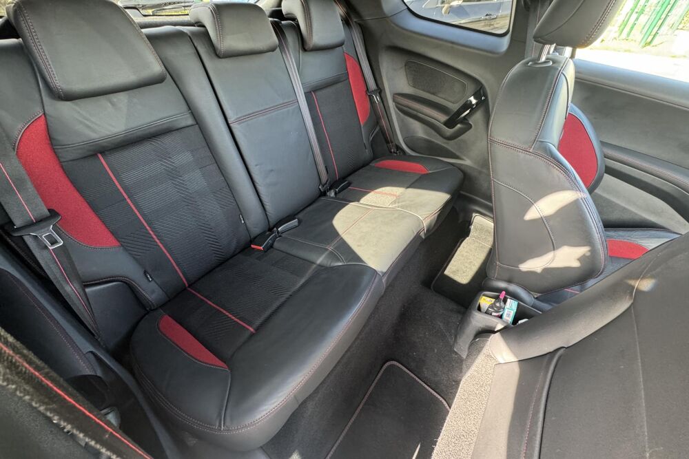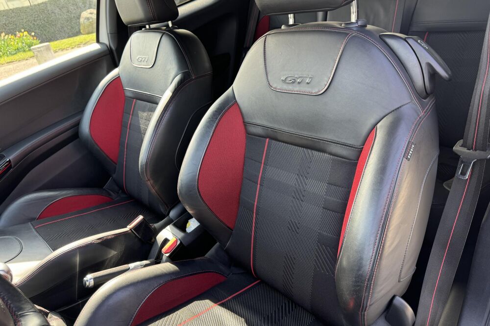 - Sellerie Sport en cuir Nappa et maille « Caro » avec surpiqûres rouges, volant compact cuir GTi et pédalier aluminium : finition intérieure orientée performance.