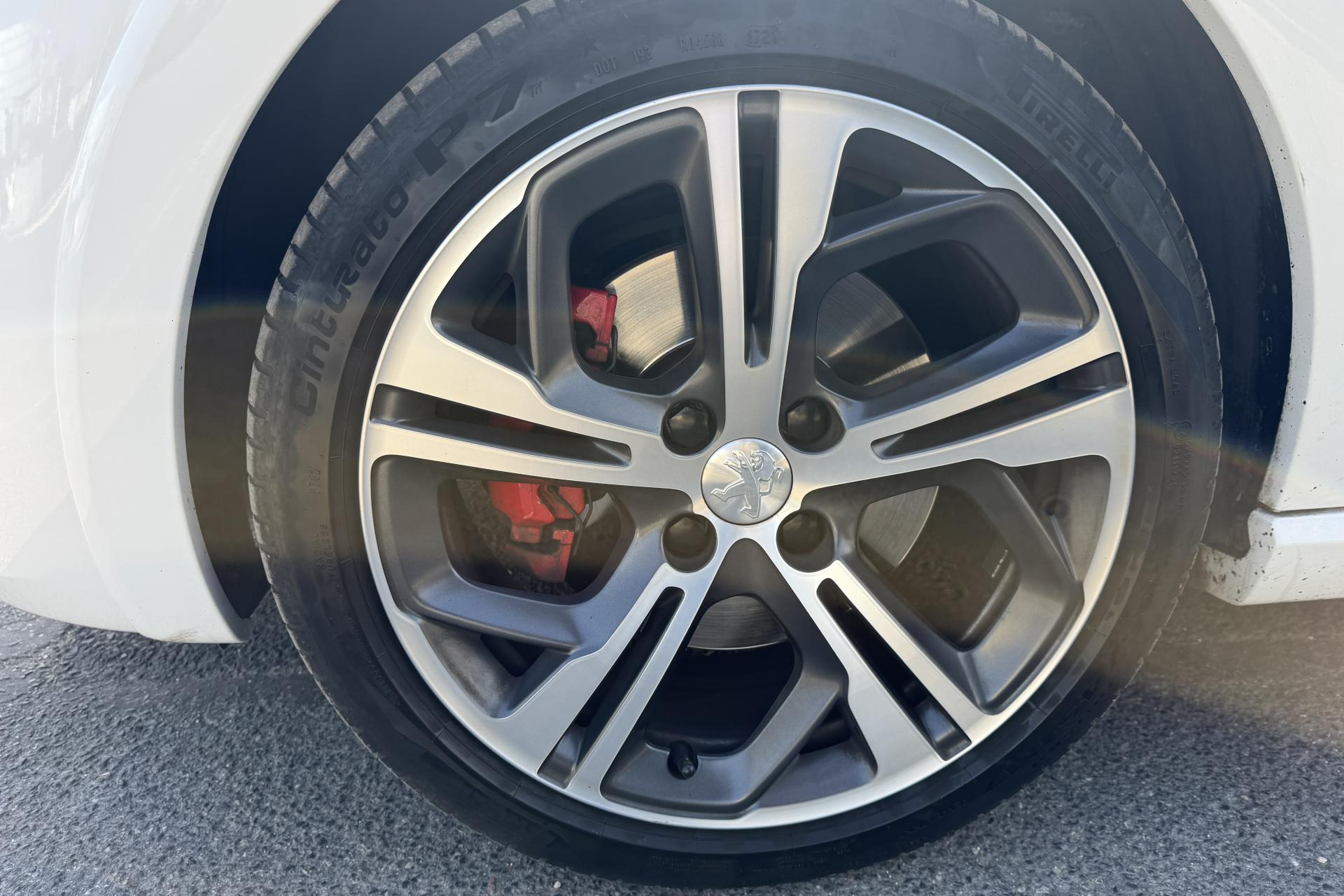 - Châssis et calibrage Peugeot Sport d'origine, freinage avec étriers rouges et double sortie d'échappement chromée : sensations routières renforcées.
