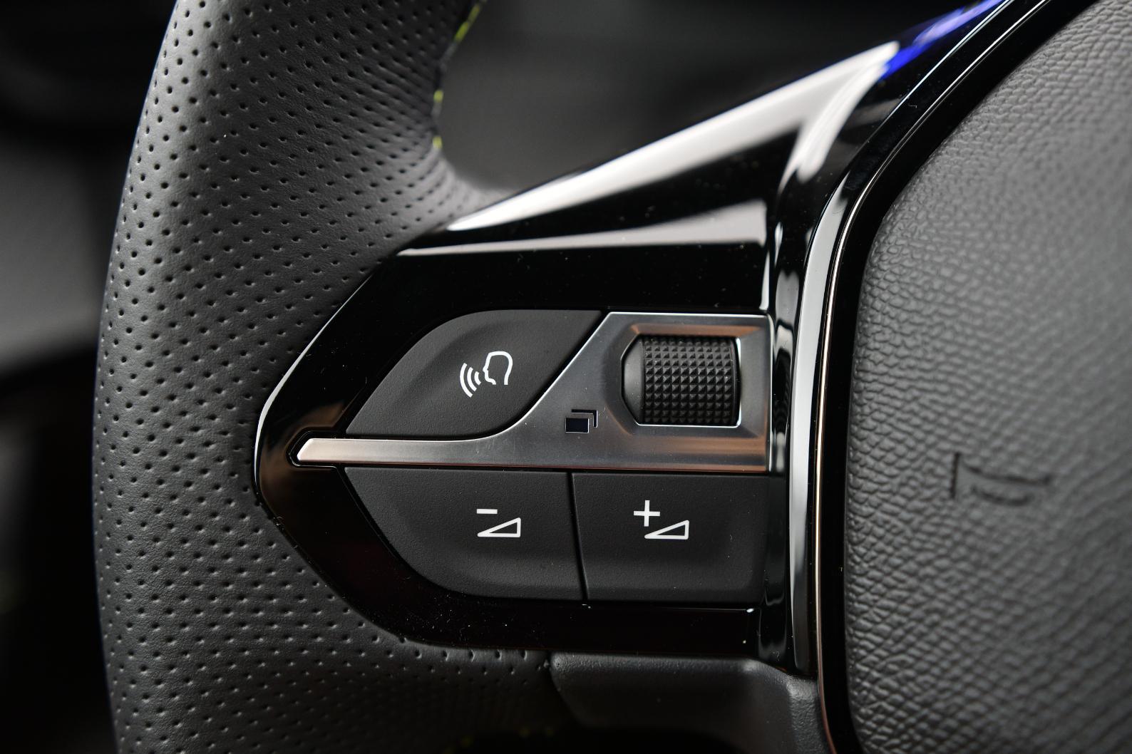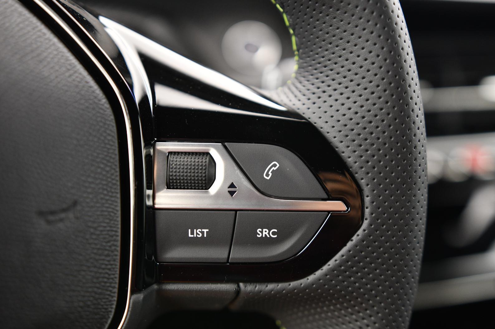Volant compact cuir fleur avec commandes multimédia intégrées et badge GT