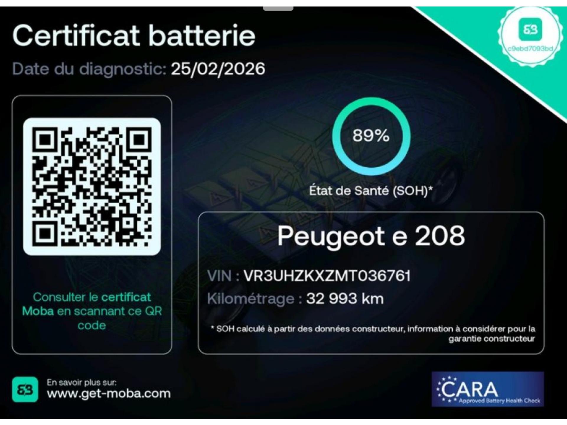 PEUGEOT 208 II ELECTRIQUE 136CH 50KWH ACTIVE BUSINESS - BVA** A SAISIR ** VISIBLE SUR PARC ** 100% éléctrique ** Etat de santé de la batterie 89% ** Autonomie norme WLTP : 280 à 340 km en usage mixte