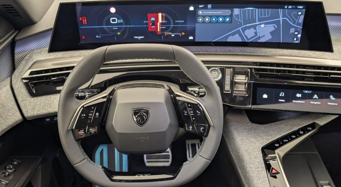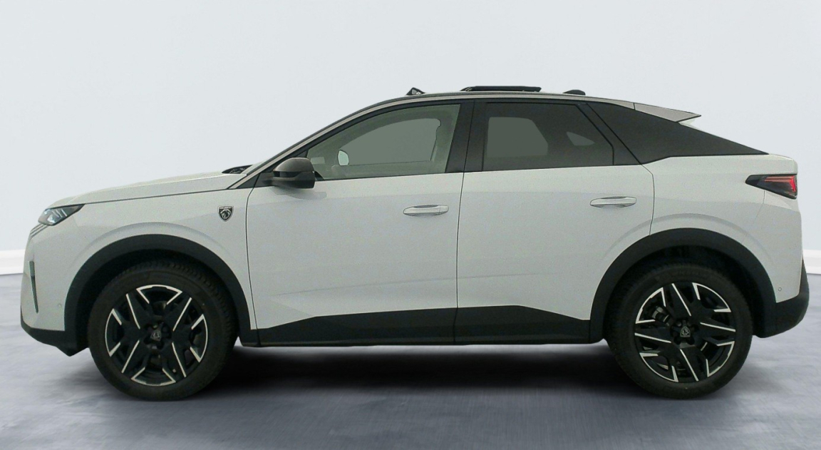 PEUGEOT 3008 (Hybrid 145 e-DCS6 GT) Blanc.GRIP CONTROL, 2 prises 12 V (Console centrale, coffre), 4 poignées de maintien rétractables (2 à l'AV et 2 à l'AR), 6 airbags: frontaux conducteur et passager autoadaptatifs (passager neutralisable par clé), latéraux conducteur et passager AV (thorax et bassin), rideaux aux places AV et AR (tête et thorax), 6 HP (2 tweeters et 2 woofers à l'AV et 2 larges bandes à l'AR), Accès et démarrage mains libres Proximity 2 Télécommandes 3 boutons (verrouillage, coffre, déverrouillage), Accoudoir central, Air conditionné automatique bizone, Allumage automatique des phares, Banquette AR avec dossier rabattable 40/20/40, Commutation adaptative des projecteurs, Détection de sousgonflage indirecte, Drive AssistRégulateur de vitesse adaptatif avec fonction Stop & Go, Eclairage d'ambiance indirect, jour & nuit sur la planche de bord, les panneaux de portes AV et sous l'écran panoramique 21'', associé aux modes de conduite, personnalisable en 8 couleurs, Eclairage intérieur Miroirs de courtoisie conducteur et passager occultables éclairés à LED, Plafonnier AV et lisseuses AR iDOME tactiles à LED, Eléments de style éxterieur Bandeau entre les projecteurs Noir laqué avec logo 3008. Calandre couleur caisse, écopes latérales Noir laqué, décor inférieur Gris Meteor, jupe inférieure Noir grainé. Vitres AR, vitres de custode et lunette AR surteintées. Lécheurs de vitres masqués. Enjoliveurs de passages de roues et protections inférieures de portes Noir grainé. Bandeau entre les feux AR Noir laqué avec lettrage PEUGEOT. Pare chocs AR avec décor Gris Meteor et jupe inférieure Noir grainé, Monogrammes AV et AR, Eléments de style intérieure Planche de bord moussée avec décor tissu RIMINI chiné, décor d'alcôve en Aluminium sérigraphié, façade et aérateurs Noir laqué avec décor Cast Iron, Panneaux de portes avec décor tissu RIMINI chiné, décor d'alcôve en Aluminium sérigraphié et jonc Cast Iron, accoudoirs TEP Isabella, surpiqûres Iced Clay à l' AV, Console centrale avec décor tissu RIMINI chiné, façade Noir laqué et jonc Cast Iron, accoudoir tissu RIMINI chiné, ESP avec aide au démarrage en pente, Essuievitre AV à déclenchement automatique, Feux AR 3 griffes à LED 3D, Feux diurnes 3 griffes à LED, Fixations ISOFIX et Top Tether aux places latérales AR, Frein de stationnement électrique, Grip control 4 modes (standard, boue, neige et sable) ( 300,00? TTC inclus), Habitacle et ciel de pavillon Noir, Hayon motorisé avec accès mains libres, Jantes alliage 19 diamantées BREDA Noir Orbital, vernis brillant, Lèvevitres AV et AR électriques séquentiels avec antipincement, Monogrammes ailes AV: 'blason PEUGEOT', Monogrammes AR 3008 et Hybrid, Monogrammes AV: blason PEUGEOT et 3008, Pack 360° Vision and Drive Assist Plus : Alarme (périmétrique, volumétrique et antisoulèvement) Rétroviseurs extérieurs dégivrants avec réglage et rabattement électriques, éclairage de seuil Recharge smartphone sans fil (puissance 15W) VisioPark 360° 4 caméras HD (AVt, AR et latérales), Aide au stationnement AV, AR et latérale (graphique et sonore) Drive Assist Plus 2.0 (conduite semi autonome): Régulateur de vitesse adaptatif avec fonction Stop & Go, Aide au maintien de la position dans la voie, Changement de voie semi automatique Détection de trafic AR Surveillance d'angles morts longue portée et aide au changement de voie, Alerte de trafic AR transversal Indexation à la marche AR avec mémorisation Supercondamnation des ouvrants ( 1 300,00? TTC inclus), Pack HiFi Focal Système : Vitres latérales AV feuilletées acoustiques Système Hi Fi Premium FOCAL 10 HP (4 tweeters, 4 woofers, 1 voie centrale, 1 subwoofer) ( 850,00? TTC inclus), Pack Safety Plus : Alerte attention conducteur Régulateur / Limiteur de vitesse Reconnaissance étendue des panneaux de signalisation et préconisation de vitesse Alerte active de franchissement involontaire de ligne et bas côté Freinage d'urgence automatique avec alerte risque de collision pilotée par caméra et radar, Pack Toit : Clean cabin avec capteur de particules dans l'habitacle Toit ouvrant panoramique et velum intérieur à commandes impulsionnelles ( 1 250,00? TTC inclus), Parebrise chauffant ( 100,00? TTC inclus), Parebrise feuilleté acoustique, PEUGEOT iCockpit panoramique avec écran incurvé et flottant 21 HD, PEUGEOT iConnect Advanced Navigation 3D connectée, 4 prises USB: 1 prise USB C (Data & charge) et 1 prise USB C (Charge) à l'AV, 2 prises USB C (Charge) à l'AR, PEUGEOT iToggles virtuels avec 10 raccourcis personnalisables, Pédalier et repose pied aluminium, Plancher de coffre modulable 2 positions, Projecteurs PEUGEOT PIXEL LED Eclairage adaptatif, commutation automatique des feux de route, feux de route avec fonctions anti éblouissement et boost, Rétroviseurs extérieurs dégivrants avec réglage et rabattement électriques, éclairage de seuil,tissu NEW UZIRIS embossé, accompagnement TEP Isabella, écharpe tissu RIMINI chiné, surpiqûres Iced Clay, 6 vitesses, 5