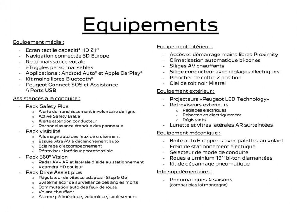 Equipements :