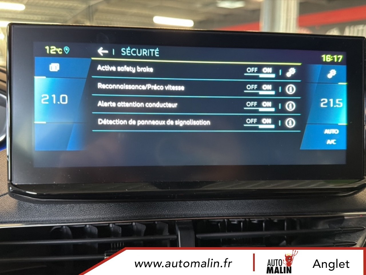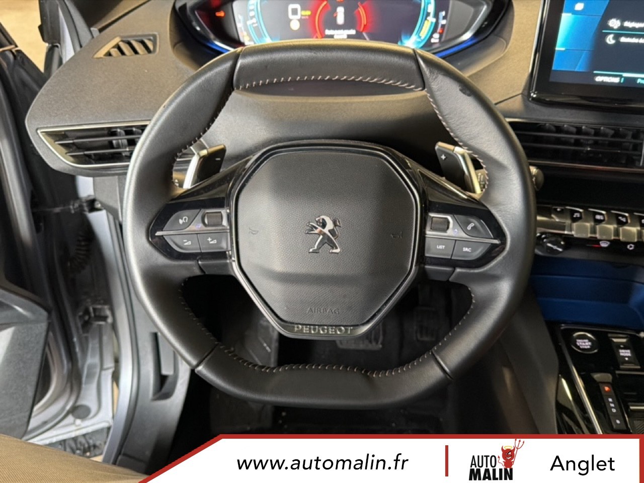 Equipements supplémentaires : 6 airbags (Frontaux adaptatifs, lateraux AV, rideaux AV/AR), Acces et demarrage mains libres, Accoudoir central AV a ouverture papillon, avec compartiment de rangement eclaire et refrigerable, Air conditionne automatique bi-zone avec aerateurs aux places AR, Appuis-tete a securite optimisee reglables en hauteur (conducteur, passager et AR x3), Avertisseur de temps de conduite, Avertisseur sonore audible depuis l'exterieur pour la securite pietons, Banquette AR rabattable 1/3 - 2/3 avec accoudoir central, trappe a skis et commandes de, Cable de recharge T2 mode 2 (10 A / 2,3 kW), Calandre a damiers chromes, Chargeur embarque 3,7kW, Controle de la charge de la batterie a distance, Coques de retroviseurs exterieurs Noir Perla Nera, Detection de sous-gonflage indirecte, Direction assistee electrique, colonne de direction reglable en hauteur et profondeur (mecanique), Enjoliveur d'arc de pavillon en Inox Brillant, Enjoliveurs d'ailes AV chromes, Feux AR a LED avec effet 3D, clignotants a defilement, Fixations ISOFIX (passager AV et aux places laterales AR), Frein de stationnement electrique avec aide au demarrage en pente et serrage automatique, Garnissage TEP avec Tissu Colyn Mistral, Habitacle et ciel de pavillon Noir Mistral, Indicateur de rapport conseille, Kit de depannage de pneumatique : compresseur 12 volts, flacon de produit de colmatage, anneau de, Leve-vitres AV/AR electriques et sequentiels avec antipincement, Pack City, Pack City 1, Pack Eclairage d'ambiance, Pack Safety Plus, Pack Visibilite, Pares-soleil avec miroirs de courtoisie eclaires, Passages de roues rapportes Noir Mat, Peinture metallisee Bleu Celebes, Peugeot i-Cockpit avec combine tete haute numerique, volant compact multi-fonctions, Plafonniers AV/AR a LED avec 2 spots de lecture, Plancher de coffre fixe avec articulation pour acces au coffre de rangement du cable de recharge, Poches/filets aumonieres au dos des sieges AV, Pre-chauffage / climatisation du vehicule a distance, Prise 12 V (x3 : zone connectique, AR de console et coffre), Protecteurs de bas de portes avec inserts Inox Brillant, Reconnaissance etendue des panneaux de signalisation, Regulateur / Limiteur de vitesse, Retroviseur interieur photosensible, Retroviseurs exterieurs degivrants avec reglage et rabattement electriques, Retroviseurs exterieurs degivrants avec reglage et rabattement electriques,, Sabot de pare--chocs AV peint Gris Lion, Sabot de pare-chocs AV peint Metallure, Securite enfants electrique des vitres AR, Selecteur de modes de conduite (Electric, Hybrid, Sport), Siege conducteur avec reglage lombaire, Sieges AV reglables en hauteur, Teintes metallisees, Toggle Switches chromes (touches piano d'activation des fonctions de l'ecran tactile), Trappe de recharge electrique avec indicateur d'etat de charge, Vitres laterales AR et lunette AR chauffante surteintees, Volant Cuir fleur Mistral, Chargeur embarque 7,4 kW, Pack City 1, Pack Drive Assist Plus, Teintes metallisees.