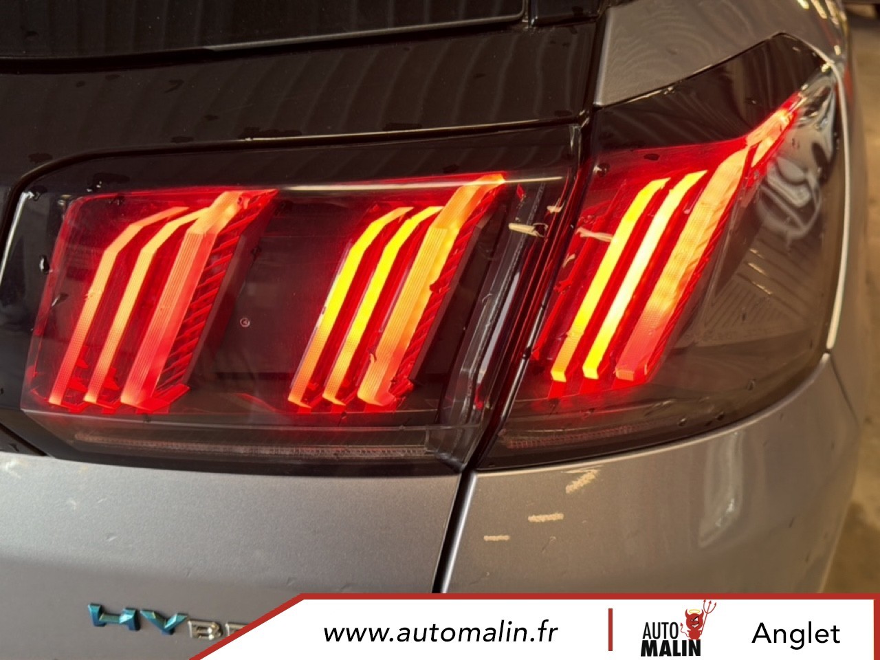 Equipements : Badge "HYBRID" sur ailes AV et volet de coffre, Badge "HYBRID" sur volet de coffre, Decors de planche de bord et panneaux de portes en maille "Brumeo", Essuie-vitre AV avec systeme de lavage "Magic Wash", Fonction "Mirror Screen" (Apple CarPlay / Android Auto ), Jantes alliage 18" diamantees DETROIT bi-ton Gris Storm brillant, Navigation 3D connectee avec ecran tactile capacitif 10" HD, PEUGEOT Connect SOS & Assistance et Teleservices, Projecteurs "Peugeot LED Technology" avec feux diurnes a LED sous projecteurs