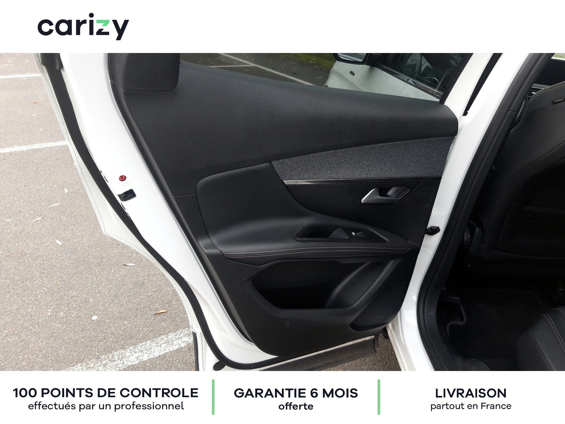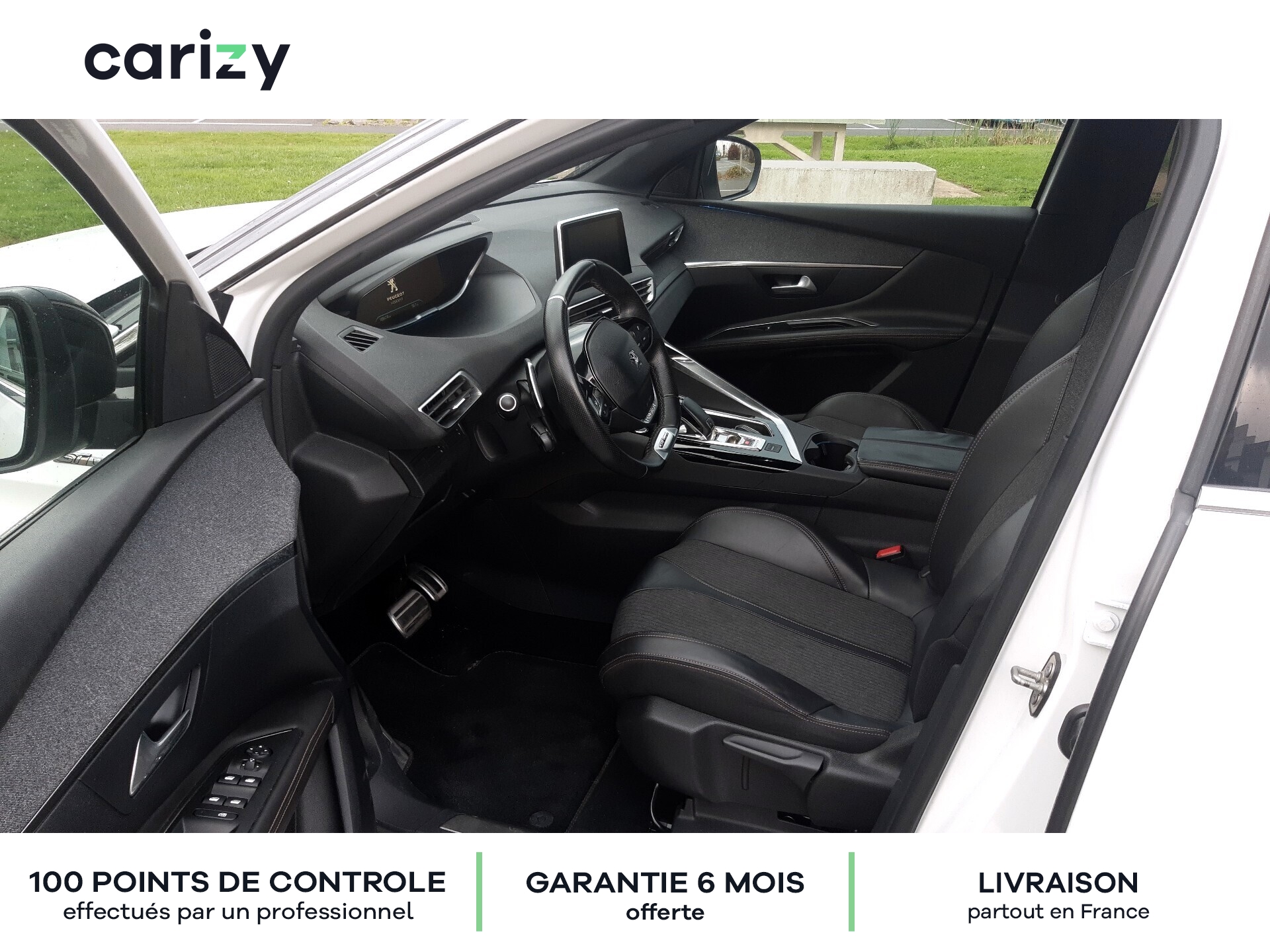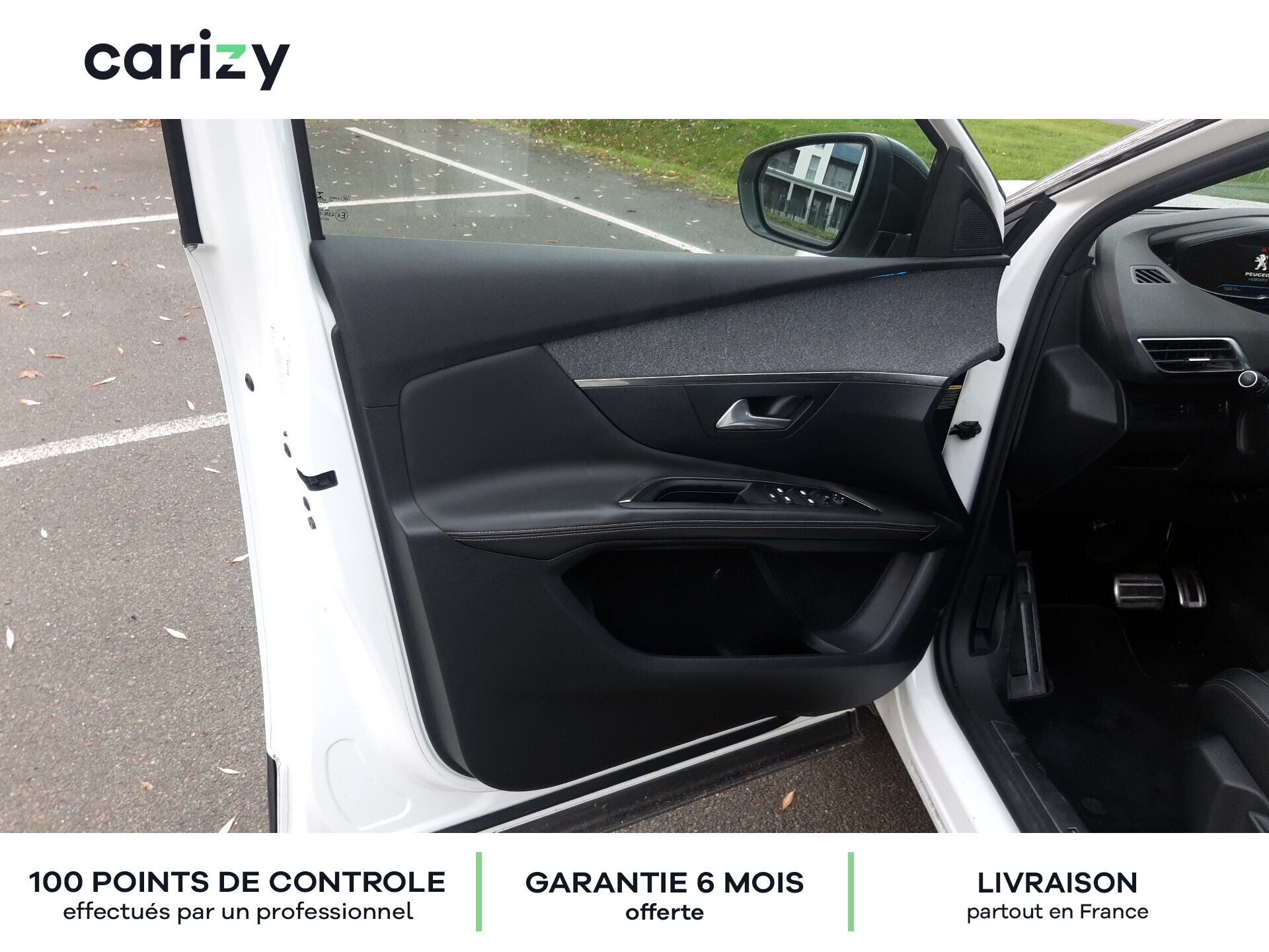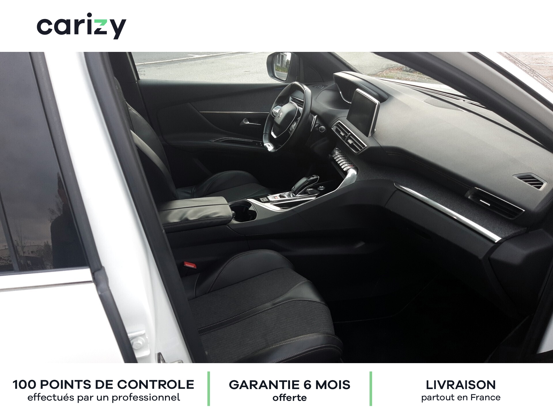 Climatisation, Bluetooth, Jantes en alliage, GPS, Siège en cuir, Prises USB, Régulateur de vitesse, Radar de recul arrière, Caméra de recul, Phares LED, Apple car play, Android auto, Peinture nacrée (Blanc nacré), Vitres latérales AR et lunette AR surteintées, Projecteurs `Peugeot Full Led Technology`, Pack City 1, Barres de toit longitudinales profilée en Aluminium, PEUGEOT i-Cockpit Amplify, Peugeot Connect, Roue de secours galette, Recharge smartphone sans fil + Prise 220 Volts, Sellerie TEP & Tissu `Imila`, Carizy est le n°1 de la vente de voitures d'occasion de particuliers sur internet, avec plus de 10 000 ventes réalisées. Tous les véhicules Carizy d'occasion sont contrôlés par un inspecteur automobile sur 100 points de contrôle et bénéficient d'une garantie offerte de 6 mois (extensible). Solutions de financement sur mesure avec ou sans apport, aide dans les démarches de prime à la conversion (si véhicule éligible) ou encore livraison de la voiture à l'adresse de votre choix partout en France métropolitaine, Carizy vous accompagne dans votre projet d'achat. Besoin de plus d'infos ? Contactez-nous ! Livraison partout en France métropolitaine. Besoin d'un financement ? Carizy est partenaire de Cofidis.
