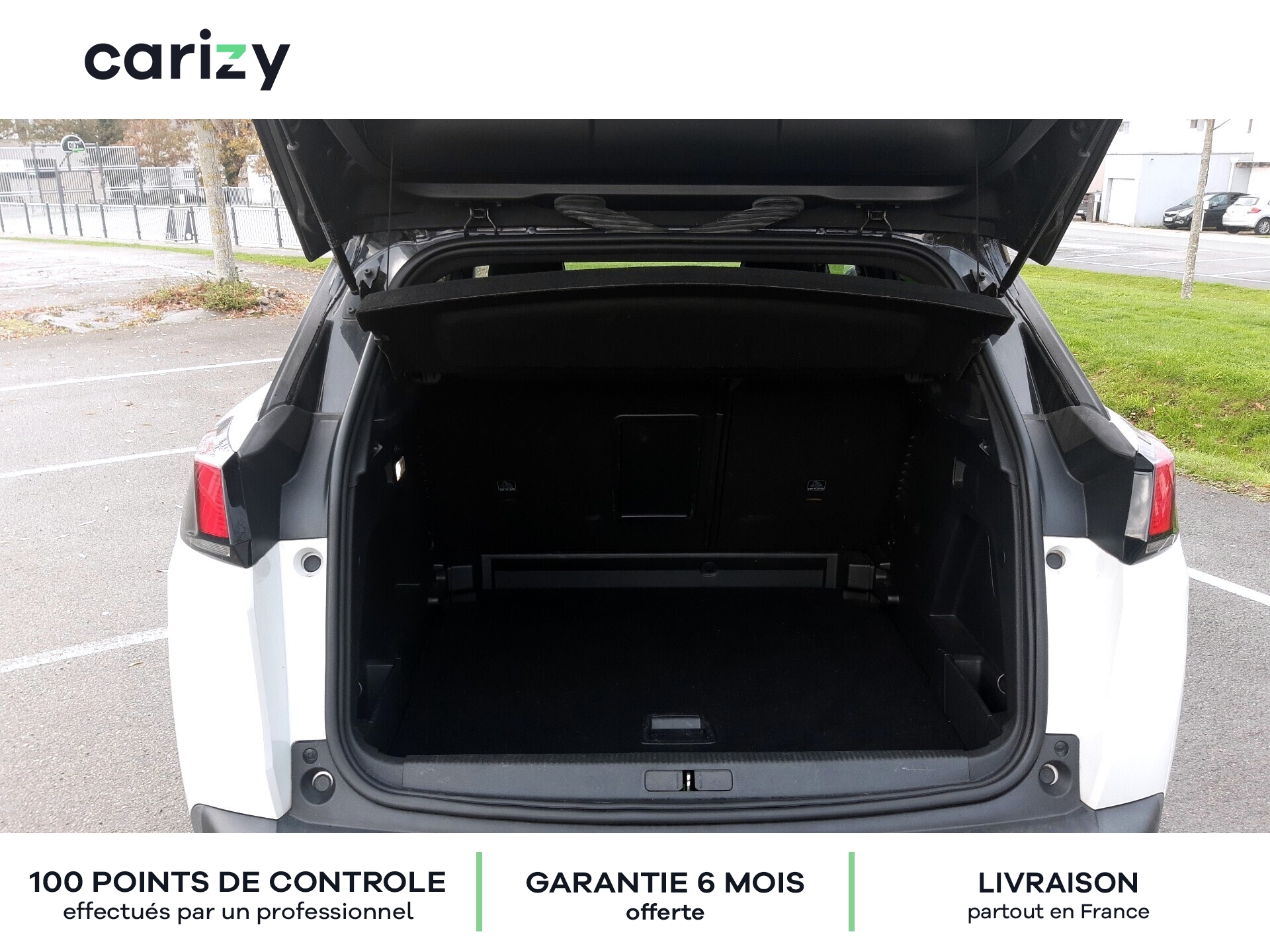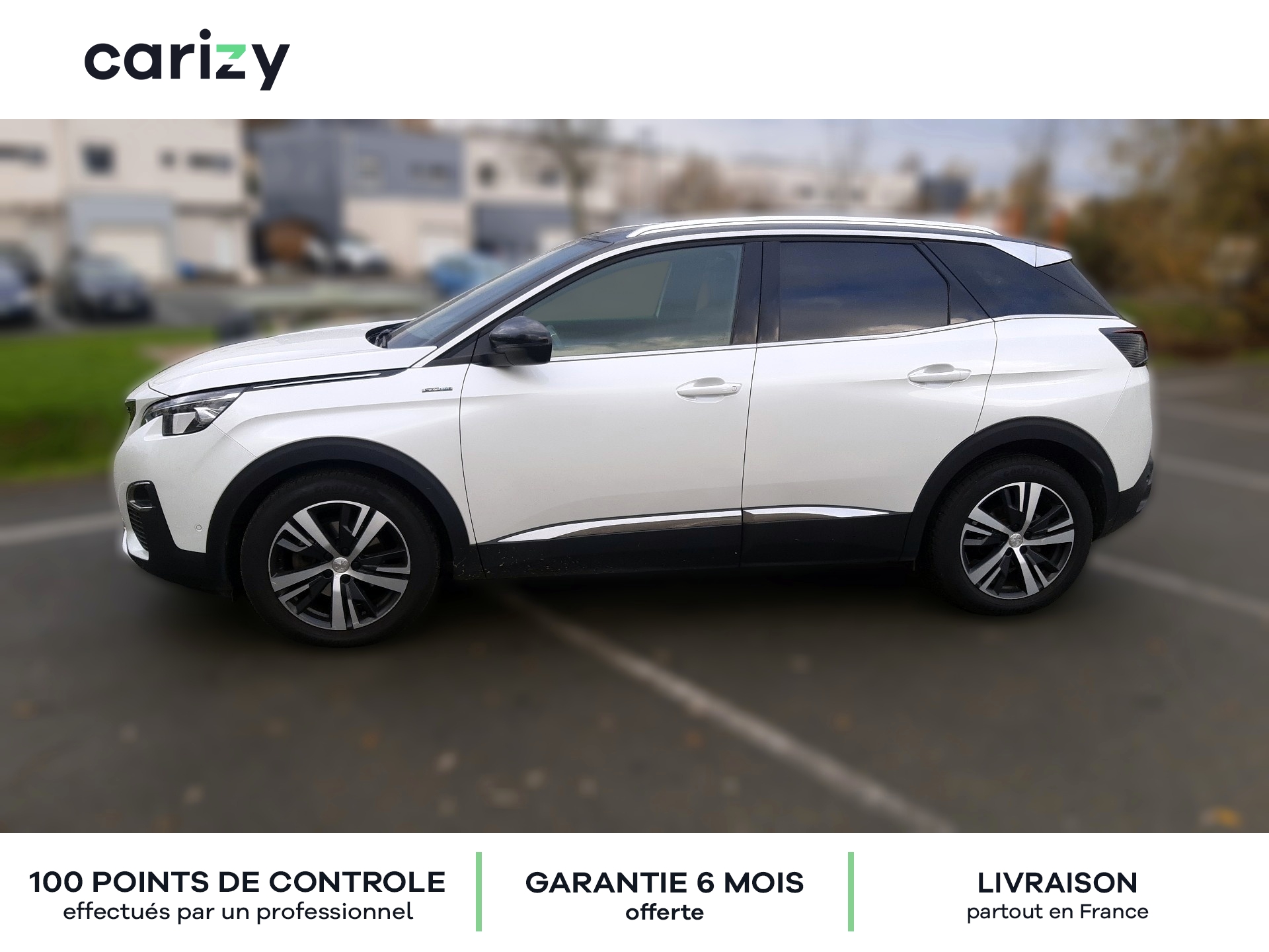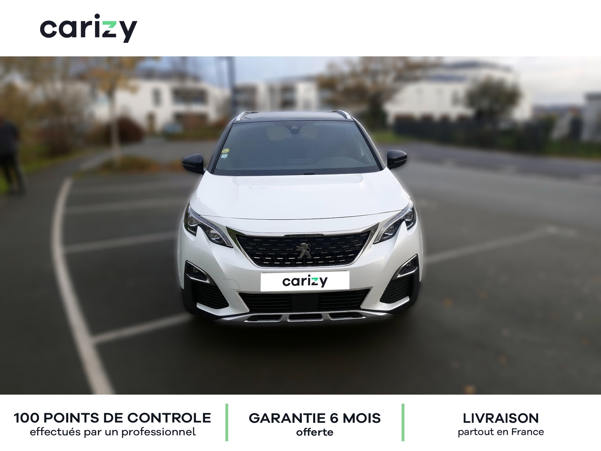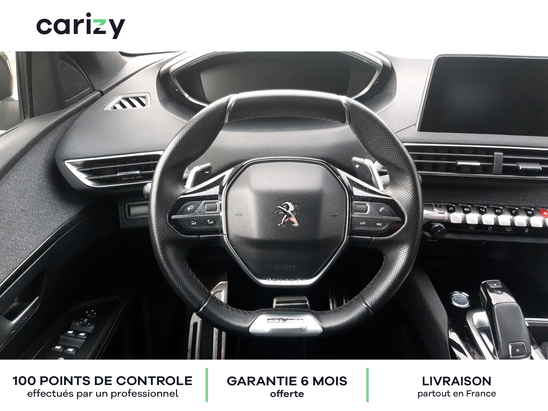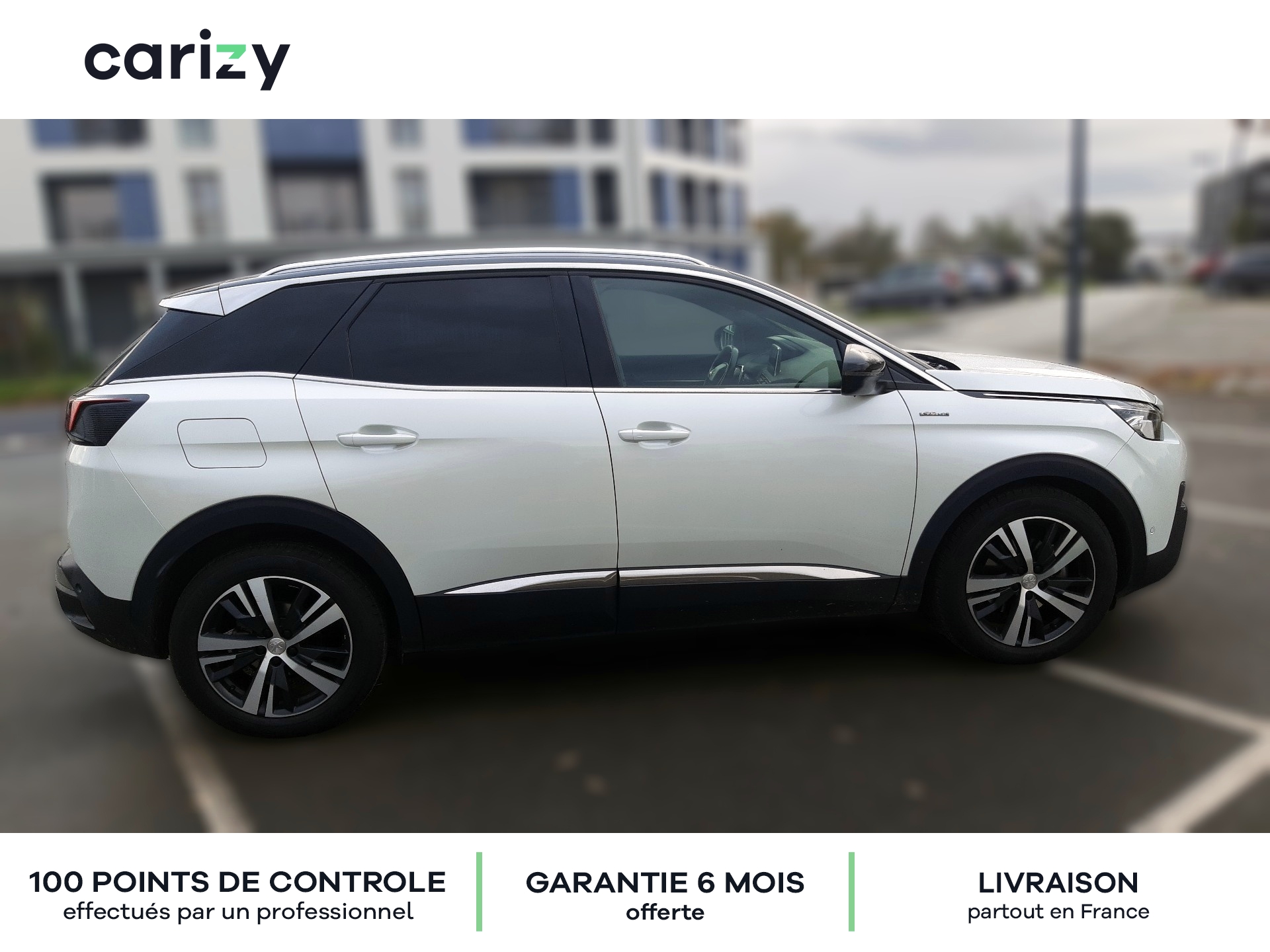 Climatisation, Bluetooth, Jantes en alliage, GPS, Siège en cuir, Prises USB, Régulateur de vitesse, Radar de recul arrière, Caméra de recul, Phares LED, Apple car play, Android auto, Peinture nacrée (Blanc nacré), Vitres latérales AR et lunette AR surteintées, Projecteurs `Peugeot Full Led Technology`, Pack City 1, Barres de toit longitudinales profilée en Aluminium, PEUGEOT i-Cockpit Amplify, Peugeot Connect, Roue de secours galette, Recharge smartphone sans fil + Prise 220 Volts, Sellerie TEP & Tissu `Imila`, Carizy est le n°1 de la vente de voitures d'occasion de particuliers sur internet, avec plus de 10 000 ventes réalisées. Tous les véhicules Carizy d'occasion sont contrôlés par un inspecteur automobile sur 100 points de contrôle et bénéficient d'une garantie offerte de 6 mois (extensible). Solutions de financement sur mesure avec ou sans apport, aide dans les démarches de prime à la conversion (si véhicule éligible) ou encore livraison de la voiture à l'adresse de votre choix partout en France métropolitaine, Carizy vous accompagne dans votre projet d'achat. Besoin de plus d'infos ? Contactez-nous ! Livraison partout en France métropolitaine. Besoin d'un financement ? Carizy est partenaire de Cofidis.