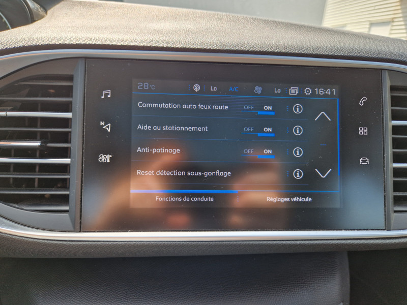 Navigation (Nav+SOS et Assistance,Télé),6 Haut parleurs,ABS,Accoudoir central AV avec rangement,Aide au freinage d'urgence,Airbag conducteur,Airbag passager,Airbag passager déconnectable,Airbags latéraux avant,Airbags rideaux AV et AR,Antibrouillard halogènes,Appui-tête conducteur réglable hauteur,Appui-tête passager réglable en hauteur,Arrêt et redémarrage auto. du moteur,Bacs de portes avant,Banquette 1/3-2/3,Banquette AR rabattable,Banquette arrière 3 places,Becquet arrière,Boite à gants éclairée et réfrigérable,Boucliers AV et AR couleur caisse,Capteur de luminosité,Capteur de pluie,Ceintures avant ajustables en hauteur,Clim automatique bi-zones,Commandes du système audio au volant,Détecteur de sous-gonflage,Eclairage au sol,Ecran tactile,ESP,Feux arrière à LED,Feux de freinage d'urgence,Feux de jour,Filtre à particules,Filtre à Pollen,Follow me home,Fonction 'Mirror Screen',Fonction MP3,Frein à main en cuir,Guidage pour manoeuvre de stationnement,Indicateur de limitation de vitesse,Jantes Alu,Kit mains-libres Bluetooth,Limiteur de vitesse,Lunette AR dégivrante