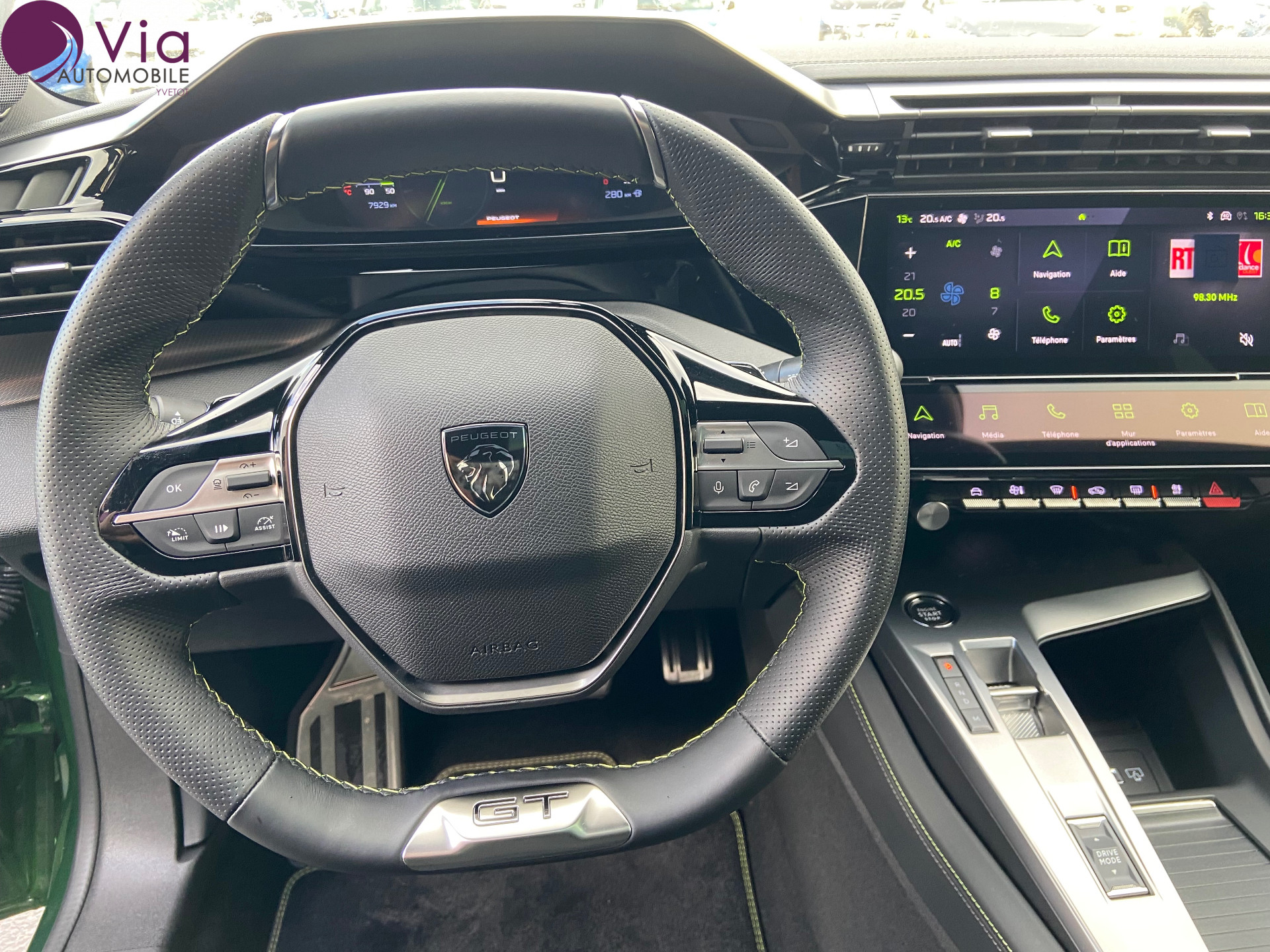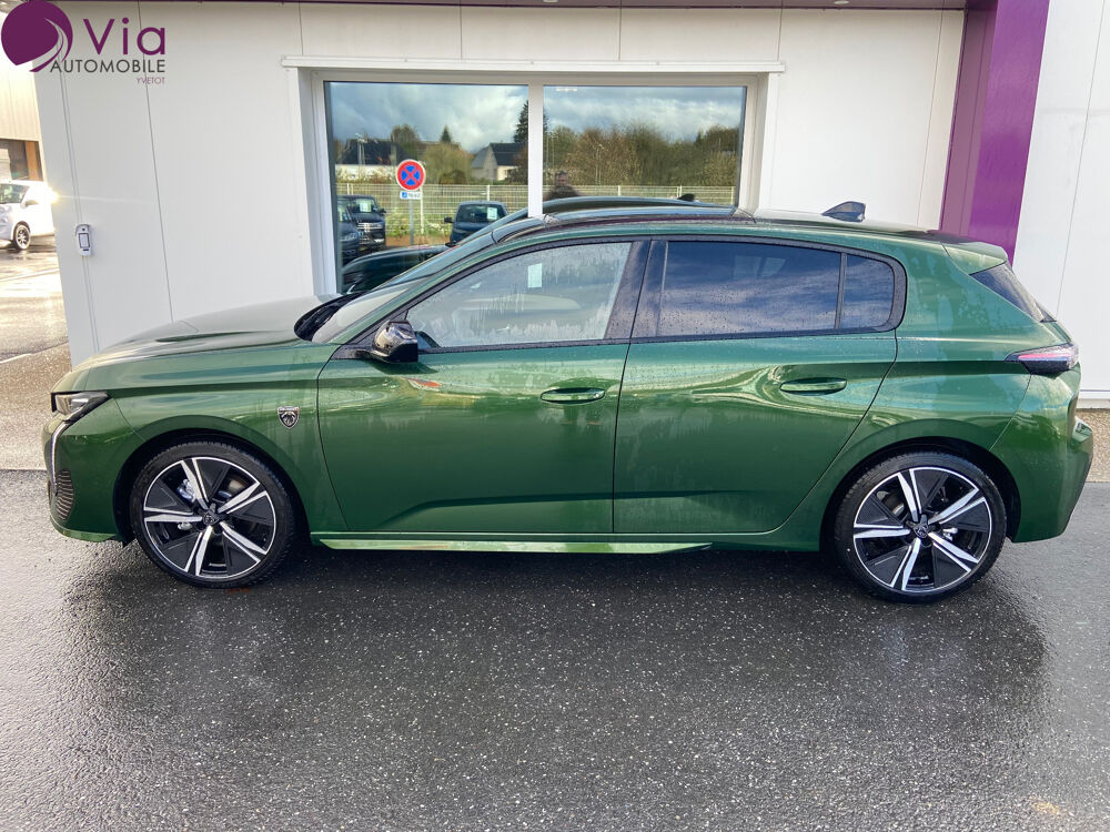 *** SOUS RESERVE D'ERREUR DE REDACTION ET D'OPTIONS *** Equipements supplémentaires : 2 prises USB-C a l'AR, 2 prises USB-C a l'AV, 2 telecommandes 3 boutons, ABS, Acces et demarrage mains libres, Accoudoir central AV avec compartiment de rangement, Active Safety Brake (freinage automatique d'urgence), Aide au stationnement AR, Aide au stationnement AV, Air conditionne automatique bi-zone, Airbags frontaux conducteur et passager adaptatifs (passager neutralisable par cle), airbags, Alerte active de franchissement involontaire de ligne et bas cote, Alerte attention conducteur, Allumage automatique des feux de croisement, Bandeau entre feux AR Noir brillant, Banquette AR rabattable 1/3-2/3, Boite de vitesse automatique (8 rapports), Calandre AV specifique Noir verni avec inserts chromes et ecopes Noir Brillant, Camera de recul, Ceintures de securite AR 3 points a enrouleur (x3) avec pretensionneurs et limiteurs d'effort aux, Ceintures de securite AV 3 points a enrouleur, avec pretensionneurs et limiteurs d'effort, Commutation automatique des feux de route, Controle de traction, Coques de retroviseurs exterieurs Noir Brillant, Decor Alu sur panneaux de porte, Detection de sous gonflage, Diffuseurs d'air aux places AR, Direction assistee electrique, Driver Sport Pack, Eclairage d'ambiance (8 couleurs), Elargisseurs de pare chocs AV et de bas de caisse lateraux, ESP avec fonction Hill Assist (Aide au demarrage en pente), Essuie-vitre AV a declenchement automatique, Feux AR specifiques avec allumage dynamique griffe a griffe, Feux diurnes a LED sous projecteurs nouvelle signature Peugeot, Fixations ISOFIX aux 2 places laterales AR (Top Tether), Fonction Mirror Screen (Apple CarPlay/Android Auto) sans fil, Frein de stationnement electrique, Garnissage tri-matieres TEP/Tissu New Belomka, Intervalle de maintenance 30 000 km ou 1 an, Jupe AR Noir Brillant avec decors chromes, Lecheurs de vitres Noir Brillant, Leve-vitres electriques AV/ AR et sequentiels avec anti-pincement, Monogrammes lateraux embleme Lion, Navigation connectee avec ecran central tactile 10'' et i-Toggles virtuels personnalisables, Pack Safety Plus, Pare-brise teinte feuillete acoustique, Pedalier Sport et repose pied en aluminium, Peugeot i-Cockpit avec combine d'instrumentation numerique 10'' personnalisable, Planche de bord avec jonc transversal peint, decor Alu et surpiqures Vert, Projecteurs Peugeot Matrix LED, Reconnaissance etendue des panneaux de signalisation, Reglage lombaire du siege conducteur, Regulateur / Limiteur de vitesse, Retroviseur interieur photosensible, Retroviseurs exterieurs electriques, degivrants et rabattables electriquement, avec repetiteurs de, Selecteur mode de conduite Eco et Sport, Seuils de porte AV aluminium, Siege conducteur reglable en hauteur, Siege passager reglable en hauteur, Smart Multidrive: personnalisation du combine et eclairage d'ambiance LED interieur, Surtapis AV/AR, Teintes metallisees, Vitres AV electriques, Vitres laterales AR et lunette AR surteintees, Volant avec reglage manuel en hauteur et en profondeur, Volant cuir, Ecrous de roues anti-vol.