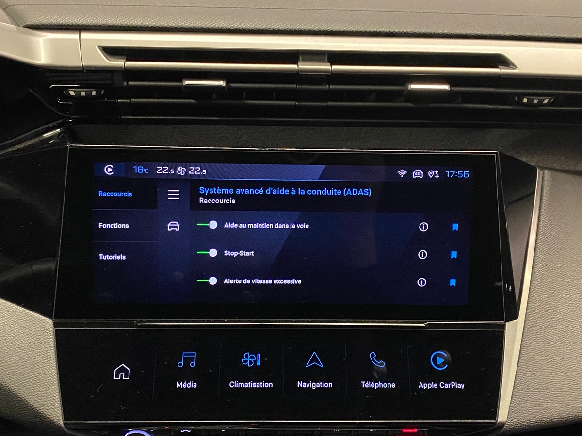 • OPTION : Pack Drive Assist + Régulateur de vitesse adaptatif ACC + Aide au maintien de la position dans la voie (conduite semi autonome) + Dispositif freinage automatique