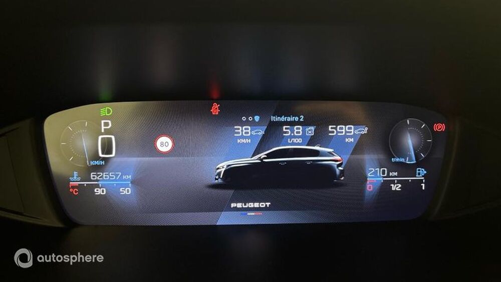 Equipements: ABS, Accoudoir central AR avec trappe à skis, Accoudoir central AV avec rangement, AFIL, Aide au démarrage en côte, Aide au freinage d'urgence, Airbag conducteur, Airbag passager déconnectable, Airbags latéraux avant, Airbags rideaux, Airbags rideaux AR, Allumage des phares automatique, Antipatinage, Appui-tête conducteur réglable hauteur, Appui-tête passager réglable en hauteur, Arrêt et redémarrage auto. du moteur, Banquette 1/3-2/3, Banquette AR rabattable, Caméra de recul, Capteur de pluie, Clim automatique bi-zones, Commandes du système audio au volant, Démarrage sans clé, Détecteur de sous-gonflage, Dispositif freinage automatique, Eclairage au sol, Ecran multifonction couleur, Ecran tactile, ESP, Feux arrière à LED, Feux de freinage d'urgence, Feux de jour à LED, Fixations Isofix aux places arrières, Freinage automatique d'urgence, Frein stationnement électrique, Guidage pour manoeuvre de stationnement, Indicateur de limitation de vitesse, Interface Media, Jantes Alu, Limiteur de vitesse, Lunette arrière surteintée, Miroir de courtoisie conducteur éclairé, Miroir de courtoisie passager éclairé, Navigation connectée, Ouverture des vitres séquentielle, Pare-brise acoustique, Peugeot Connect SOS & Assistance, Phares avant LED, Prise 12V, Prise USB, Radar de stationnement AR, Radar de stationnement AV, Radio numérique DAB, Reconnaissance panneaux de signalisation, Régulateur de vitesse adaptatif, Régulateur de vitesse et de distance, Répartiteur électronique de freinage, Répétiteurs de clignotant dans rétro ext, Rétroviseur intérieur électrochrome, Rétroviseurs dégivrants, Rétroviseurs électriques, Rétroviseurs rabattables électriquement, Sellerie Tri-matières Tep/Tissu Falgo, Siège conducteur avec réglage lombaire, Siège conducteur réglable en hauteur, Siège passager réglable en hauteur, Système avancé de détection d'obstacles, Système d'accès sans clé, Système d'éclairage intelligent, Système de contrôle des angles morts, Système de détection de somnolence, Système de prévention des collisions, Témoin de bouclage des ceintures AV, Troisième ceinture de sécurité, Verrouillage auto. des portes en roulant, Verrouillage centralisé à distance, Verrouillage centralisé des portes, Vitres arrière électriques, Vitres arrière surteintées, Vitres avant électriques, Volant multifonction, Volant réglable en profondeur et hauteur, Pack Drive Assist Plus, Rouge Elixir (S)
