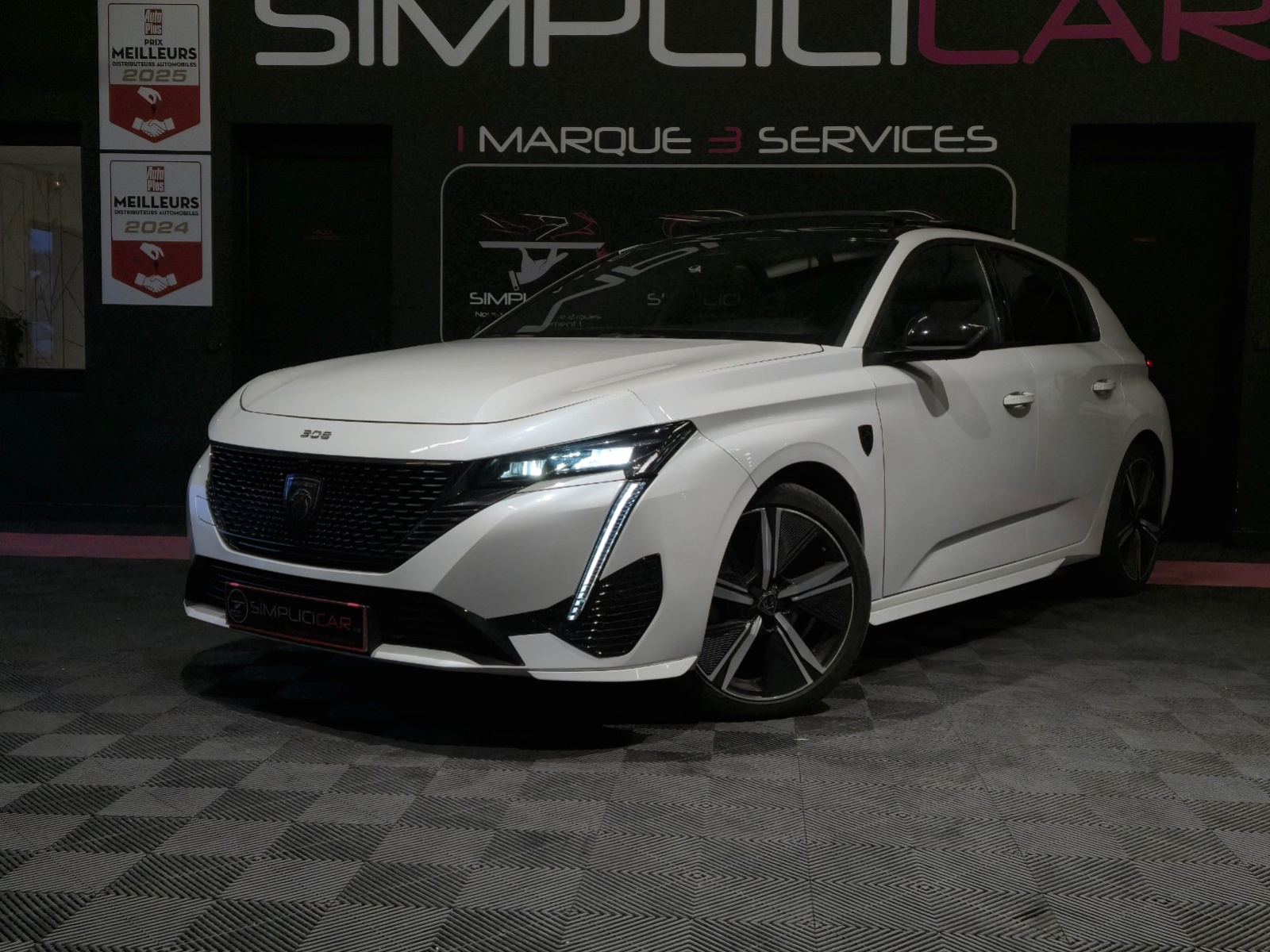 PEUGEOT 308 PureTech 130ch S&S EAT8 GT// Accoudoir avant Aide au démarrage en pente Airbag conducteur Airbag latéral conducteur et passager Airbag passager Airbags rideaux arrière Airbags rideaux avant Alerte de franchissement involontaire de lignes Allumage automatique des phares Android Auto Apple Carplay Avertisseur d'angle mort Banquette arrière partagée et rabattable Caméra 360° Carte mains-libres Ceinture centrale arrière 3 points Ceintures arrière avec prétensionneurs Ceintures avant avec prétensionneurs Climatisation automatique bizone Contrôle pression pneus (RDC) Dispositif de recharge à induction Détecteur de fatigue ESP (programme de stabilité électronique) Ecran tactile Feux avant LED Feux de jour Feux de position à LED Feux de route assistés Feux et essuie-glaces automatiques Feux indicateurs de changement de direction Filtre d'habitacle Fixation pour siège enfant Frein de stationnement électrique GPS Interface Bluetooth Jantes/roues en alliage léger 18 Keyless-go Kit de réparation pneus (Mobile Tyre) Line Assist Lève-vitres arrière électriques Lève-vitres avant électriques Peinture nacrée / perlée Radar de stationnement arrière Radar de stationnement avant Reconnaissance des panneaux de signalisation Recyclage de l'air automatique Régulateur de vitesse adaptatif Rétroviseur intérieur électrochrome Rétroviseurs extérieurs dégivrants Rétroviseurs extérieurs rabattable électriquement Rétroviseurs extérieurs électriques Siège conducteur réglable en hauteur Siège conducteur à réglage lombaire Siège passager réglable en hauteur Sièges avant chauffants Sièges en cuir / alcantara Système Start/Stop Système de navigation Sélection du mode de conduite Toit ouvrant coulissant/relevable Trappe/sac à skis Téléassistance USB jack Verrouillage centralisé Verrouillage centralisé télécommandé Virtual cockpit Vitres arrière surteintées Vitres teintées Volant avec palettes de changement de vitesses Volant chauffant Volant en cuir Volant réglable manuellement