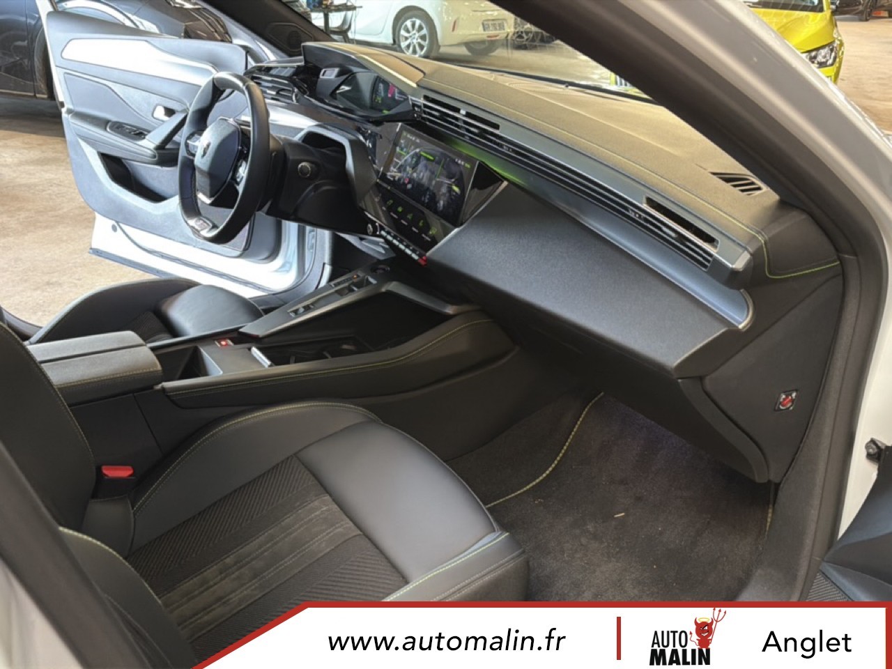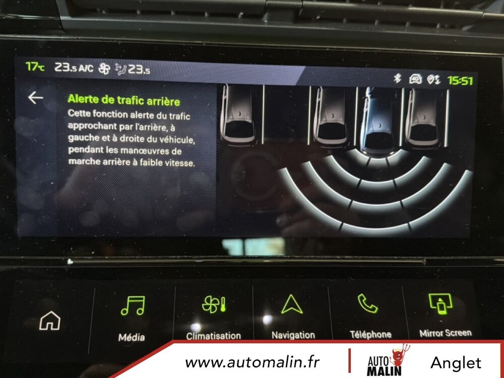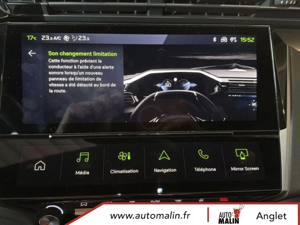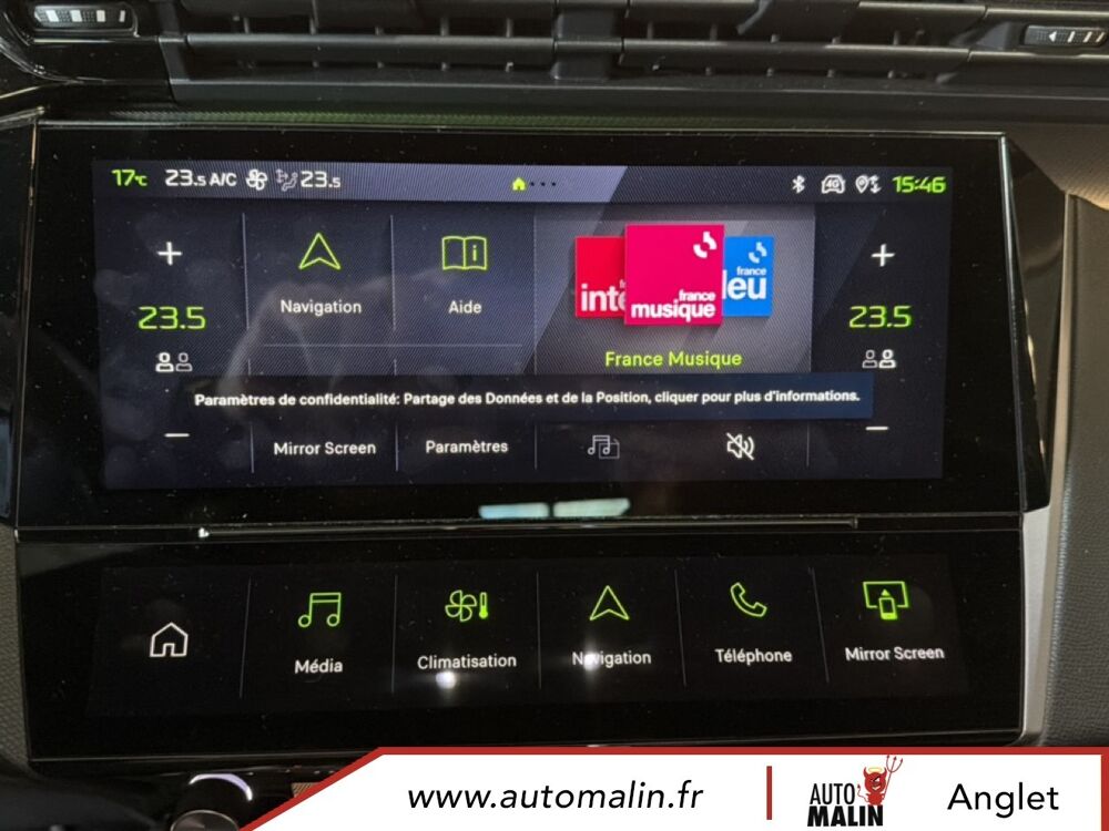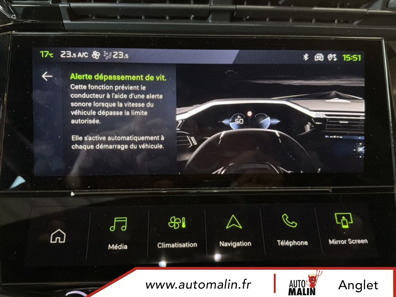 Equipements supplémentaires : 2 prises USB-C a l'AR, 2 prises USB-C a l'AV, Console centrale avec double surpiqure et arche de console peinture gris Stene, Driver Sport Pack, Navigation connectee avec ecran central tactile 10'' et i-Toggles virtuels personnalisables, Planche de bord avec jonc transversal peint, decor Alu et surpiqures Vert, Sellerie tri-matiere tissu TEP / Tissu New Belomka, Volet motorise avec acces bras charges.