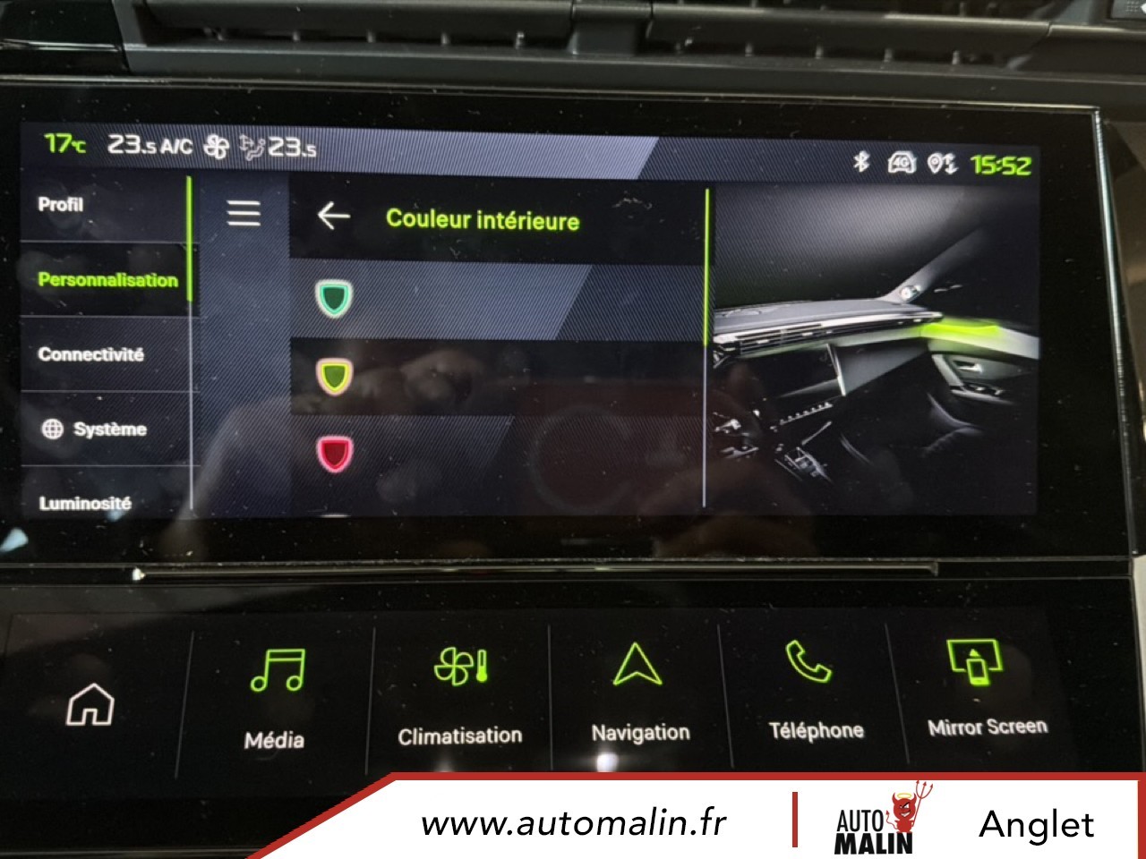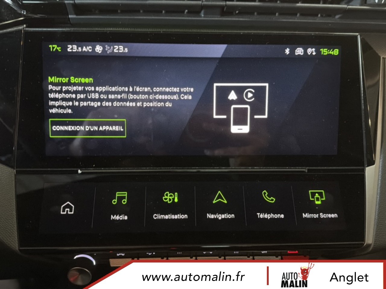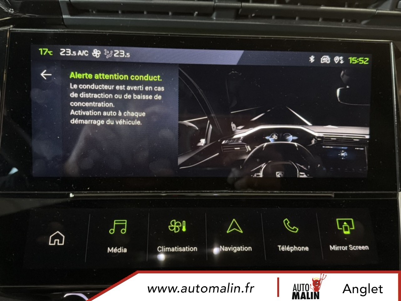 Equipements supplémentaires : 2 prises USB-C a l'AR, 2 prises USB-C a l'AV, Console centrale avec double surpiqure et arche de console peinture gris Stene, Driver Sport Pack, Navigation connectee avec ecran central tactile 10'' et i-Toggles virtuels personnalisables, Planche de bord avec jonc transversal peint, decor Alu et surpiqures Vert, Sellerie tri-matiere tissu TEP / Tissu New Belomka, Volet motorise avec acces bras charges.