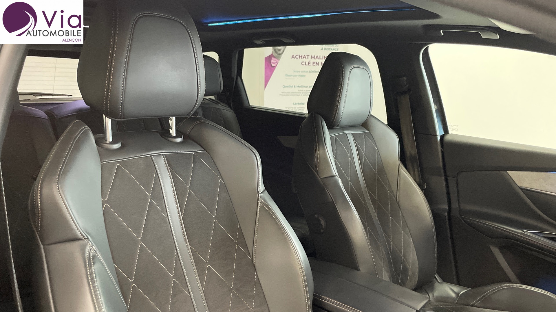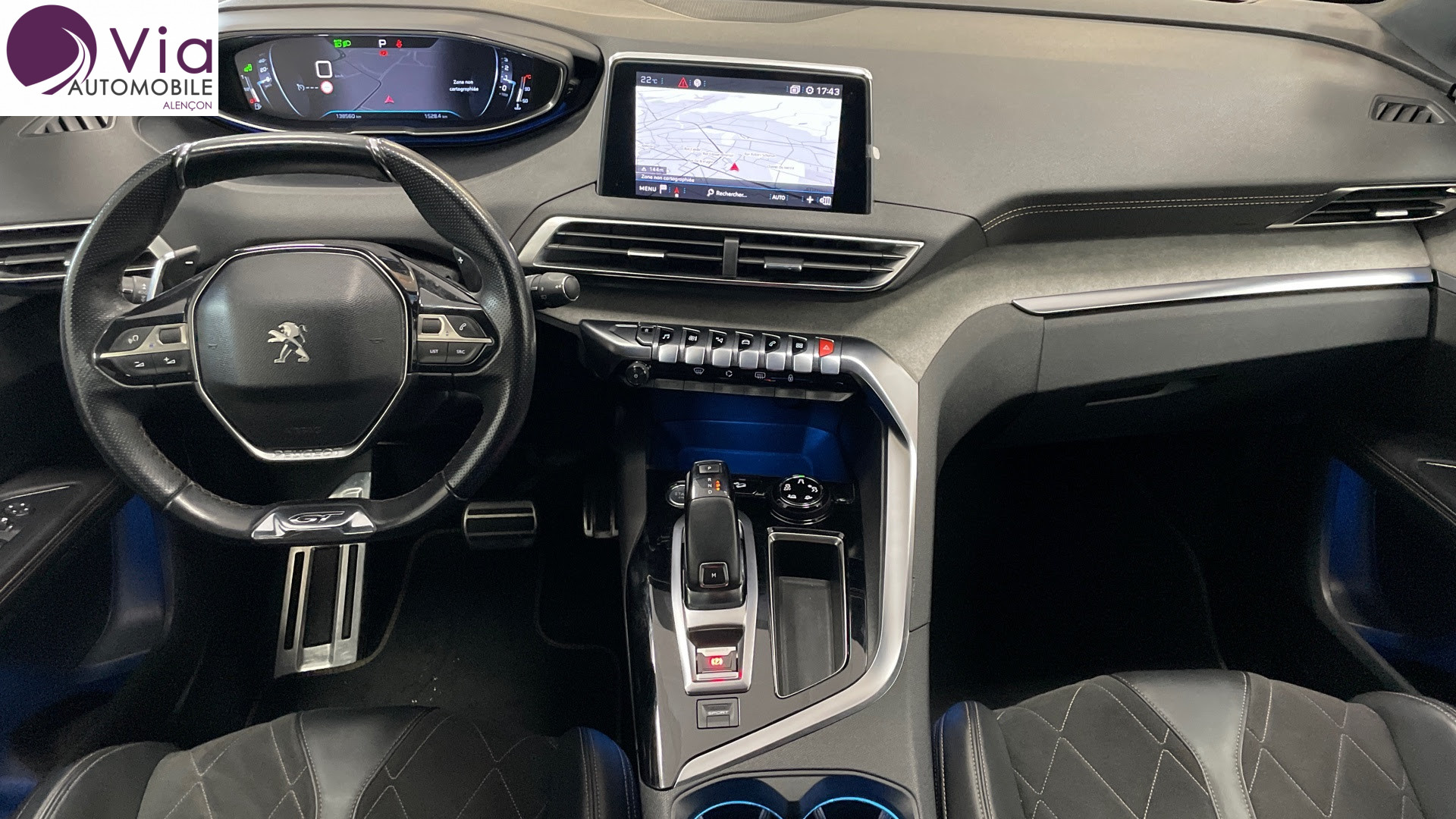 Equipements : Decors de planche de bord et panneaux de portes "Grey Oak" (bois veritable chene gris), Essuie-vitre AV avec systeme de lavage "Magic Wash", Fonction "Mirror Screen", Jantes alliage 19" "Boston" bi-ton diamantees vernis mat, Projecteurs "Peugeot Full Led Technology", Sellerie TEP & "Alcantara", Toit "Black Diamond" (toit Noir Perla Nera)