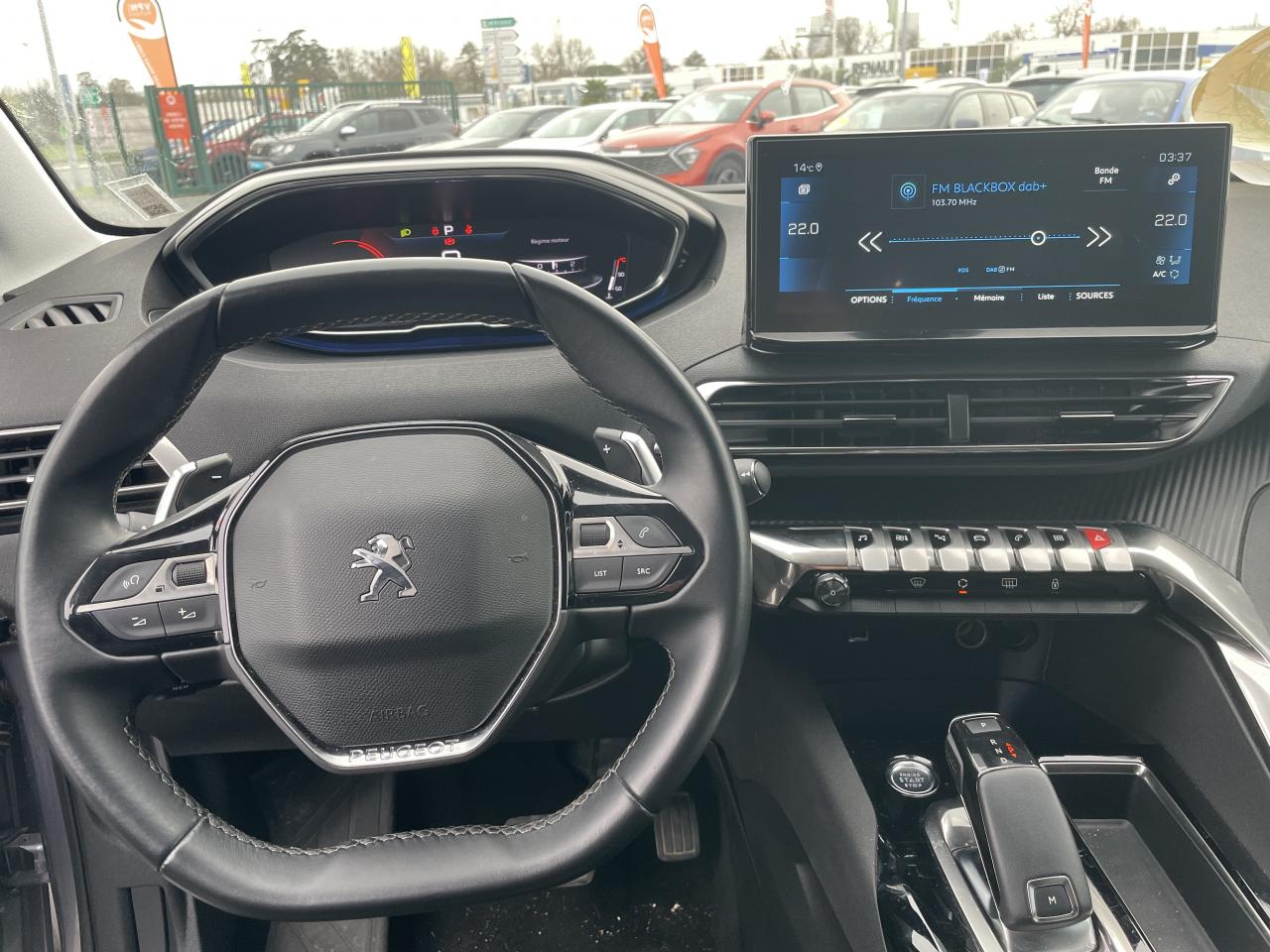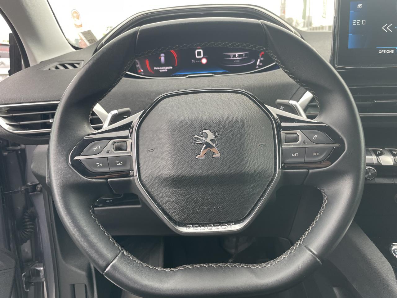 en hauteur et profondeur (mécanique), Drive Mode : Choix de 2 modes de conduite (Eco ou Sport), Eclairage intérieur à LED : plafonniers, Enjoliveur de seuil dentrée de coffre chromé, Enjoliveurs darc de pavillon en inox, Enjoliveurs en inox sur les protecteurs de bas de portes, Essuie-vitre arrière à enclenchement marche arrière, Essuie-vitre avant avec système de lavage Magic Wash, Filets aumônières au dos des sièges avant, Fixation ISOFIX pour sièges enfants sur 3 places arrière, Frein de stationnement électrique avec aide au démarrage en pente, Indicateur de rapport, Inserts dailes avant chromés, Kit de dépannage pneumatique, Lève-vitres électriques et séquentiels avec antipincement, Lunette arrière chauffante avec antennes sérigraphiées, Miroirs de courtoisie éclairés, Passages de roues rapportés noirs, PEUGEOT Connect SOS & Assistance et Teleservices, Plafonniers avec spots de lecture avant (x2), arrière (x2) et en rang