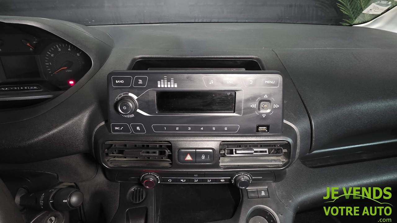 6 Haut parleurs,Commandes du système audio au volant,Fonction MP3,Kit mains-libres Bluetooth,Lecteur CD,Prise auxiliaire de connexion audio,Prise Jack,Prise USB,Radio,ABS,Aide au freinage d urgence,Airbag conducteur,Antidémarrage électronique,Antipatinage,Ceintures avant ajustables en hauteur,EBD,ESP,Témoin de bouclage ceinture conducteur,Aide au démarrage en côte,Limiteur de vitesse,Régulateur de vitesse,Bacs de portes avant,Boite à gants fermée,Clim manuelle,Compte tours,Filtre à Pollen,Lampe de coffre,Lampes de lecture à l avant,Ordinateur de bord,Ouverture des vitres séquentielle,Plancher plastique,Porte-gobelets avant,Rangement sous siège conducteur,Siège conducteur réglable en hauteur,Siège passager avec dossier repliable,Verrouillage auto. des portes en roulant,Verrouillage centralisé à distance,Verrouillage centralisé des portes,Vitres avant électriques,Vitres teintées,Volant réglable en profondeur et hauteur,Blanc,Peinture,Boucliers AV et AR couleur caisse,Double portes arrière de chargement,Enjoliveurs,Feux de freinage d urgence,Filtre à particules,Phares halogènes,Porte latérale arrière droite,Portes arrière battantes,Rétroviseurs électriques,Cloison tubulaire conducteur,Gris,Sellerie tissu
