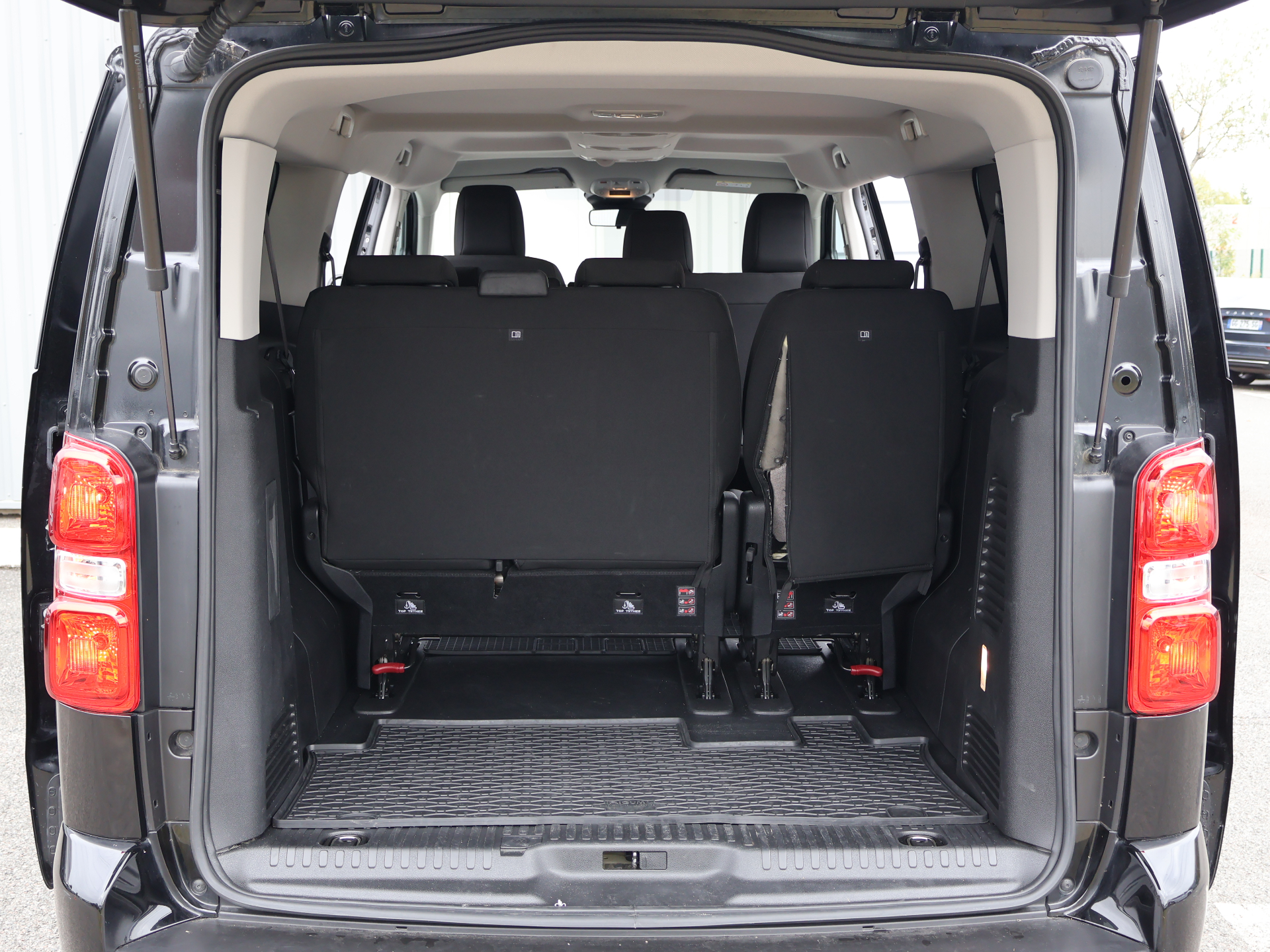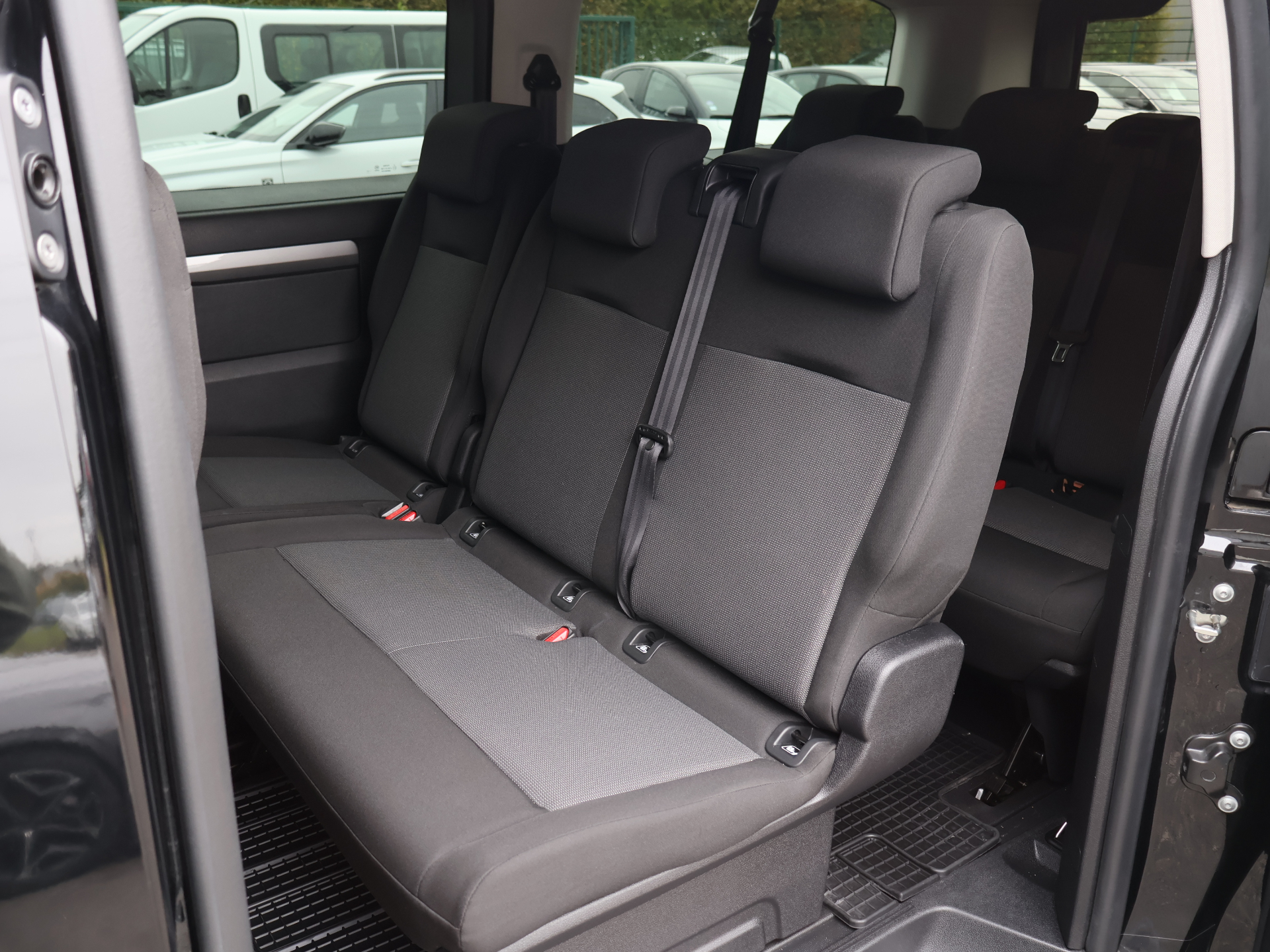 - 1/4 de Carburant Equipements supplémentaires : 2 portes laterales coulissantes, 2 prises 12V, ABS, ESP, ASR, AFU, Aide au stationnement AR, Airbags frontaux, lateraux AV tete/thorax et rideaux en rangs 2 et 3, Allumage automatique des feux de croisement et des essuie-vitres, Banquette 3 places en rang 2 fractionnable 2/3-1/3 deposble avec mise en tablette et portefeuille, Banquette 3 places en rang 3 fractionnable 2/3-1/3 deposble avec mise en tablette et portefeuille, Climatisation manuelle regulee en temperature, Commande e-Toggle et palettes au volant, Commandes radio au volant, Connectivite via BTA (appel d'urgence et d'assistance localisees + offres services connectes), Decor interieur specifique, Detection de sous gonflage, Feux diurnes a LED, Garnissage tissu bi-ton noir/gris, Jeu de clefs : 2 plips HF 3 boutons avec fonction selectivite, Kit de depannage provisoire des pneumatiques, Leve-vitres AV electriques et sequentiels, Pack Look, Pack Securite, Pare-brise feuillete acoustique, Projecteurs antibrouillards, Projecteurs Full LEDs, Radio avec ecran tactile couleur 10'' HD, Regulateur/Limiteur de vitesse programmable, Retroviseurs exterieurs electriques et chauffants, Retroviseurs exterieurs rabattables electriquement, Revetement de sol TPO, Siege conducteur avec accoudoir, rehausse et reglage longueur, lombaire, Siege passager individuel avec appui-tete reglable en hauteur, avec accoudoir XL, Teintes opaques, Vitres laterales fixes rangs 2 et 3 et lunette AR surteintees, Volet AR avec lunette AR degivrante et essuie-vitre, Banquette passager 2 places avec appui-tetes reglables en hauteur avec rangement sous assise, Pack Climatisation, Pack Design, Teinte nacree, VOEU.