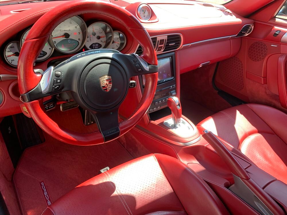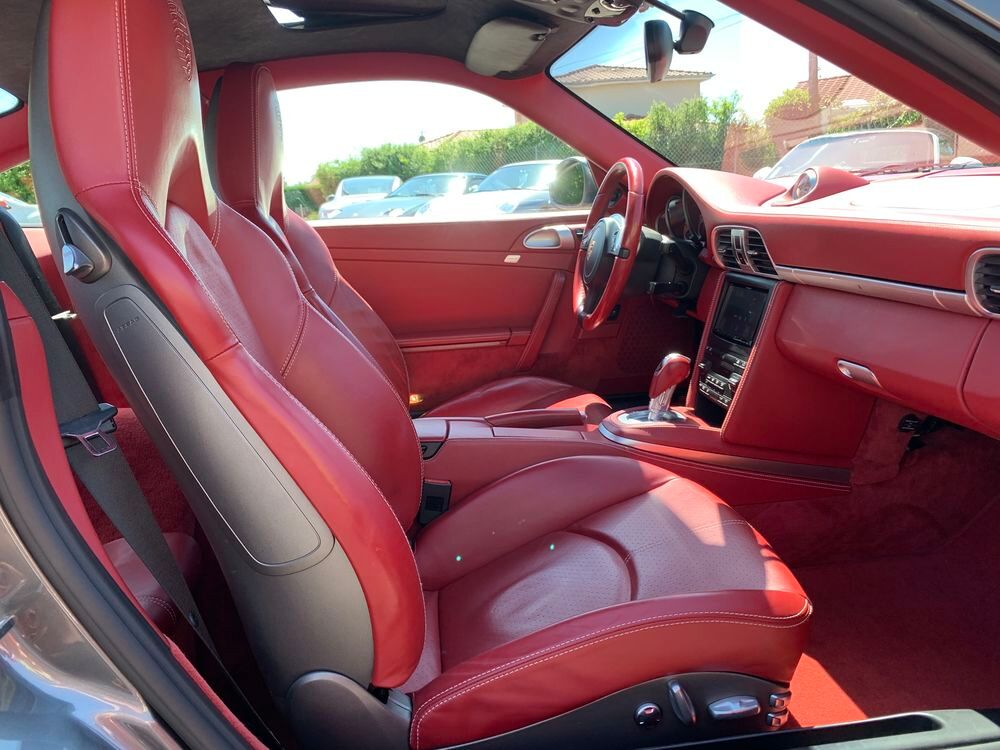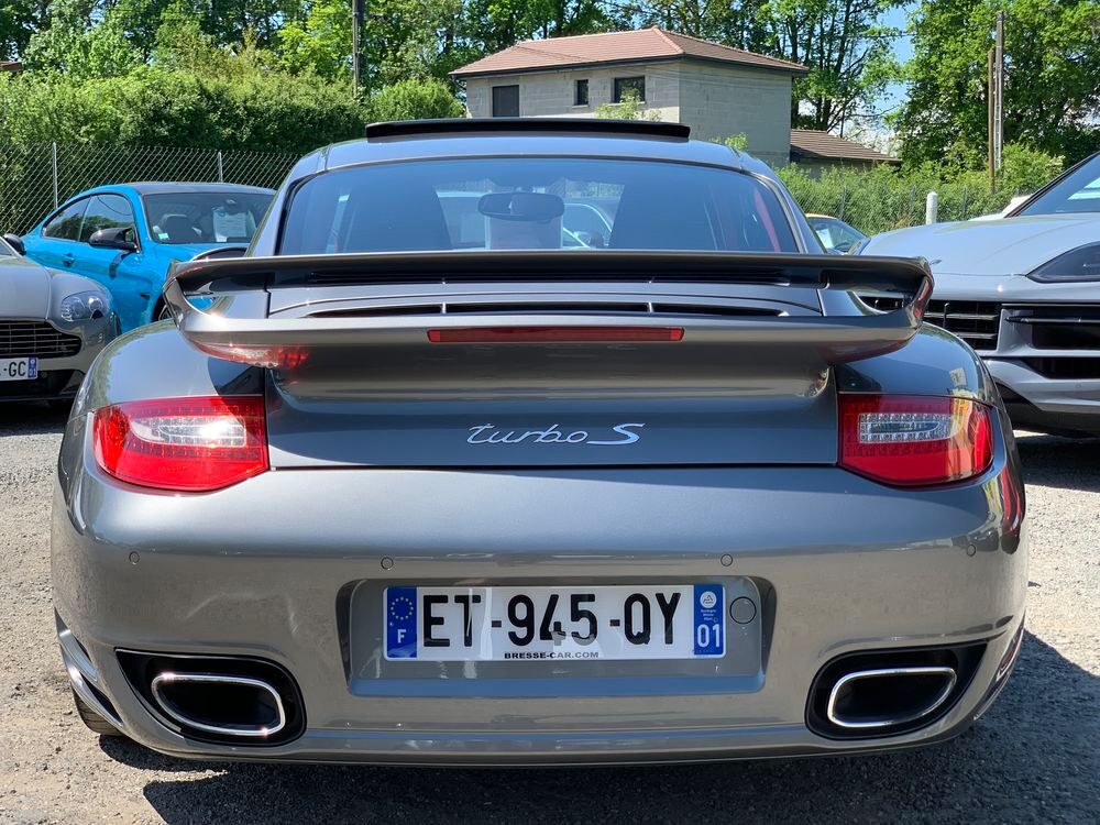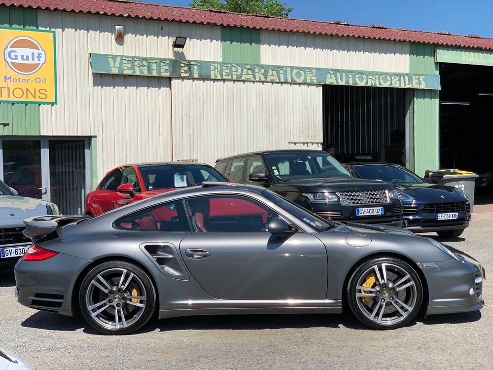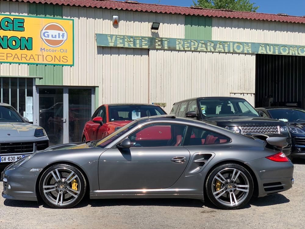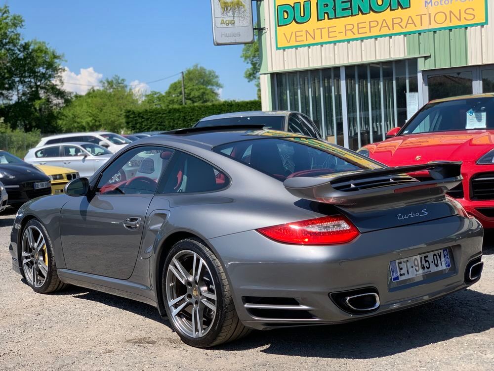VERITABLE PORSCHE 997 PHASE II TURBO S PDK 530 CV AEROKIT TURBO USINE XAP, GRIS METEOR INTERIEUR TOUT CUIR CARRERA ROUGE, 188370 km d'autoroute avec un Piwi de 79km/h, historique limpide et complet + 6000€ de travaux détaillés en fin d'annonce, à jour de tout, état hors normes identique véhicule 70000km, dotation exacte précise suivante :- AEROKIT USINE TURBO XAP COMPLET (aileron AR fixe, jupes latérales peintes et spoiler avant peint)