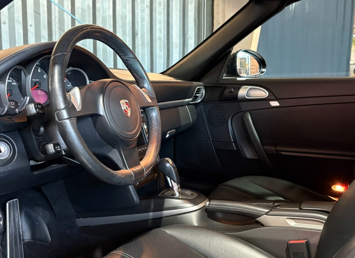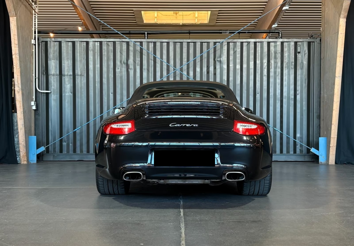 PORSCHE 911 CARRERA CABRIOLET 997 (911 Carrera Cabriolet 3.6i 345 PDK) NOIR NOIR.2 sorties d'échappement en acier spécial brossé,3ème feu stop avec technologie à diodes DEL,5 instruments ronds intégrés dans le design du cockpit,ABS,Affichage analogique: régime moteur,Affichage numérique: kilométrage total et journalier, heure, témperature extérieure et vitesse,Aileron AR télescopique,Airbags grand volume conducteur et passager,Appuis-tête intégrés aux sièges,Arceau de sécurité à déploiement automatique,Arrêt de portière à 3 positions,Assistance au démarrage,Baguettes de seuil de porte avec inscription du modèle,Bandes centrales et latérales et appui-tête garnis,Blocs optiques séparé intégrés dans le bouclier AV avec feux de jour et de position à diodes DEL et clignotants,Boîte à gants grand volume verrouillable,Boîte de vitesse Porsche Doppelkupplung (PDK) à 7 rapports avec commandes au volant,Bouclier AV avec entrées d'air intégrées pour le refroidissement,Boucliers AV et AR déformables avec pare-chocs intégrés en alliage,Capote électrique manoeuvrable jusqu'à environ 50 km/h,Capote entièrement électrique à ouverture automatique, lunette AR chauffante en verre,Carénage de soubassement,Ceintures de sécurité 3 points automatiques AV/AR, boucle de ceinture sur les sièges,Ceintures de sécurité à prétensionneurs et limiteurs de force,Ciel de toit garni de tissu noir,Climatisation automatique avec filtre à charbon actif intégré,Concept d'éclairage homogène blanc avec rhéostat progressif,Console centrale avec 3 coffres de rangement,Couronne de volant,Couvercle du coffre en Aluminium,Crochet porte-vêtement sur le dos des sièges AV,Direction assistée variable,Dispositif anti-démarrage,Dispositif de contrôle de l'usure des freins sur chaque plaquette,Divers éléments peints en Gris vulcain,Eclairage d'accompagnement,Eclairage d'ambiance à l'intérieur du véhicule,Eclairage du plancher,Ecrous antivol,Eléments en composite peints en couleur intérieure,Essuie-glaces AV à 2 vitesses de balayage et intermittence réglable,Etriers de frein Noirs anodisés,Feu antibrouillard AR côté conducteur,Fond de compteur en Noir,Freins à disques ajurés et ventilés AV/AR,Jantes Carrera IV 18,Jantes Carrera IV AV: 8Jx18,Kit anti-crevaison avec compresseur électrique,Lève-vitres AR électriques,Lève-vitres électriques avec touche séquentielle et abaissement par petites impulsions,Lunette AR dégivrante,Miroirs de courtoisie conducteur et passager éclairés,Monogramme sur capot AR couleur Titane,Ordinateur de bord avec fonctions élargies,Ouverture électrique du coffre et du capot moteur,Pack Audio Plus, 9 HP, range-CD dans la boîte à gants,Phares Bi-Xénon avec réglage dynamique du site des phares et lave-phares,Poignées de portes incurvées,Porsche Communication Management (PCM) unité centrale du système de communication avec écran TFT couleur de 6.5,Porsche Side Impact Protection System (POSIP),Porte-gobelets intégrés derrière baguette décorative du tableau de bord,Pré-équipement pour fixation de siège enfant ISOFIX avec désactivation Airbag,Pré-équipement Vehicle Tracking System,Rétroviseurs extérieurs à réglage électrique, chauffants et asphérique côté conducteur,Saute-vent,Sièges AR rabattables séparément,Sièges AV avec réglage électrique de dossier, réglage manuel en hauteur et profondeur,Système de stabilité dynamique amélioré PSM (Porsche Stability Management) avec ABS,Tableau de bord avec compte-tours central et affichage multifonctions,Tôle en acier galvanisée à chaud,Verrouillage centralisé à télécommande incluant le déverrouillage du coffre,Vide-poches dans les portières,Vitres latérales AV avec revêtement hydrophobe,Vitres teintées thermo-isolées,Volant 3 branches réglable en hauteur et profondeur, 7 vitesses, 4 places, puissance fiscal : 24, puissance din : 345, émission de CO2 : 233 g/km.
