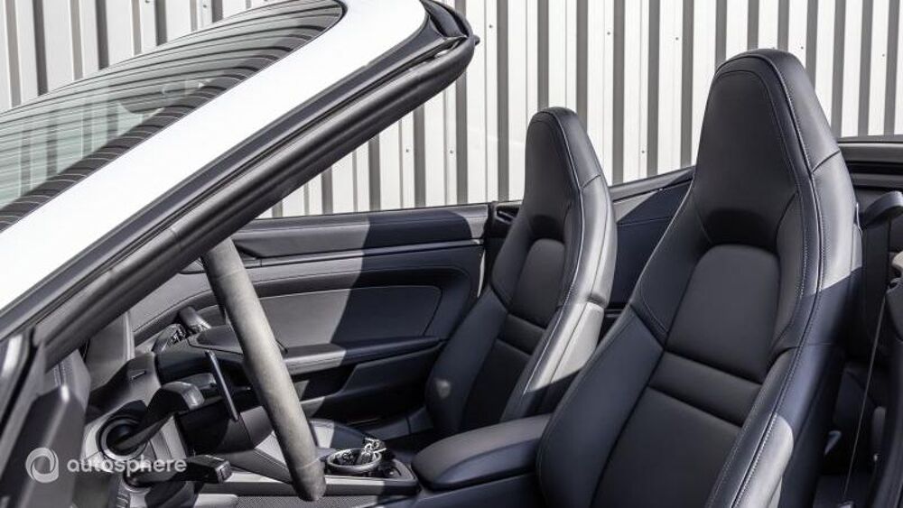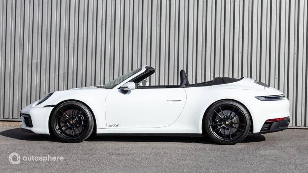 Equipements: 8 Haut parleurs, ABS, Accoudoir central AV avec rangement, Aide au démarrage en côte, Aide au freinage d'urgence, Airbag conducteur, Airbag passager, Airbags latéraux avant, Airbags rideaux, Alarme, Alarme volumétrique, Antidémarrage électronique, Antipatinage, Appel d'Assistance Localisé, Appel d'Urgence Localisé, Arrêt et redémarrage auto. du moteur, Bacs de portes avant, Banquette 50/50, Banquette AR rabattable, Becquet arrière, Boite à gants fermée, Borne Wi-Fi, Caméra de recul, Capote électrique, Capote souple, Capteur de luminosité, Capteur de pluie, Clim automatique bi-zones, Commande du comportement dynamique, Commandes vocales, Compte tours, Contrôle de couple en courbe, Contrôle de Traction, Contrôle élect. de la pression des pneus, Démarrage sans clé, Différentiel à glissement limité, Disque dur multimédia, EBD, Echappement à double sortie, Ecran multifonction couleur, Ecran tactile, ESP, Feux arrière à LED, Feux de jour à LED, Feux de position à LED, Filet anti-remous, Filtre à particules, Filtre à Pollen, Fixations Isofix aux places arrières, Follow me home, Fonction MP3, Frein à main en cuir, GPS Cartographique, Inserts de porte cuir, Inserts de tableau de bord cuir, Interface Media, Jantes Alu, Kit mains-libres Bluetooth, Lecteur carte SD, Lecteur CD, Lecteur DVD, Levier vitesse cuir, Limiteur de vitesse, Lunette AR dégivrante, Ordinateur de bord, Palettes changement vitesses au volant, Phares avant LED, Phares de route adaptatifs, Phares directionnels, Poignées ton carrosserie, Porte-gobelets avant, Préparation Isofix, Prise 12V, Prise auxiliaire de connexion audio, Radar de stationnement AR, Radar de stationnement AV, Radio numérique DAB, Régulateur de vitesse, Rétroviseurs dégivrants, Rétroviseurs électriques, Services connectés, Siège conducteur électrique, Siège conducteur réglable en hauteur, Siège passager à réglages électriques, Siège passager réglable en hauteur, Sièges avant sport, Sortie d'échappement chromée, Système de sécurité post-collisions, Température extérieure, TMC, Verrouillage centralisé des portes, Vitrage calorifuge, Vitres avant électriques, Vitres teintées, Volant cuir, Volant multifonction, Volant réglable en profondeur et hauteur, Volant sport, Blanc, BOSE Surround Sound System, Etriers de frein en Noir, Phares matriciels LED teintés + PDLS+, Porsche InnoDrive avec Rég. Vit. Adapt., Radars AV+AR + Caméra de recul+vue 360°, Rétros int+ext électrochro+capteur pluie, Rétros rabat élec+éclairage approche, Sièges Confort régl élec+Pk Mémoire
