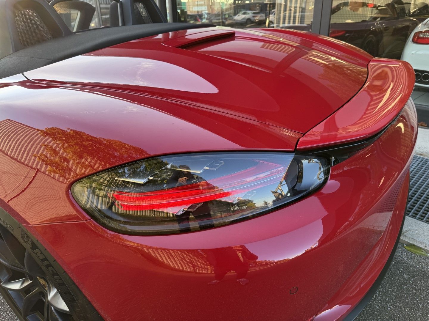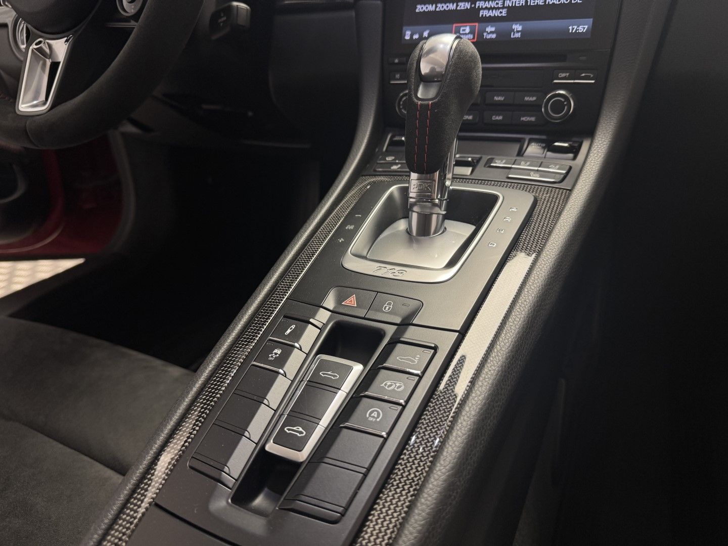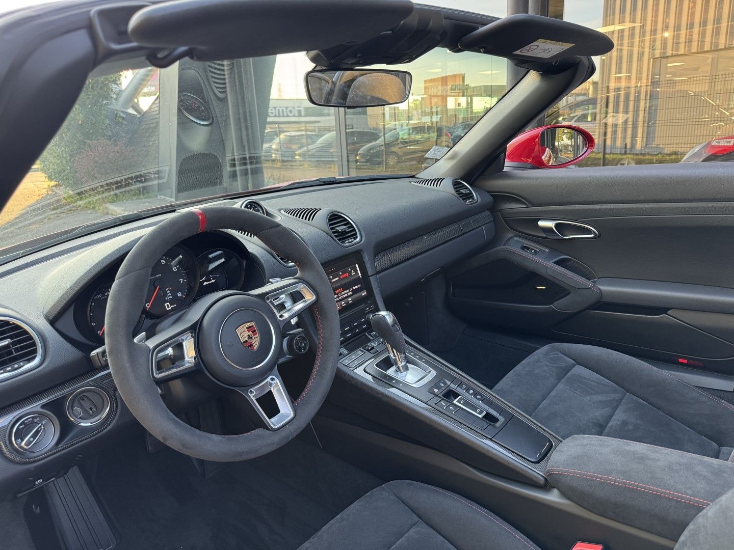 Magnifique configuration en Rouge Carmin intérieur cuir + alcantara Noir,Importante configuration d?options,Système d'aide au stationnement Avant & Arrière,Jantes Carrera S 20" finition satinée Noir mat,Éclairage xénon,Pack Sport Chrono Plus,Volant Sport GT Alcantara + Palettes,Système Audio BOSE Premium,Contrôle de pression des pneus RDK,PADM ( suspension dynamique du moteur) Sièges sport Chauffants en alcantara,PASM Suspension Active régulation électrique des amortisseurs,Planche de bord en carbone,PDE Échappement Sport déconnectable,Interface Multimédia USB/IPOD & AUX,Système de navigation GPS High Tactile "Pack Europe",Saute Vent "Windschott",Climatisation automatique,Fonction Start & Stop,Commande vocale,Module Téléphone Bluetooth,Capote électrique noire,Carnet d?entretien Porsche à jour,Entretien Porsche à jour Boite de vitesse automatique PDK 7 Rapports à double embrayage. Moteur 4 Cylindres de type "Flat 4" développant la puissance de 300CV et Cylindrée de 2.0 Litres. Malus à prévoir.