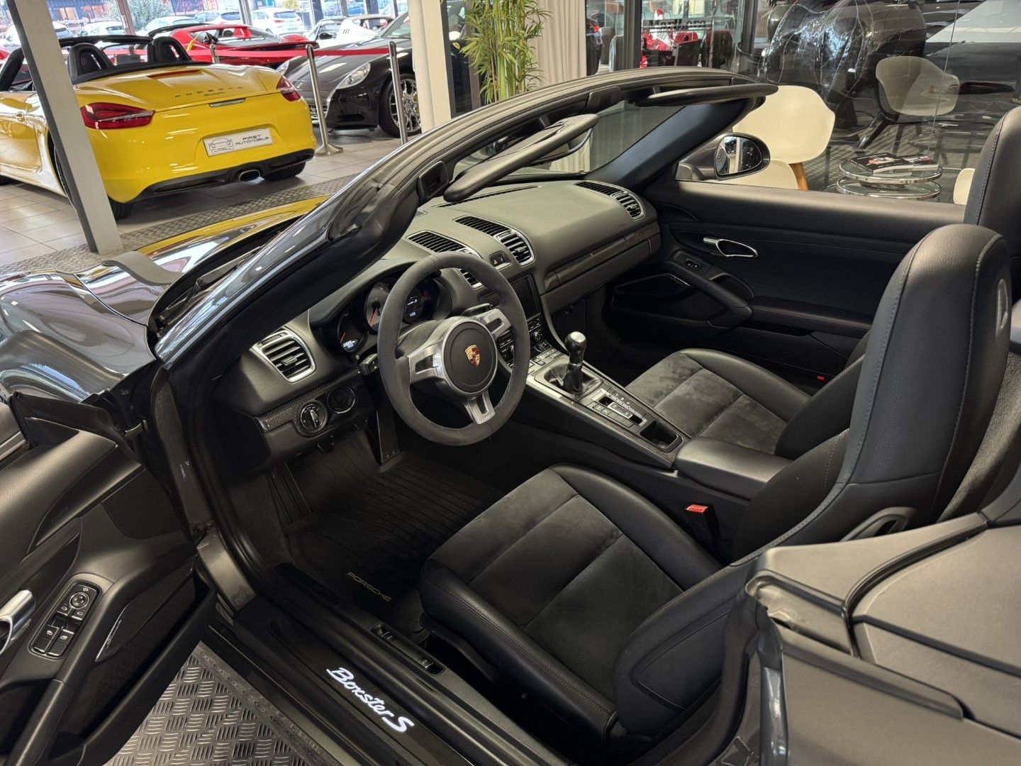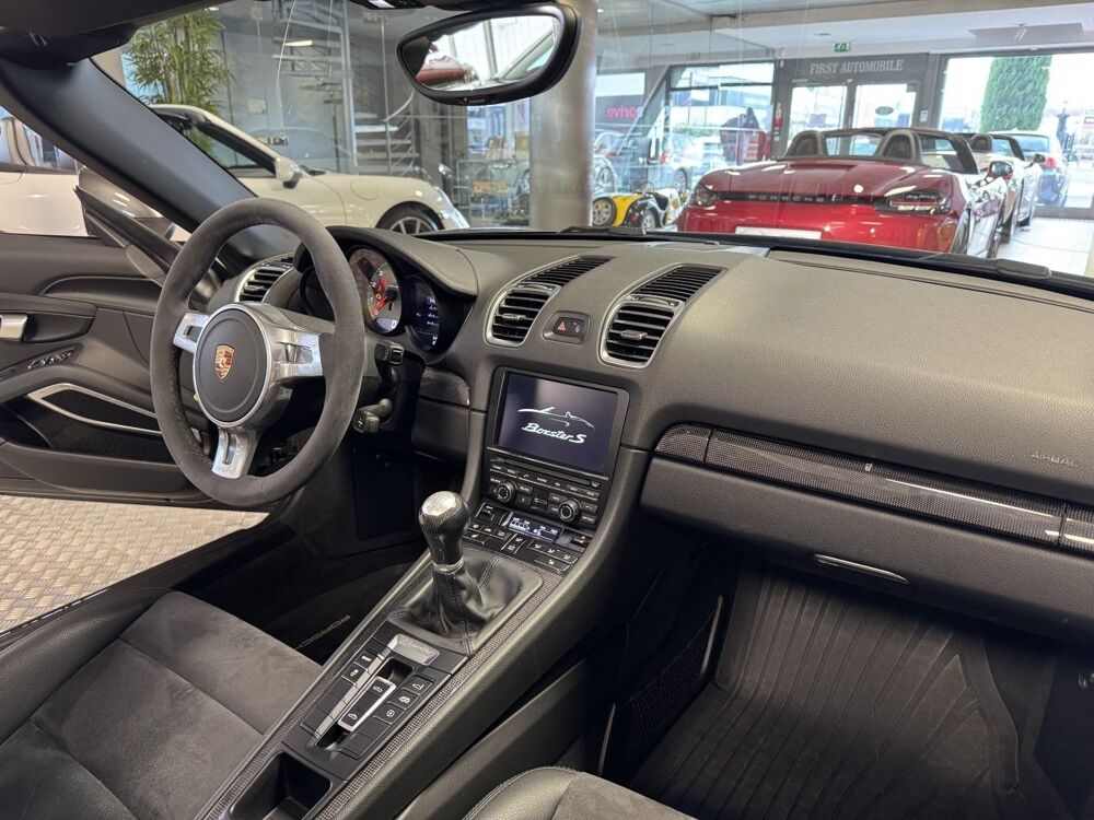 État d?origine Magnifique,Très faible kilométrage,Rare en boite mécanique,Importante configuration d'options dont : PSE Échappement sport déconnectable,Pack Carbone,Système d'aide au stationnement Avant et Arrière ,Pack Audio @Burmester,Eclairage Xénon,Feux de jour à LED,Feux arrière en verre fumé,Volant Sport Design en alcantara,Sièges sports 2 positions élec + Chauffants en alcantara,Colonne de direction à réglage (profondeur et hauteur),PCM 3 GPS tactile "Pack Europe" & Offroad + Lecteur CD,Module téléphone Bluetooth,Interface multimédia universelle connexion USB/Aux, Jantes Boxster S III 19",Fonds de compteur couleur Argent,Contrôle de la pression des pneus RDK,Windschott,Climatisation,Prise 12 volts,Direction assistée,Enjoliveur de planche de bord en carbone,Cache de console centrale en carbone,Baguettes de seuil de porte en carbone éclairées,Levier de vitesse en carbone,Fonction Start & Stop,Ordinateur de bord,PSM,Rétroviseur à rabattement électrique anti éblouissement automatique