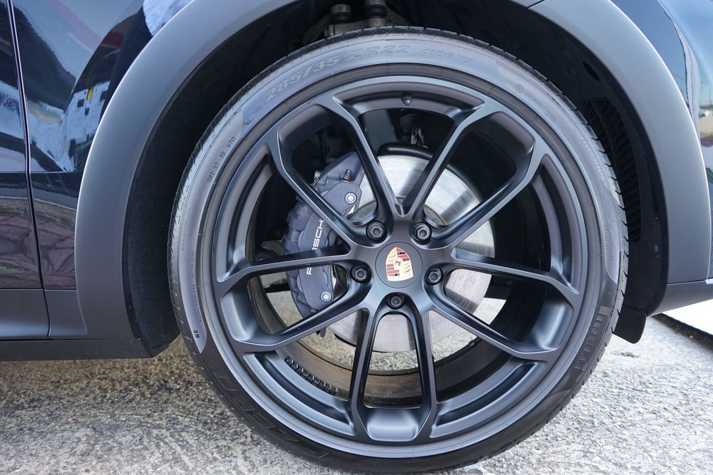 - Monogramme "PORSCHE" et désignation du modèle peints en noir mat