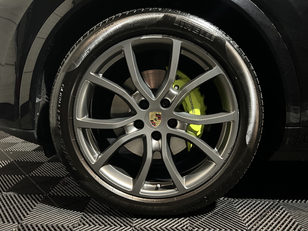 2 ports de charge et de connexion USB dans la console centrale AV, 2 ports de charge USB dans la console centrale AR, 3 prises de courant 12 volts à l'AV, 3ème feu stop (LED) intégré au becquet de toit, 5 sièges, banquette AR composée de 2 sièges latéarux confortables et d'un siège central, ABS, Airbags de genoux pour le conducteur et le passager, Airbags grand volume conducteur et passager, Airbags latéraux AV intégrés aux sièges, Airbags rideaux, Assistance à la descente (Porshe Hill Control, PHC), Assistance de parking AV/AR avec avertisseur sonore, Assistant d'éclairage automatique avec éclairage d'accompagnement, Banquette AR avec sièges AR rabattables séparément (40/20/40) et accoudoir central rabattable avec 2 porte-gobelets, Blocs optiques AV avec feux de position et clignotants à conducteurs de lumière à technologie LED, Boîte de vitesses Porsche Doppelkupplung (PDK) 8 rapports, Bouclier AV avec prises d'air de refroidissement intégrées, Capot AV actif, Capteur de retournement pour déclenchement des airbags rideaux et des prétensionneurs en cas de risque de tonneau, Ceintures de sécurité automatique 3 points avec prétensionneurs (sièges AV et AR latéraux) et limite ur d'effort de ceinture (sièges AV) et ceinture automatique 3 points sur la place AR centrale, Compte-tours analogique central avec fond de compteur Noir, Concept d'éclairage de l'habitacle à LED, Couvre-bagages souple enroulable (dissimulé dans un boitier amovible), Crochets porte-vêtements sur le montant central côtés conducteur et passager, Dégivrage de la lunette AR avec arrêt automatique, Direction assistée, Entourage des vitres latérales couleur Argent, Essuie-glace AR avec commande de balayage intermittent et buse de lavage, Essuie-glaces AV à 2 vitesses avec commande de balayage intermittent et capteur de pluie, Etriers de freins vert acide, Feux AR à LED avec graphisme tridimensionnel avec feux stop intégrés 4 points et bandeau lumineux, Feux de jour 4 points à technologie LED, Filtre à particules/pollen avec filtre à charbon actif, Fonction Auto-Hold, Fonction Stop Start, Frein de parking électrique, Frein multicollision, Hayon AR avec becquet de toit intégré, Hayon automatique, Jantes Cayenne 19", Kit anti-crevaison avec compresseur électrique, Miroir de courtoisie avec éclairage dans les pare-soleils (côté conducteur et passager), Pack Intérieur Noir finition brillante, Phares à LED, Poignées de portes peintes dans la teinte extérieure, Points de renvoi des ceintures conducteur et passager réglables manuellement en hauteur, Porte-bouteille dans les garnitures de portes AV et AR, Pré-équipement pour dispositif d'attelage, Protection anti-encastrement latérale dans les portières, Rangements dans l'habitacle, Régulateur de vitesse, Rétroviseur intérieur avec fonction anti-éblouissement manuelle, Rétroviseurs extérieurs chauffants, Sièges Confort AV électrique 8 réglages, Système d'ancrage ISOFIX pour fixation de sièges enfant sur les sièges AR latéraux, Système de contrôle de la pression des pneus (TPM), Système de haut-parleurs Hi-Fi avec 10 HP 150 W, Témoin d'usure des plaquettes de frein, Témoin de ceinture pour sièges conducteur et passager et banquette AR, Verrouillage centralisé avec télécommande, Vitrage athermique teinté, Volant sport multifonctions avec palettes, 8 vitesses, 5 places, puissance fiscal : 21, puissance din : 340, émission de CO2 : 72 g/km.
