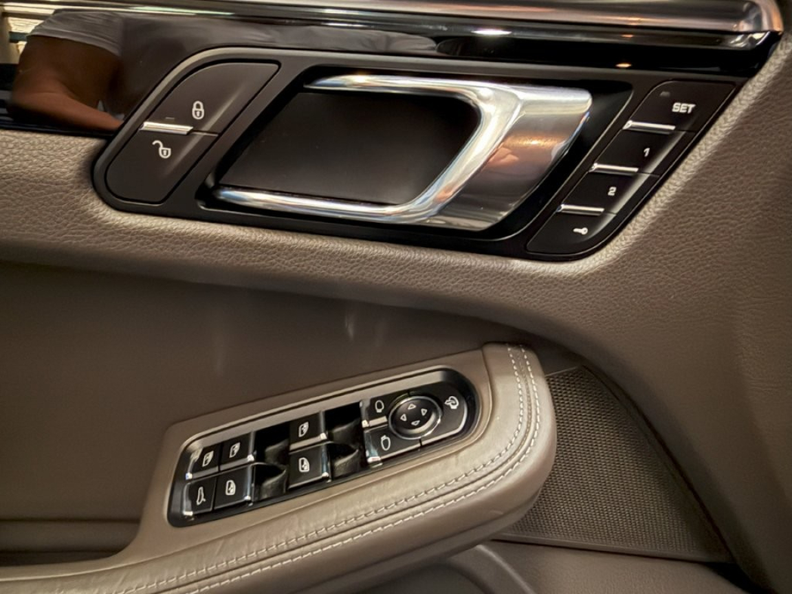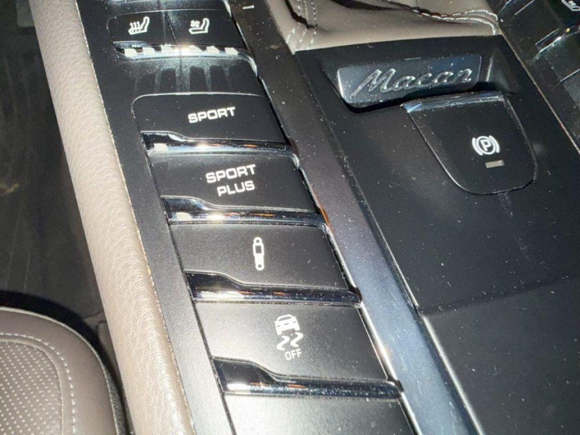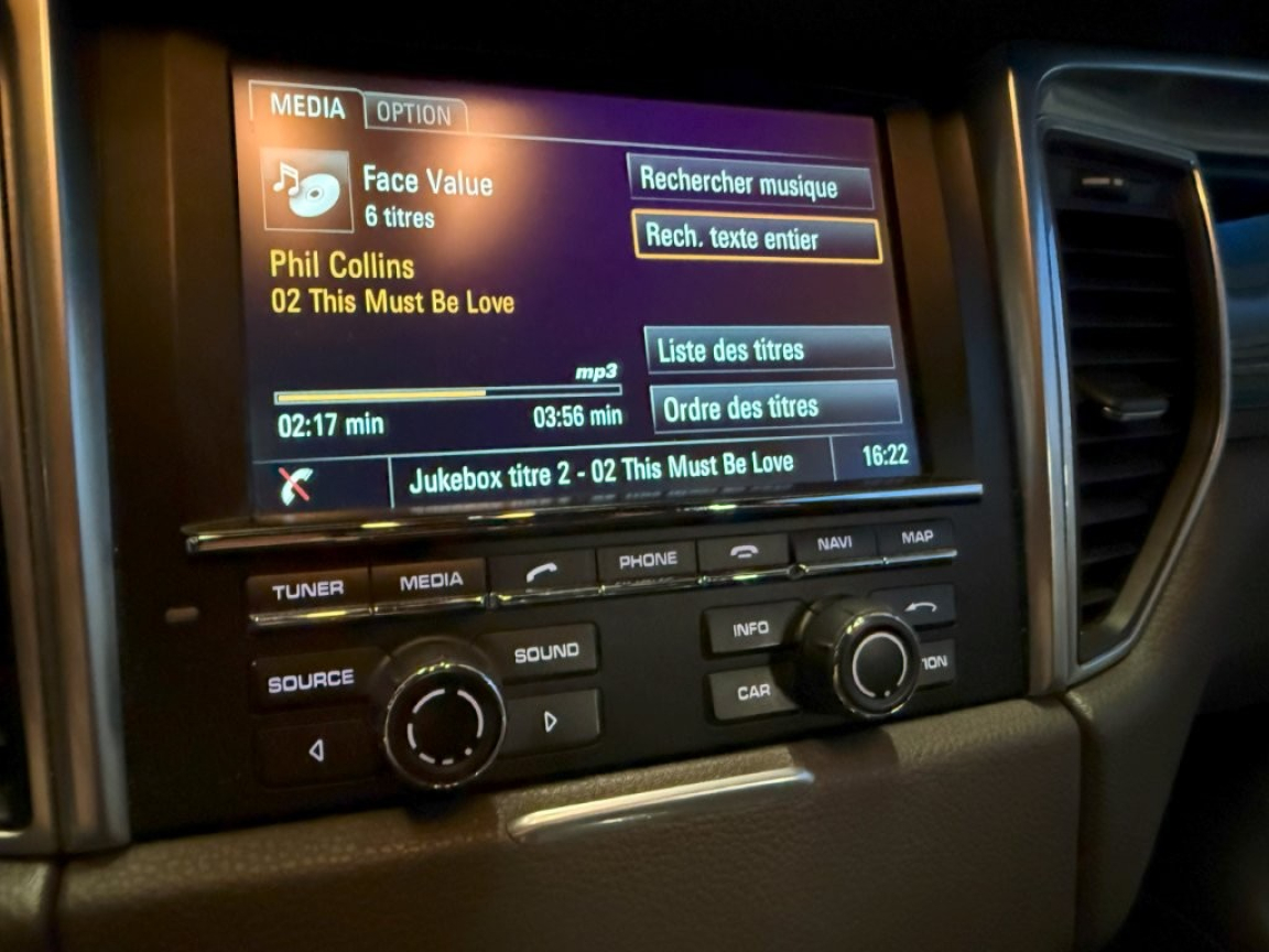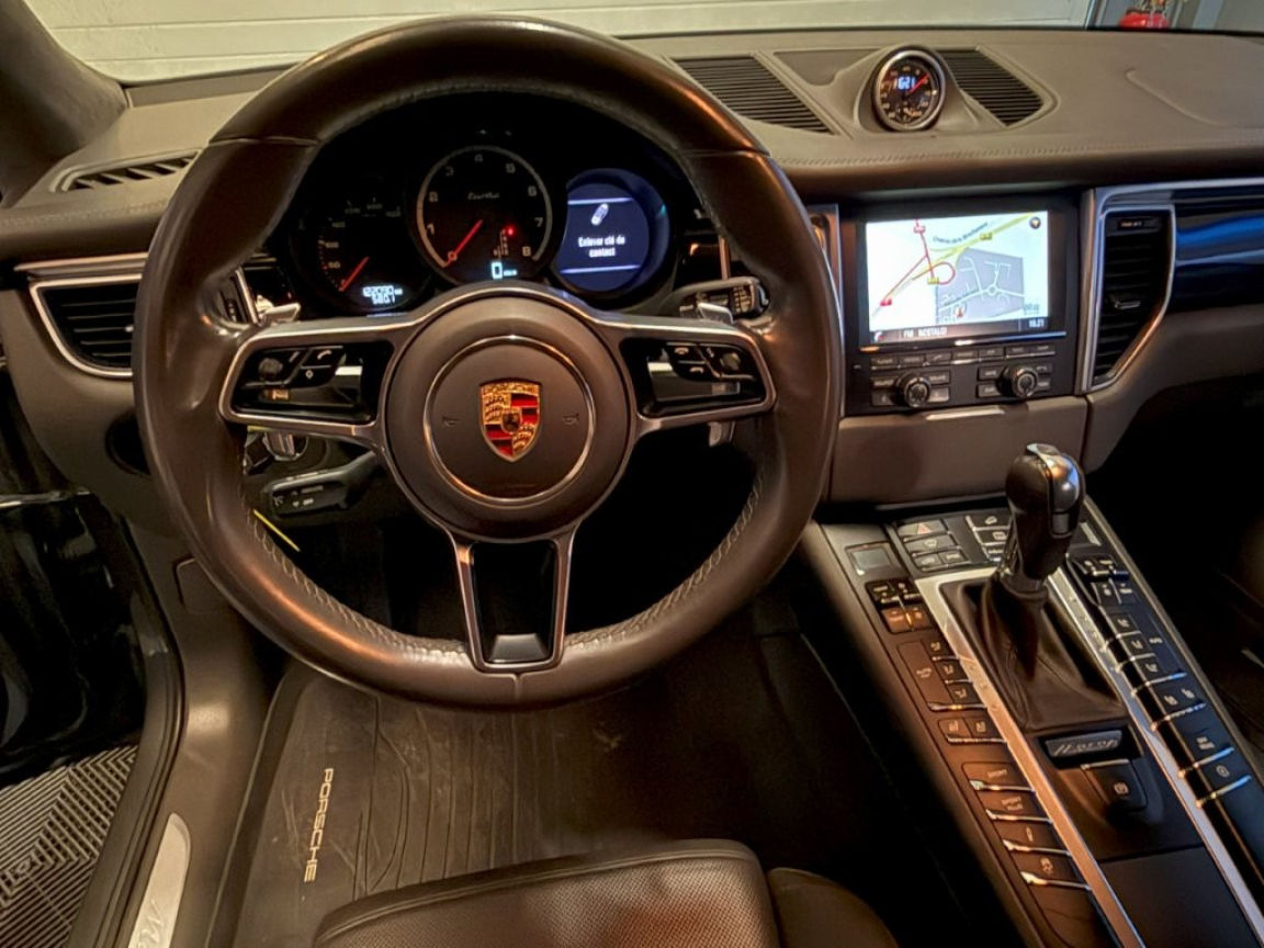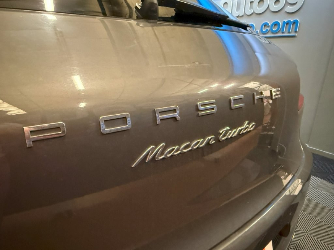 2 porte-gobelets intégrés à diamètre variable à l'AV, 2 ports de charge USB dans la console centrale AR, 2 sorties d'echappement doubles Argent mat, 3 instruments intégrés au combiné d'instruments, 3 prises (12V) : devant la console centrale, 3ème feu stop (DEL) intégré au becquet de toit, 4 prises de courant 12V, 5 sièges, banquette AR composée de 2 sièges latéarux confortables et d'un siège central, ABS, Accoudoir central AR avec 2 porte-gobelets intégrés, Accoudoir de la console centrale AV rabattable et coulissant, Affichage numérique de la pression de suralimentation dans l'écran couleur du combiné d'instruments, Airbags grand volume conducteur et passager, Airbags latéraux AV intégrés aux sièges, Airbags rideaux, Alarme antivol, Alarme volumétrique à ultrasons, Antenne intégrée, Anti-démarrage par transpondeur, Appuis-tête AV 4 positions, Assistance à la descente (Porshe Hill Control, PHC), Assistant d'éclairage automatique, Avertisseur de changement de voie, Baguette de protection du coffre en Aluminium, Baguette de seuil de porte en aluminium avec désignation du modèle Macan turbo à l'AV, Baguette de seuil de porte en aluminium avec désignation du modèle à l'AV, Baguette décoratives couleur Argent, Baguettes de vitres latérales Aluminium, Banquette AR avec sièges AR rabattables séparément (40/20/40) et accoudoir central rabattable, Becquet de toit en Noir (finotion brillante), Blocs optiques spécial turbo avec feux de position séparés et clignotants à diodes séparés, Blocs optiques spécial turbo avec feux et clignotants à diodes électroluminescentes, Boîte à double embrayage Porsche Doppelkupplung (PDK) à 7 rapports, BOSE Surround Sound-System (numérique), Bouclier AV avec prises d'air de refroidissement nettement plus grandes, Capteur de retournement pour déclenchement des airbags rideaux et des prétensionneurs en cas de risq ue de retournement du véhicule, Capteur de retournement pour déclenchement des airbags rideaux et des prétensionneurs en cas de risque de tonneau, Carrosserie galvanisée autoporteuse, Ceintures de sécurité automatiques 3 points, Chassis à suspension à ressorts en acier, Châssis à suspension sur ressorts hélicoïdaux, Ciel de toit en Alcantara, Climatisation automatique avec réglage individuel de la température pour le conducteur et le passage r, Combiné d'instruments avec écran couleur 4, Contrôle de l'usure des plaquettes de frein, Couvre-bagages rigide, amovible, Crochets porte-vêtements sur le montant latéral côtés conducteur et passager, Dégivrage de la lunette AR avec arrêt automatique, Disques à ventilation interne d'un diamètre de 360 à l'AV et 356 à l'AR, Eclairage de l'habitacle : boîte à gants, Entourage des vitres latérales en Aluminium, Espace de rangement dans l'habitacle, Essuie-glace AR avec commande de balayage intermittent et buse de lavage, Essuie-glace AV à 2 vitesses avec commande de balayage intermittent, Essuie-glace AV à 2 vitesses de balayage et intermittence variable avec capteur de pluie et buses de lave-glace chauffantes, Etriers de freins rouges, Feux AR à DEL avec feux stop adaptatifs, Feux AR à diodes électroluminescentes avec feux stop adaptatifs, Filtre à particules/pollen avec filtre à charbon actif, Fonction Auto-Hold, Fonction de désactivation de l'airbags passager, Fonction Stop Start, Frein de parking électrique, Frein multicollision, Freins à étriers fixes monobloc en aluminium à 6 pistons à l'AV, Freins à étriers flottants à l'AR, Hayon automatique, Instruments ronds avec compte-tours couleur Noir et monogramme turbo, Interface audio universelle, Jantes Macan Turbo 19, Jupes latérales SportDesign, Kit anti-crevaison avec compresseur électrique, Lève-vitres électriques AV et AR, Lubrification intégrée à carter sec avec admission d'huile bi-étagée, Mode croisière, Module de gestion thermique, Ordinateur de bord, Pack Cuir, Pack Intérieur Aluminium brossé, Pack non-fumeur, Pare-chocs constitué de bras transversaux rigides et de 2 éléments de déformation dotés chacun d'un logement à visages fileté destiné à l'anneau de remorquage de l'outillage de bord, Pare-chocs constitué de bras transversaux rigides et de 2 éléments de déformation dotés chacun de 2 logements à visages filetés destinés au crochet de remorquage de l'outillage de bord, Parties centrale AR peinte, Phares antibrouillard à DEL, Phares antibrouillard à diodes électroluminescentes, Phares antibrouillard intégrés au bouclier AV, Phares bi-Xenon avec Porsche Dynamic Light System (PDLS), Porsche Active Suspension Management (PASM), Porsche Car Connect avec Porsche Vehicle Tracking System Plus (PVTS Plus), Porsche Communication Management (PCM) avec module de navigation, Porsche Traction Management (PTM), Porte-bouteille dans les garnitures de portes AV et AR, Portes avec protection anti-encastrement latérale, Pré-équipement pour dispositif d'attelage, Pré-équipement téléphone portable pour la connexion du