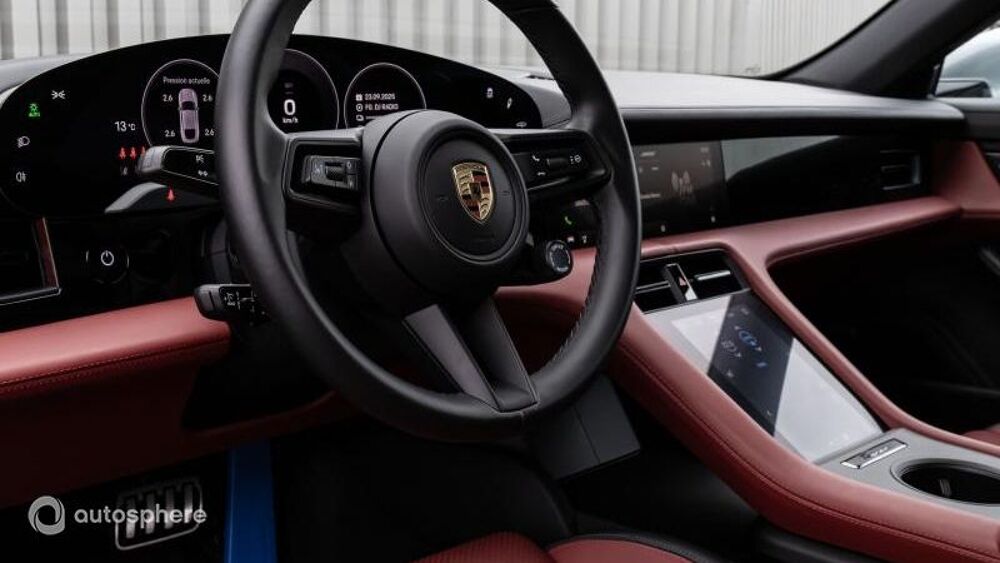 Equipements: 10 Haut parleurs, ABS, Accoudoir arrière, Accoudoir central AV avec rangement, AFIL, Aide au démarrage en côte, Aide au freinage d'urgence, Airbag conducteur, Airbag genoux, Airbag passager, Airbags latéraux avant, Airbags rideaux, Alarme, Alarme volumétrique, Antidémarrage électronique, Antipatinage, Appel d'Assistance Localisé, Appel d'Urgence Localisé, Assistance de maintien de trajectoire, Bacs de portes arrière, Bacs de portes avant, Banquette 2 places, Banquette 60/40, Banquette AR rabattable, Becquet arrière, Blocage électronique du différentiel AR, Boite à gants fermée, Borne Wi-Fi, Caméra de recul, Capteur de pluie, Ceinture de vitrage chromée, Ceintures avant ajustables en hauteur, Chauffage auxiliaire, Clim automatique bi-zones, Commande du comportement dynamique, Commandes du système audio au volant, Commandes vocales, Démarrage sans clé, Détecteur de sous-gonflage, Dispositif freinage automatique, EBD, Eclairage au sol, Eclairage d'ambiance, Eclairage statique d'intersection, Ecran multifonction couleur, Ecran tactile, ESP, Feux arrière à LED, Feux de freinage d'urgence, Feux de jour à LED, Filtre à Pollen, Fixations Isofix aux places arrières, Follow me home, Fonction MP3, Freinage automatique d'urgence, GPS Cartographique, Guidage pour manoeuvre de stationnement, Indicateur de limitation de vitesse, Interface Media, Jantes Alu, Kit mains-libres Bluetooth, Lampes de lecture à l'avant, Limiteur de vitesse, Lunette AR dégivrante, Miroir de courtoisie conducteur éclairé, Miroir de courtoisie passager éclairé, Mode de conduite, Phares avant LED, Phares directionnels, Poignées ton carrosserie, Porte-gobelets arrière, Porte-gobelets avant, Prise 12V, Prise USB, Radar de stationnement AR, Radar de stationnement AV, Radio, Radio numérique DAB, Reconnaissance panneaux de signalisation, Régulateur de vitesse, Rétroviseurs dégivrants, Rétroviseurs électriques, Rétroviseurs rabattables électriquement, Services connectés, Siège cond. avec réglage lombaire électr, Siège conducteur chauffant, Siège conducteur électrique, Siège passager à réglages électriques, Siège passager avec réglage lombaire, Siège passager chauffant, Suspension adaptative, Système avancé de détection d'obstacles, Système d'éclairage intelligent à LED, Système de détection de somnolence, Système de prévention des collisions, Système de sécurité post-collisions, Température extérieure, TMC, Verrouillage centralisé à distance, Verrouillage centralisé des portes, Vitres arrière électriques, Vitres avant électriques, Volant cuir, Volant multifonction, Volant réglable en profondeur et hauteur, Volant sport, 4+1 sièges, Accès Confort, Assist. active au stat. avec caméra 360°, Assistant Changement de voie, Baguettes seuil alu brossé Noir illumi., Bose Surround Sound System, Climatisation 4-Zones, Contour des vitres latérales en Noir, Cuir lisse bicolore Noir/Rouge Bordeaux, Désignation modèle Noir (brillante), Écusson Porsche appui-tete avant et arr, Gris Dolomite métallisé, Jantes Aero Design 21 pouces, Pack d'accentuation Noir, Phares HD Matrix LED, Porsche Electric Sport Sound, Porsche Torque Vectoring Plus (PTV Plus), Régulateur de vitesse adaptatif, Roues arrière directrices, Sièges chauffants AV/AR, Sièges Confort à l'avant+Pack Mémoire, Toit panoramique fixe, Vitrage arrière fumé, Volant chauffant
