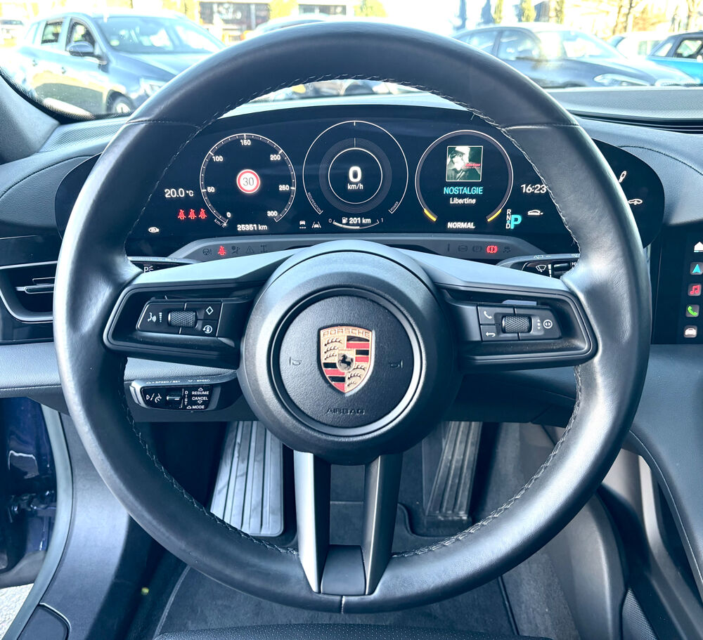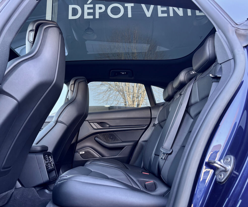 Equipements supplémentaires : Acces confort, Assistance parking AV/AR avec camera de recul et vue 360°, BOSE Surround Sound-System, Cable secteur pour prise industrielle couleur Bleu (230 V, 16 A, 3 broches), Chargeur embarque AC 22kW, Contour des vitres laterales en Noir (finition brillante), Phares matriciels a LED avec Porsche Dynamic Light System Plus (PDLS+), Pompe a chaleur, Porsche InnoDrive avec Regulateur de vitesse adaptatif, Porsche Intelligent Range Manager (PIRM), Porsche Mobile Charger Connect, Retroviseurs exterieurs et interieur avec fonction anti-eblouissement automatique, Retroviseurs exterieurs rabattables electriquement avec eclairage d'alentour, Servotronic Plus, Sieges 4+1, Sieges AV chauffants, Sieges Confort AV (electrique 14 positions) avec Pack Memoire, Toit panoramique fixe, Trappe de recharge electrique, Vitrage AR fume, garantie de la batterie jusqu'en aout 2031 ou 160 000km.