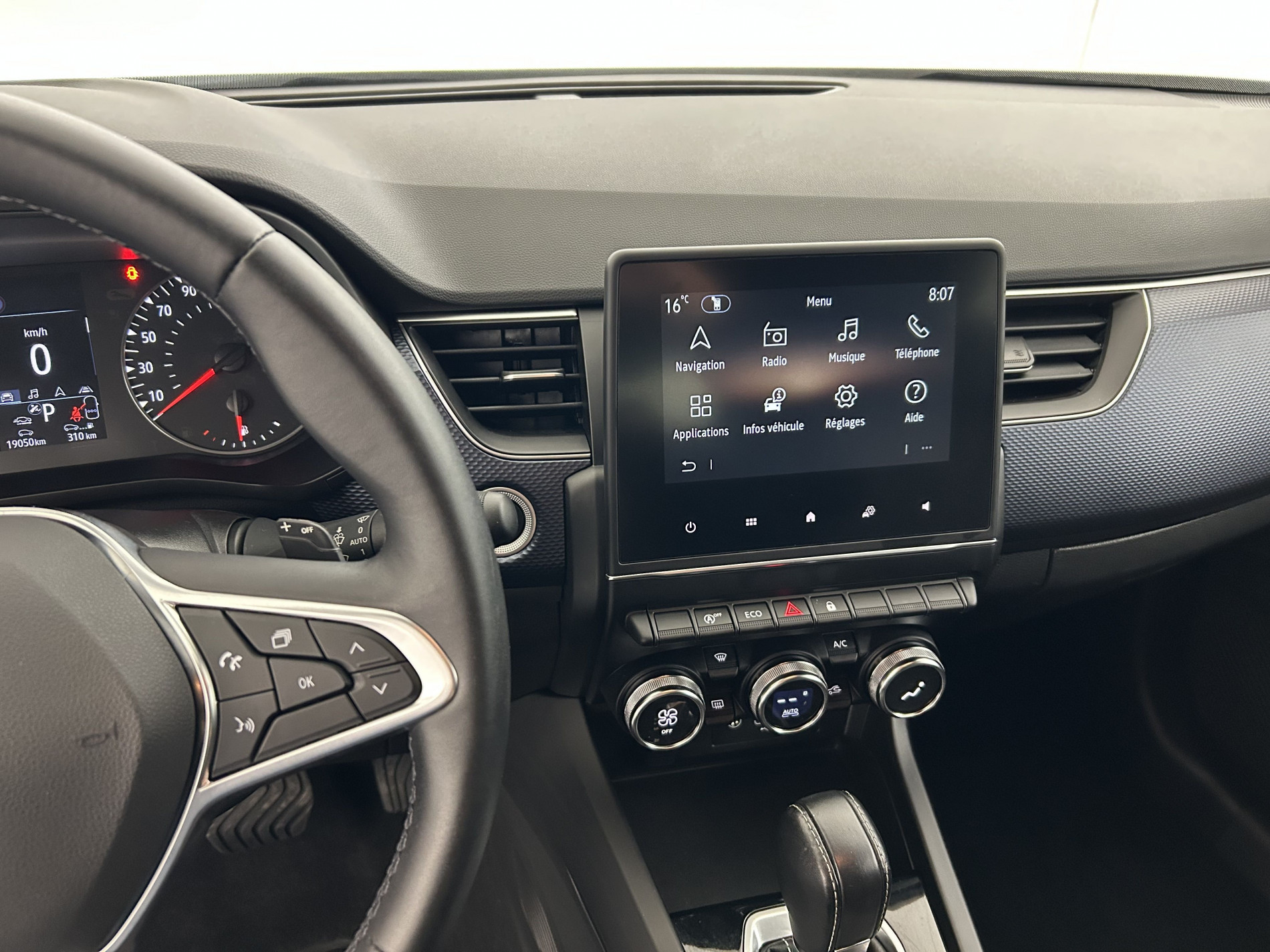 Automatique, Aérateurs aux places AR, Aide au parking AV et AR, Airbag passager déconnectable, Airbags frontaux conducteur et passager adaptatif, Airbags rideaux de têtes aux places AV et AR, Alerte de distance de sécurité, Alerte de survitesse combiné à la vitesse limite de la navigation, Alerte d'oubli de ceinture de sécurité, Allumage automatique des phares et des essuis-glace avec capteur de pluie et de luminosité, Antiblocage des roues ABS, Appuie-têtes AV / AR réglables en hauteur, Assistance au freinage d'urgence (A.F.U.), Assistant maintien de voie, Banquette AR rabattable 1/3-2/3, Boitier connect AIVC, Bouton d'appel d'urgence R-Call, Caméra de recul, Carte Renault avec accès et démarrage mains libres avec fermeture à l'éloignement, Climatisation automatique, Commutation automatique des feux de route/croisement, Compartimentage de coffre, Compartimentage de coffre, Compatibilité Apple CarPlay Wifi, Condamnation centralisée des portes, Contrôle dynamique de trajectoire ESC avec ASR, Coques de rétroviseurs extérieures ton caisse, Eclairage des miroirs de courtoisie conducteur et passager, Feux de jour à LED avec signature lumineuse C-Shape, Freinage actif d'urgence avec détection piétons et cyclistes, Frein de parking assisté, Harmonie intérieure foncée, Indicateur de changement de vitesse, Jantes alliage 17" Bahamas diamantées noires, Kit de gonflage et de réparation des pneumatiques, Lève-vitres AR électriques avec fonction anti-pincement, Lève-vitres AV électriques à impulsion, Limiteur - régulateur de vitesse, Lunette AR chauffante, Navigation embarquée avec cartographie Europe, Programme eco mode, Projecteurs AV full LED Pure Vision, Purificateur d'air, Répétiteurs de clignotant intégrés aux rétroviseurs, Rétroviseur intérieur jour/nuit, Rétroviseurs extérieurs dégivrants, réglables et rabattables électriquement, Sellerie tissu Noir Titane, Sièges AV réglable en hauteur, Système de surveillance de la pression des pneus, Système ISOFIX (i-Size) aux places AR (latérales), Tableau de bord avec écran couleur 4,2'' et compteurs analogiques, Vitres et lunette AR surteintées, Volant gainé en textile enduit grainé Soft Touch, ,