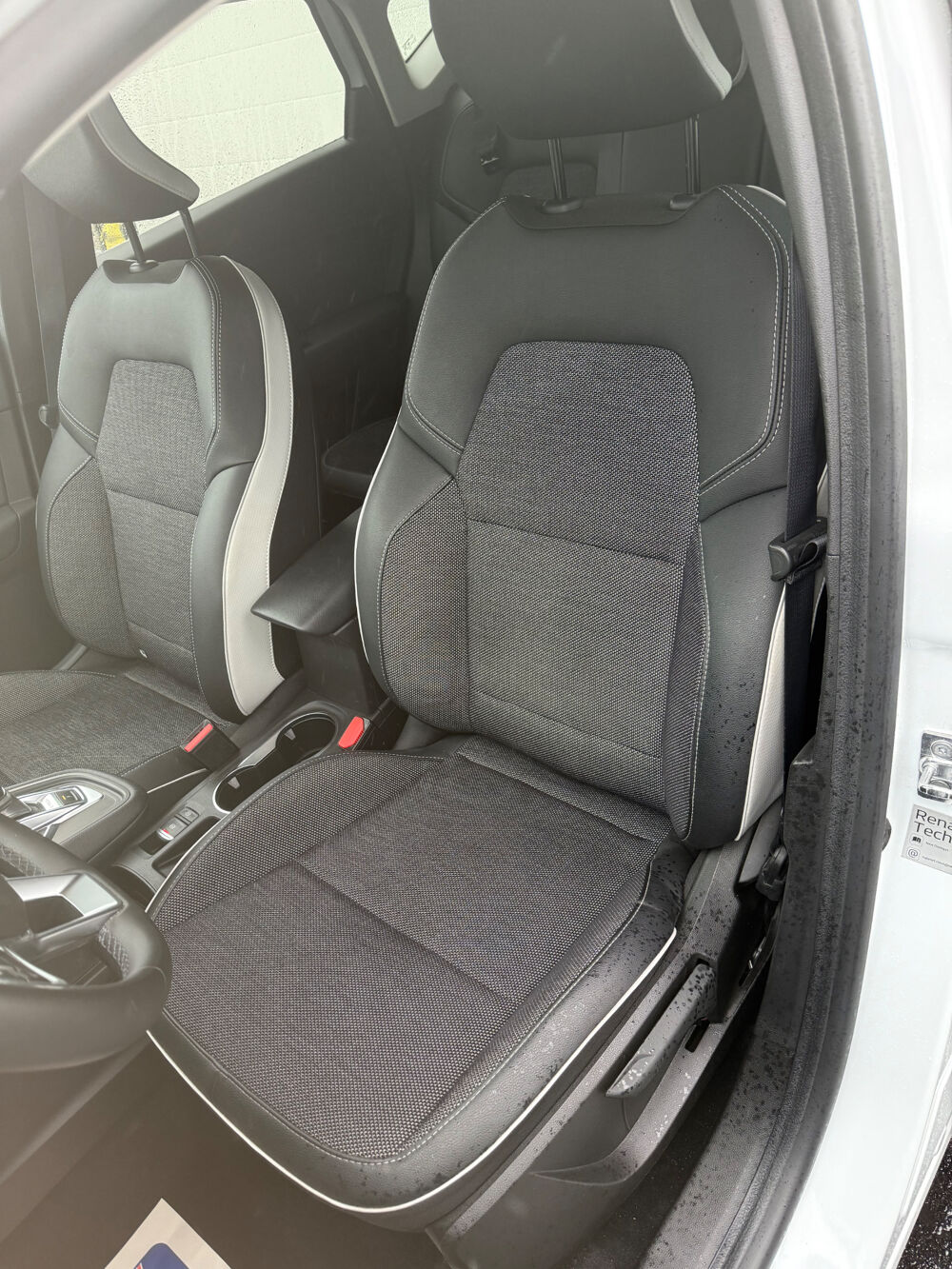 Equipements supplémentaires : Aide au demarrage en cote, Aide au freinage actif d'urgence avec detection pietons (AEBS City + Inter Urbain + Pieton), Aide au parking AR, Airbag passager deconnectable, Airbags frontaux, Airbags lateraux AV, Alerte de survitesse avec reconnaissance des panneaux de signalisation, Alerte distance de securite - Information dans tableau de bord, Alerte oubli des ceintures de securite aux 5 places, Allumage automatique des essuie-glaces, Antiblocage des roues ABS, Appel d'Urgence Renault, Appuie-tetes AR, Assistance au freinage d'urgence (A.F.U.), Assistant maintien de voie, Banquette AR coulissante et rabattable 1/3 - 2/3, Ceinture centrale AR 3 points, Ceintures de securite AV reglables en hauteur, Climatisation automatique, Commutation automatique des feux de route/croisement, Condamnation centralisee des portes avec telecommande et condamnation des portes en roulant, Console centrale de rangement avec accoudoir, Eclairage AV et AR Full LED Pure Vision, Feux de stop a LED, Frein de parking assiste automatique avec Auto hold, Harmonie interieure foncee, Indicateur de changement de vitesse, Jantes alliage 18'' Pasadena diamantees gris erbe, Kit de gonflage et de reparation des pneumatiques, Leve-vitres electriques et impulsionnels, Lunette AR chauffante, Mode ECO, Peinture bi-ton (montants de pare-brise, coques de retroviseurs, toit), Peinture opaque, Poignees de portes ton caisse, Regulateur limiteur de vitesse, Renault Multi-Sense (choix de modes de conduite), Repetiteurs lateraux de changement de direction, Retroviseur interieur electrochrome, Retroviseurs exterieurs degivrants, reglables et rabattables electriquement, Sellerie TEP / tissu avec jonc gris, Siege AV reglable en hauteur, Systeme de detection de la pression des pneumatiques, Systeme ISOFIX (i-Size) aux places laterales AR et passager AV, Vitres AR surteintees, Volant cuir, Volant TEP, Cable pour Wallbox (Mode 3 Type 2), Detecteur d'angle mort, Pack City, Peinture Blanc Nacre, Mirror Apple carplay android auto.
