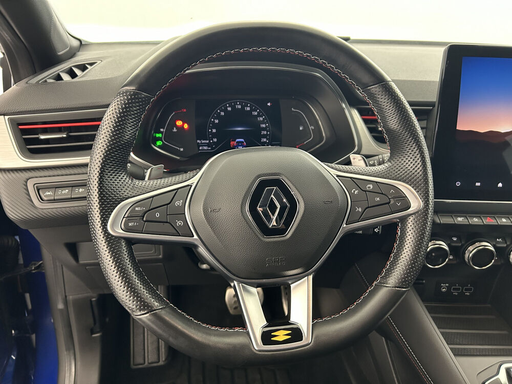 Automatique, Aide au parking AV et AR, Airbag passager déconnectable, Airbags frontaux, Airbags latéraux AV, Alarme de ceinture de sécurité (Réglementation SBR), Alerte de survitesse avec reconnaissance des panneaux de signalisation, Alerte distance de sécurité - Information dans tableau de bord, Alerte oubli des ceintures de sécurité aux 5 places, Allumage automatique des essuie-glaces, Antenne requin, Antiblocage des roues ABS, Appel d'Urgence Renault, Appuie-têtes AR, Assistance au freinage d'urgence (A.F.U.), Assistant maintien de voie, Banquette AR coulissante et rabattable 1/3 - 2/3, Caméra de recul, Carte Renault "Mains libres", Ceinture centrale AR 3 points, Ceintures de sécurité AV réglables en hauteur, Chargeur de téléphone à induction, Climatisation automatique, Commutation automatique des feux de route/croisement, Condamnation centralisée des portes avec télécommande et condamnation des portes en roulant, Console centrale volante, avec levier de vitesse e-shifter et accoudoir central, EASY LINK avec écran 9.3" et navigation répliquée dans tableau de bord, Eclairage AV et AR Full LED Pure Vision, Ec-innov Sailing Stop, Evolution de gamme 2 (MC2), Evolution technique éco cata, Evolution technique Licence Arkamis, Feux AR LED avec signature en forme de "C" et animation 3D, Feux de stop à LED, Freinage actif d'urgence avec détection piétons et cyclistes (AEBS City + Inter Urbain+ Piéton), Frein de parking assisté automatique avec Auto hold, Harmonie noire, Indicateur de changement de vitesse, Jantes alliage 18'' Le Castellet R.S. Line, Kit de gonflage et de réparation des pneumatiques, Lève-vitres électriques et impulsionnels, Lunette AR chauffante, Mode ECO, Navigation, Palettes au volant, Peinture bi-ton (montants de pare-brise, coques de rétroviseurs, toit), Pneus à faible résistance au roulement, Poignées de portes ton caisse, Prestation RS-Line exterieur, Prestation R.S. Line Extérieure, Prestation RS-Line interieur, Prestation R.S. Line Intérieure, Prestation R.S. Line Signature, Régulateur limiteur de vitesse, Renault Multi-Sense (choix de modes de conduite), Répétiteurs latéraux de changement de direction, Rétroviseur intérieur électrochrome Frameless, Rétroviseurs extérieurs dégivrants, réglables et rabattables électriquement, Sans prestation Bose, Sellerie spécifique R.S. Line, Siège AV réglable en hauteur, Système de détection de la pression des pneumatiques, Système ISOFIX (i-Size) aux places latérales AR et passager AV, Tableau de bord avec écran numérique et personnalisable 10", Vitres AR surteintées, Volant cuir, , Véhicules équivalents: 2008 - C4 Cactus - Juke,