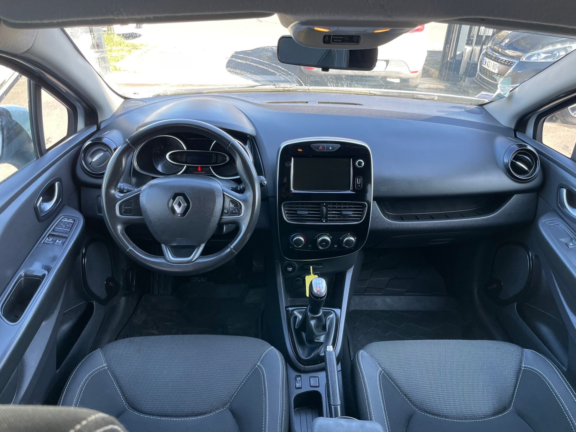 Equipements supplémentaires : 3 appuis-tete AR reglables en hauteur, Aide au parking AR, Airbags frontaux, Airbags lateraux AV, Alerte d'oubli de ceinture de securite, Ambiance interieure Noire, Antiblocage des roues ABS, Appuis-tete AV, Assistance au freinage d'urgence (A.F.U.), Banquette AR 1/3-2/3 assise fixe, Becquet AR, Carte Renault a telecommande, Cartographie Europe de l'Ouest, Ceintures 3 points a l'AR, Ceintures AV reglables en hauteur, Climatisation manuelle, Condamnation portes electriques, Controle de trajectoire ESP, Ecomode, Essuie-vitre a cadencement, Feux de jour a LED, Harmonie Carbone fonce, Indicateur de changement de vitesse, Info Traffic, Kit de gonflage et de reparation, Leve-vitres AV electriques, Lunette AR chauffante, Peinture opaque, Poignees de portes ton caisse, Projecteurs antibrouillard, Projecteurs double optique halogenes, Regulateur limiteur de vitesse, Retroviseurs exterieurs electriques degivrants, Retroviseurs exterieurs ton carrosserie, Sans plancher mobile, Sellerie tissu Noir / Gris, Siege conducteur reglable en hauteur, Systeme d'aide au demarrage en cote, Systeme de detection de pression des pneus, Systeme de fixations ISOFIX aux places laterales AR, Vitres teintees, Volant cuir, Accoudoirs AV, Roue de secours.