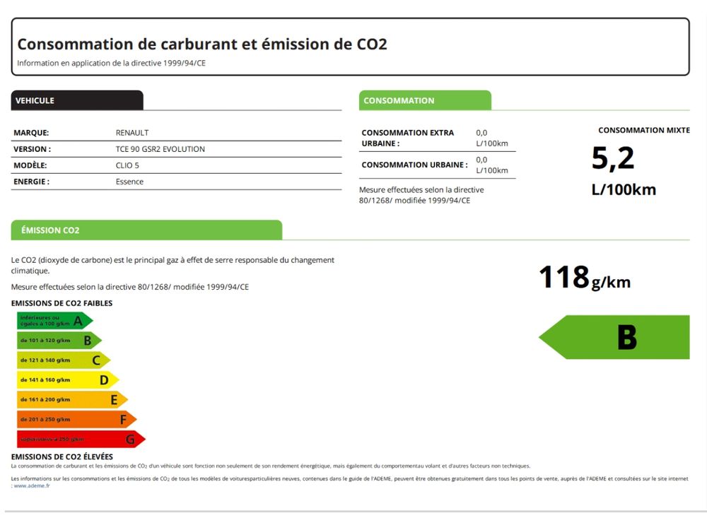 Informations clés : voiture RENAULT Berline
