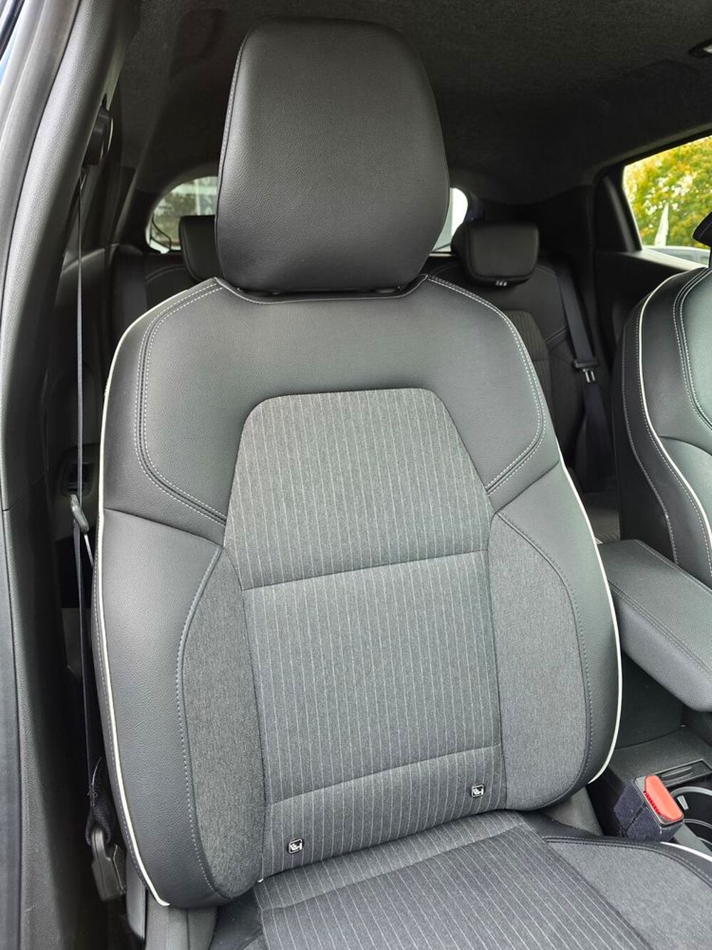 Sellerie textile et textile enduit grainé gris/noir avec surpiqûres cuivre