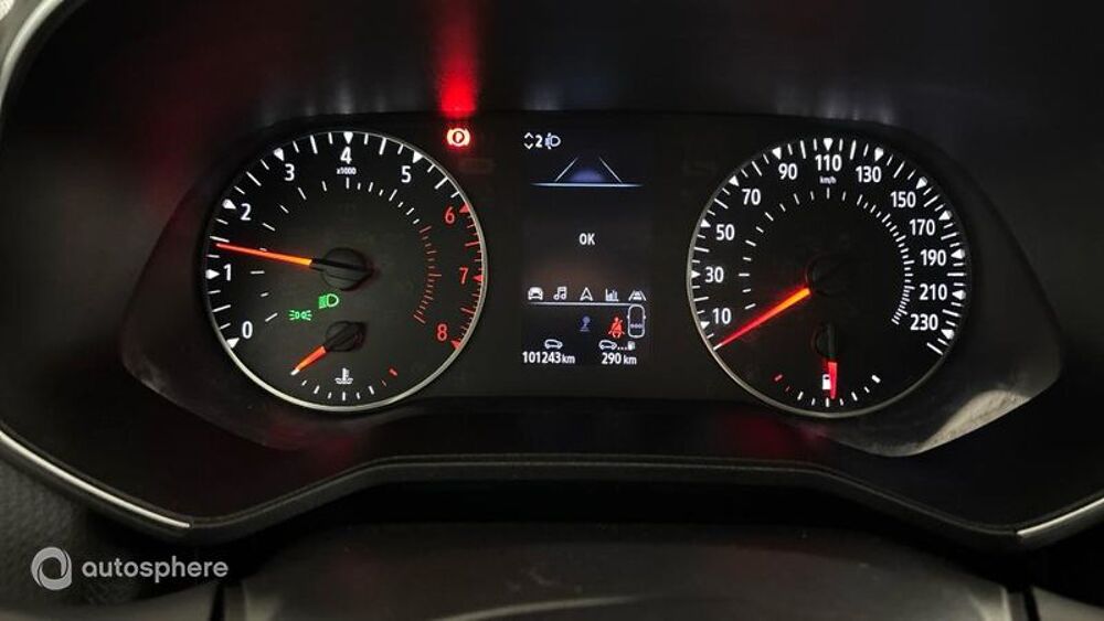 Equipements: ABS, Aide au démarrage en côte, Aide au freinage d'urgence, Airbag conducteur, Airbag passager déconnectable, Airbags latéraux avant, Airbags rideaux AV et AR, Arrêt et redémarrage auto. du moteur, Assistance de maintient de trajectoire, Bacs de portes avant, Banquette 1/3-2/3, Banquette AR rabattable, Banquette arrière 3 places, Becquet arrière, Blanc Glacier, Boite à gants fermée, Boucliers AV et AR couleur caisse, Capteur de luminosité, Ceintures avant ajustables en hauteur, Clim manuelle, Commande Mode ECO, Commandes du système audio au volant, Compte tours, Démarrage sans clé, Détecteur de sous-gonflage indirect, EBD, Ecran multifonction couleur, Ecran tactile, Enjoliveurs, ESP, Essuie-glace arrière, Feux arrière à LED, Feux de freinage d'urgence, Feux de jour à LED, Filtre à particules, Fixation Isofix siège passager avant, Fixations Isofix aux places arrières, Fonction appel d'urgence, Fonction MP3, Freinage automatique d'urgence, GPS Cartographique, Indicateur de limitation de vitesse, Interface Media, Kit mains-libres Bluetooth, Lampe de coffre, Lampes de lecture à l'avant, Limiteur de vitesse, Lunette AR dégivrante, Miroir de courtoisie conducteur, Miroir de courtoisie passager, Ordinateur de bord, Ouverture des vitres séquentielle, Phares avant LED, Poignées ton carrosserie, Prise 12V, Prise auxiliaire de connexion audio, Prise USB, Radar de distance, Radar de stationnement AR, Radio, Radio numérique DAB, Reconnaissance panneaux de signalisation, Régulateur de vitesse, Répétiteurs de clignotant dans rétro ext, Rétroviseurs dégivrants, Rétroviseurs électriques, Rétroviseurs rabattables électriquement, Siège conducteur réglable en hauteur, Système de récupération énergie freinage, Tablette cache bagages, Témoin de bouclage des ceintures AV, Température extérieure, Tissu Noir motifs surpiqués, TMC, Troisième ceinture de sécurité, Verrouillage auto. des portes en roulant, Verrouillage centralisé à distance, Vitres arrière électriques, Vitres avant électriques, Vitres teintées, Volant réglable en profondeur et hauteur, Roue de secours tole, Rouge Flamme