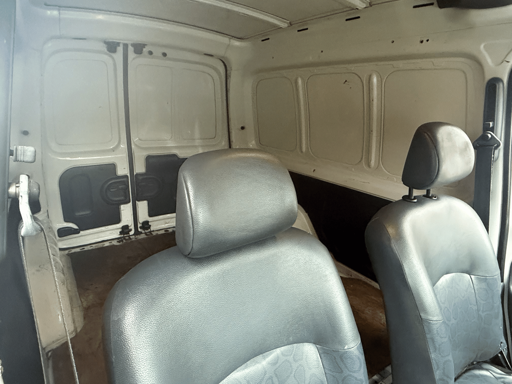Aménagement intérieur bois à l'arrière, pratique pour le transport de matériel, Vitres manuelles.
